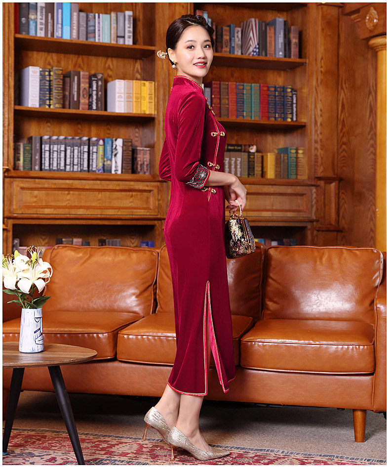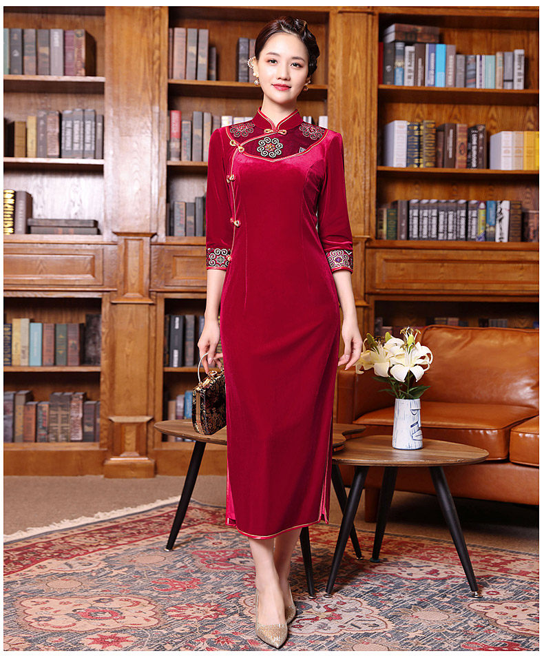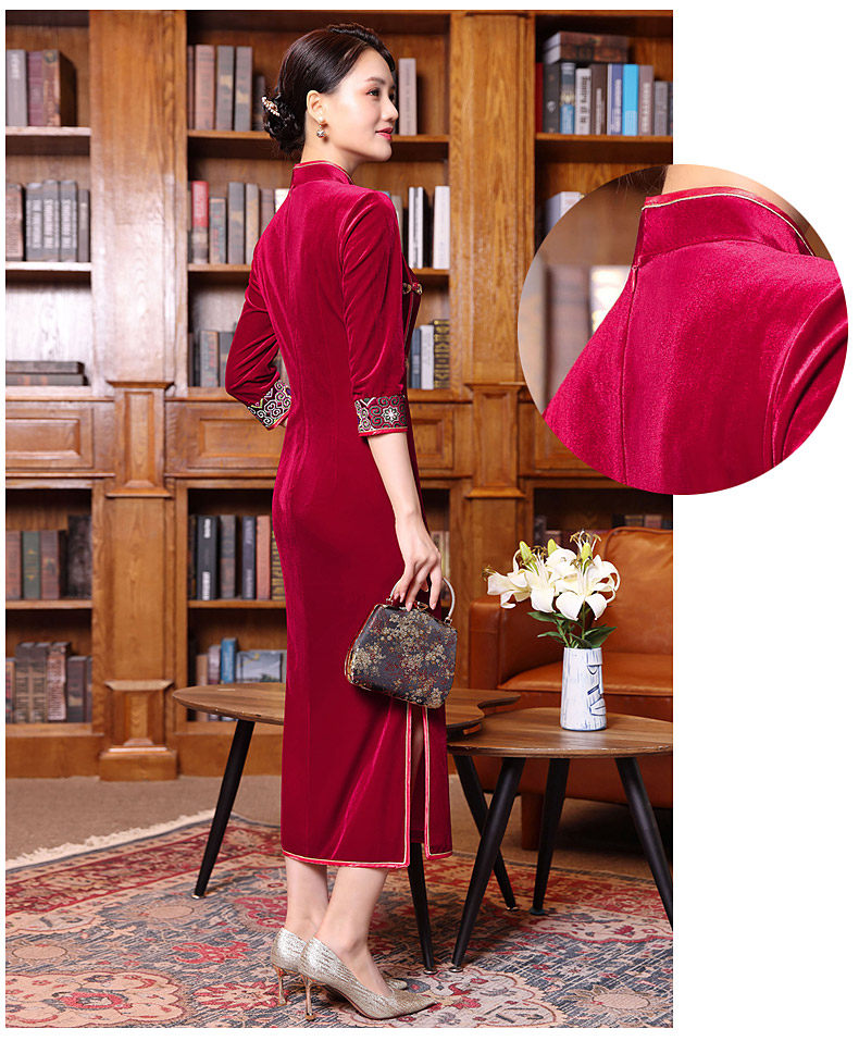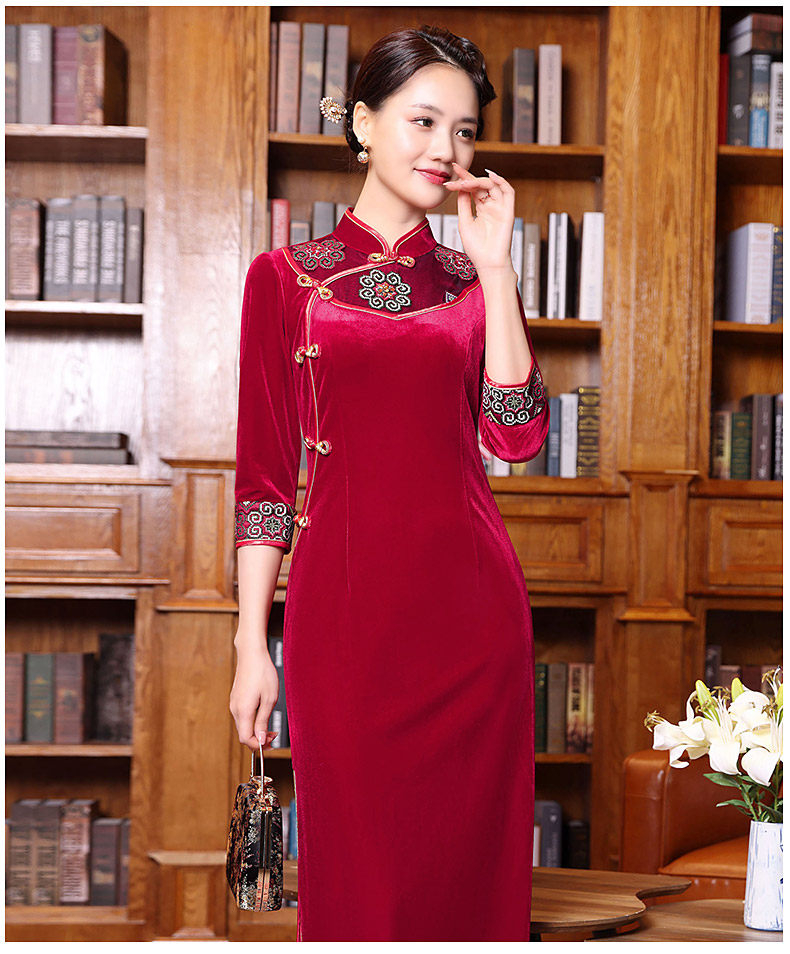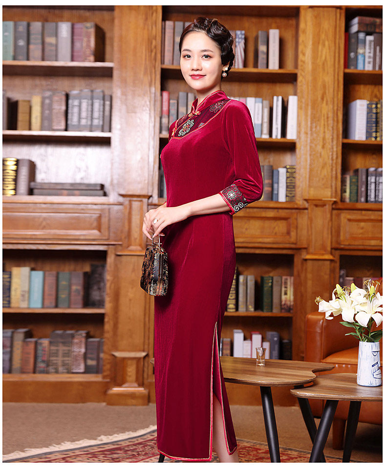 DLQ-A2788复古中国风改良旗袍秋冬丝绒款中年女妈妈装婚宴喜婆婆礼服