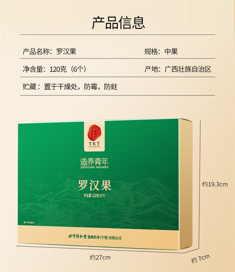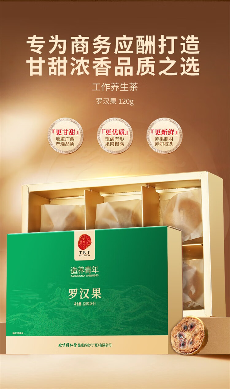 【正宗同仁堂品牌】北京同仁堂 罗汉果120g(6枚) 送礼盒 源自广西 果肉饱满 自然甘甜SY