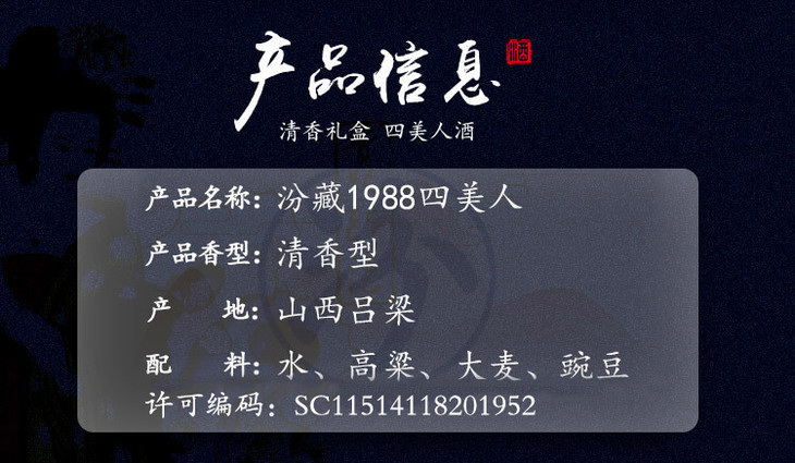 【推荐】汾酒集团 汾藏1988四大美人 53度 清香型白酒 475ml*4瓶 手提礼盒装