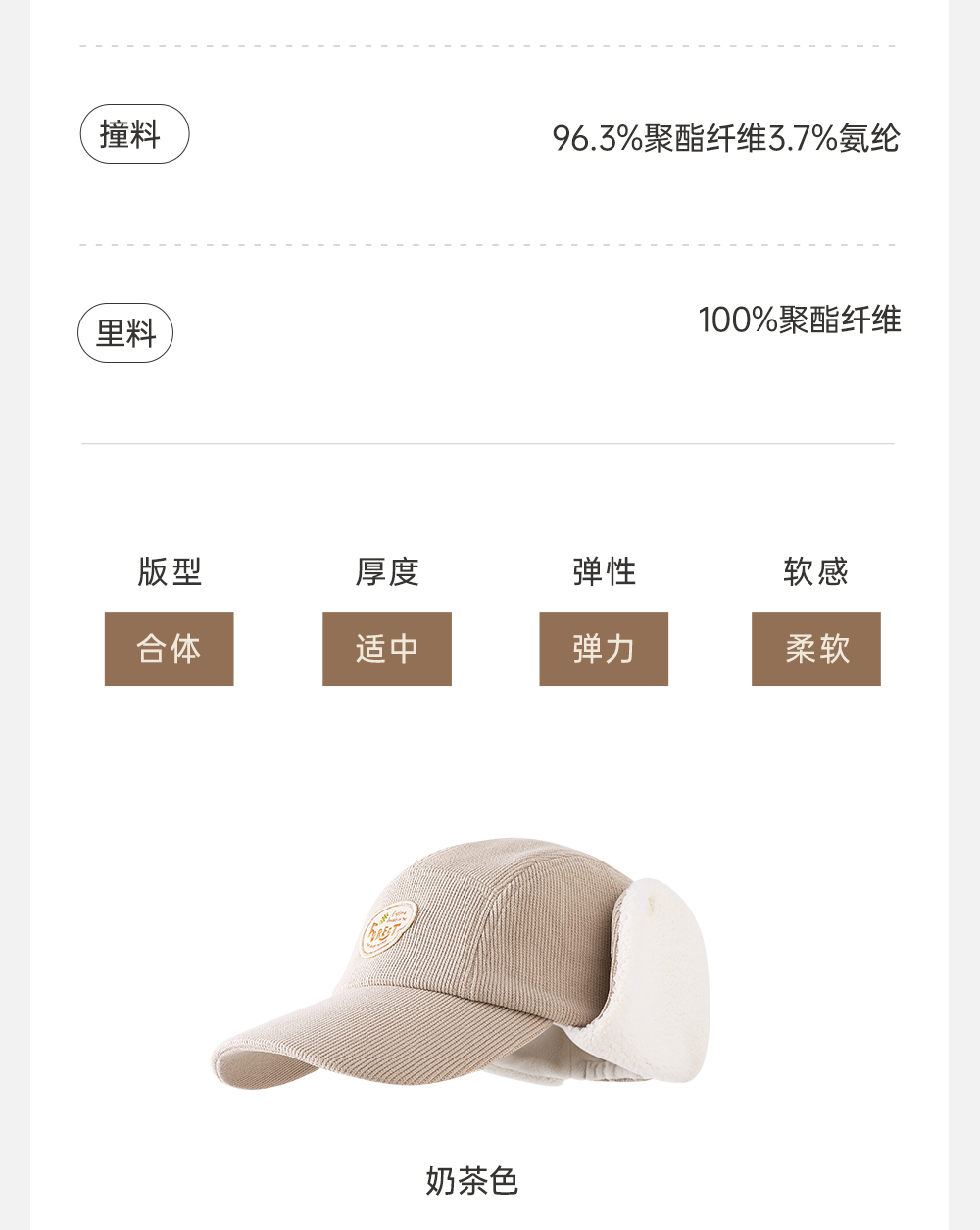 【商场同款】英氏儿童帽子秋季男童灯芯绒护耳帽子棒球帽新款