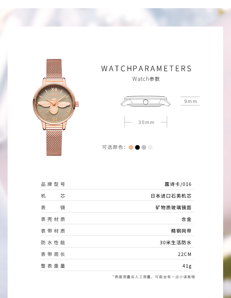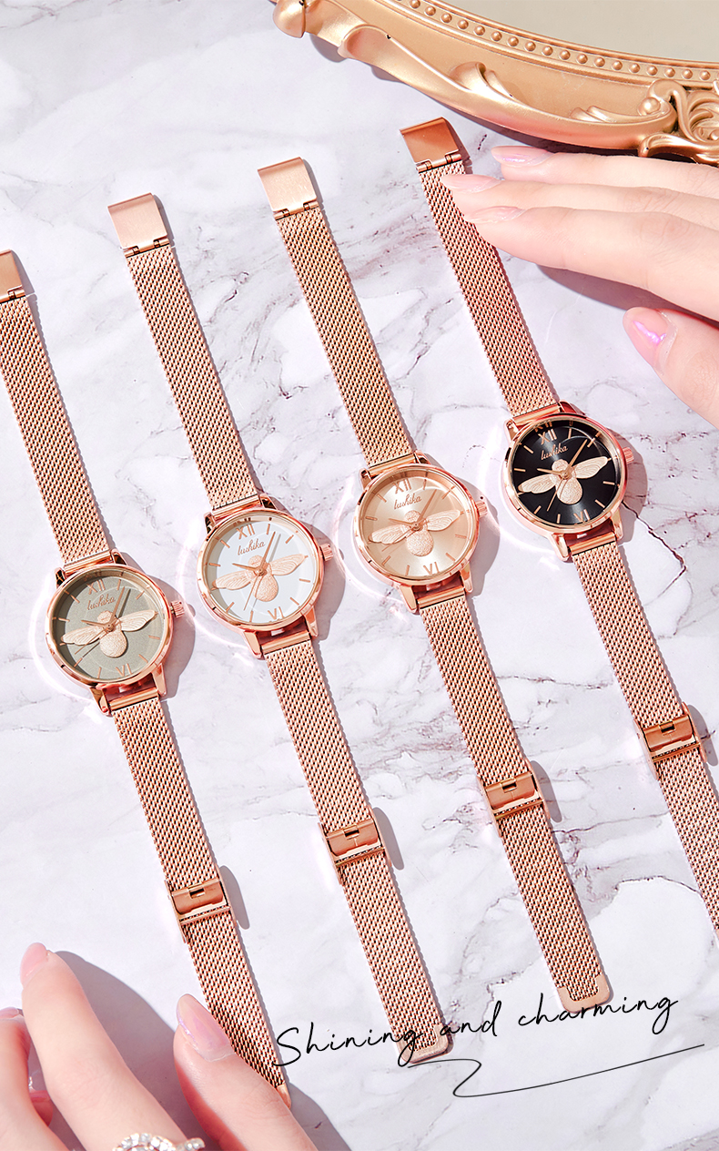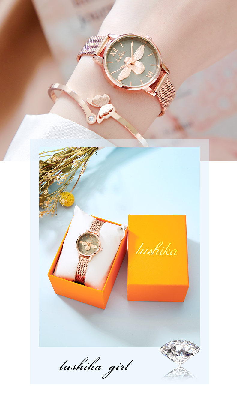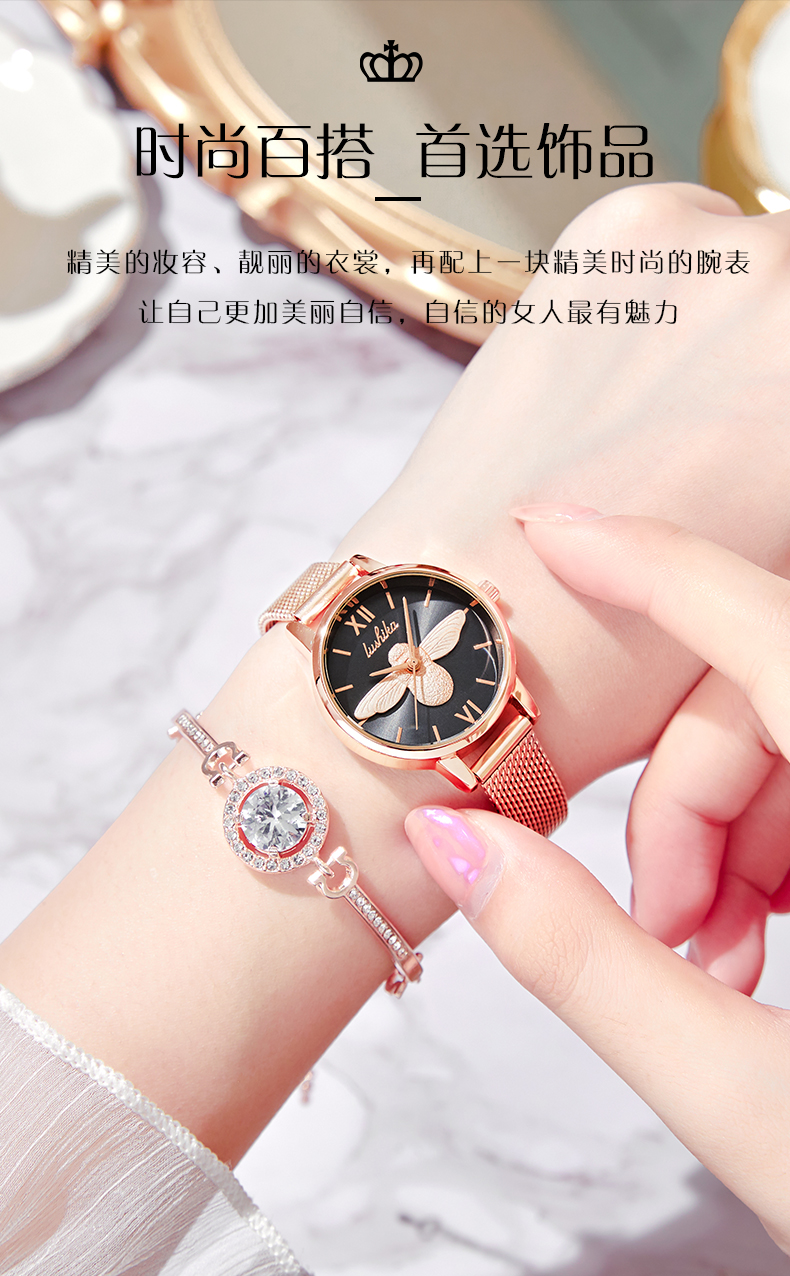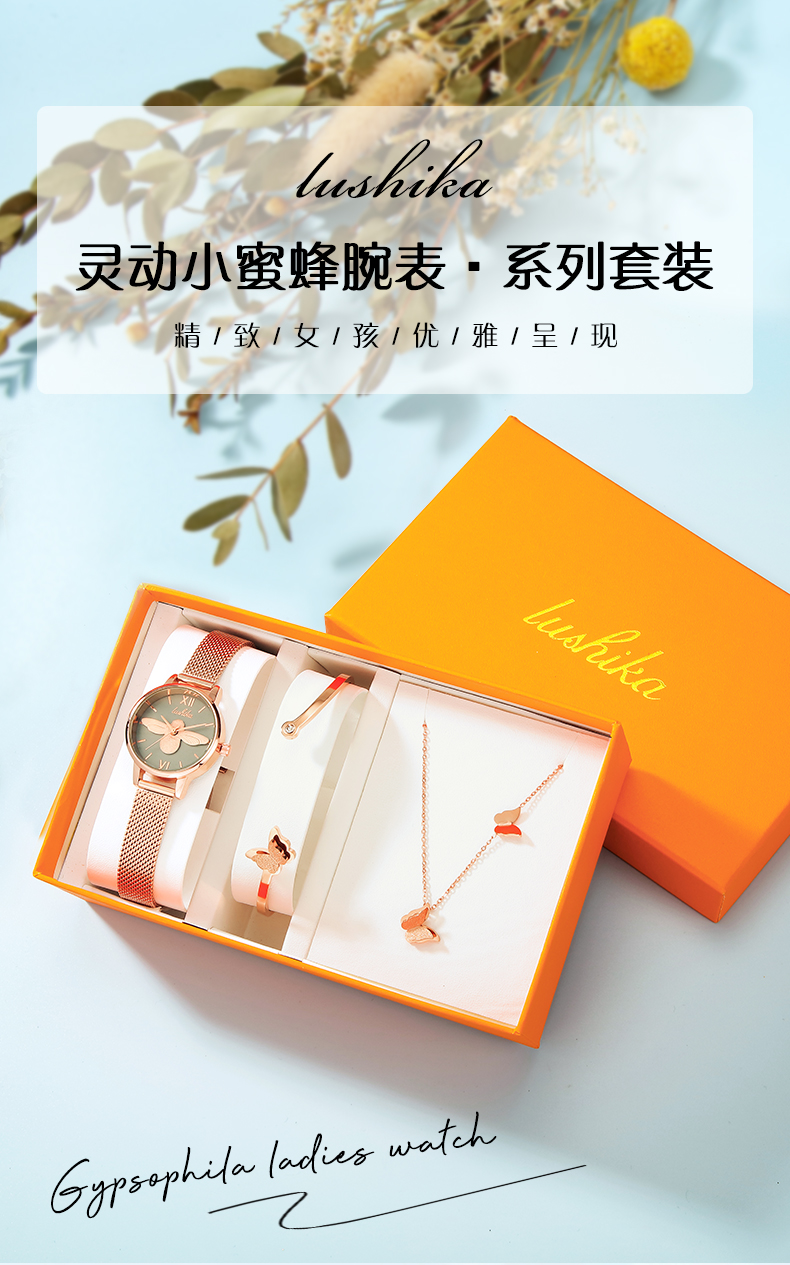【优雅气质】LUSHIKA灵动小蜜蜂腕表三件套时尚百搭精美高硬度耐磨损通光性好防水