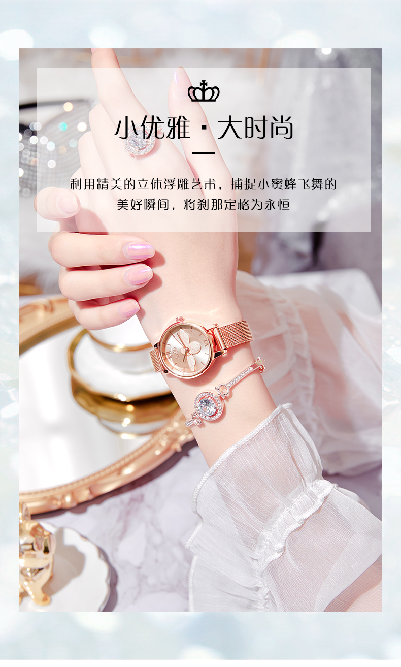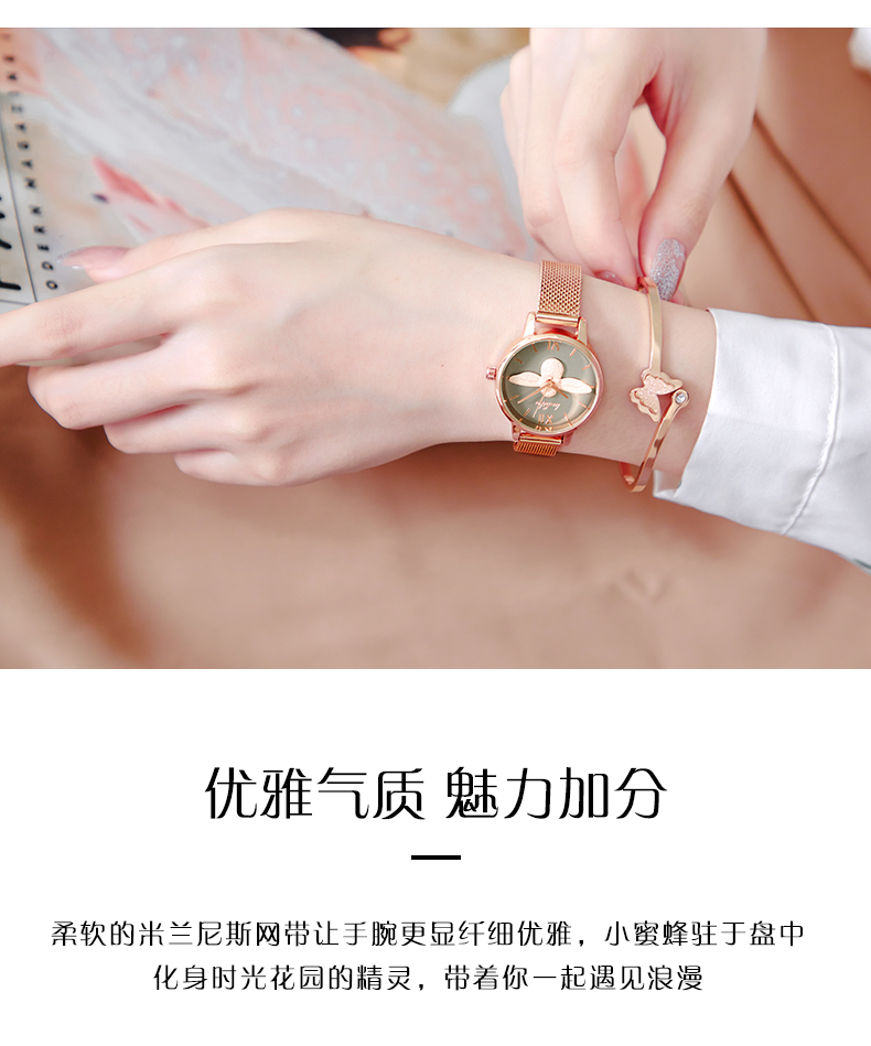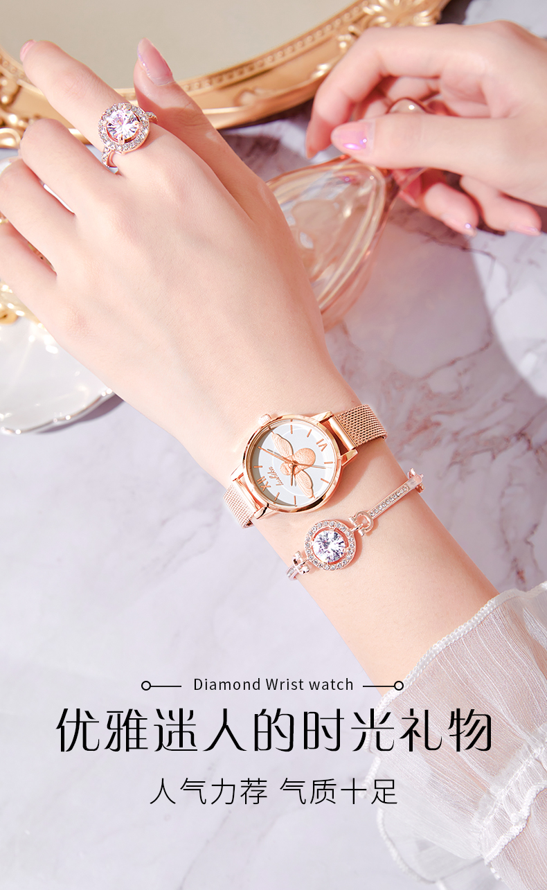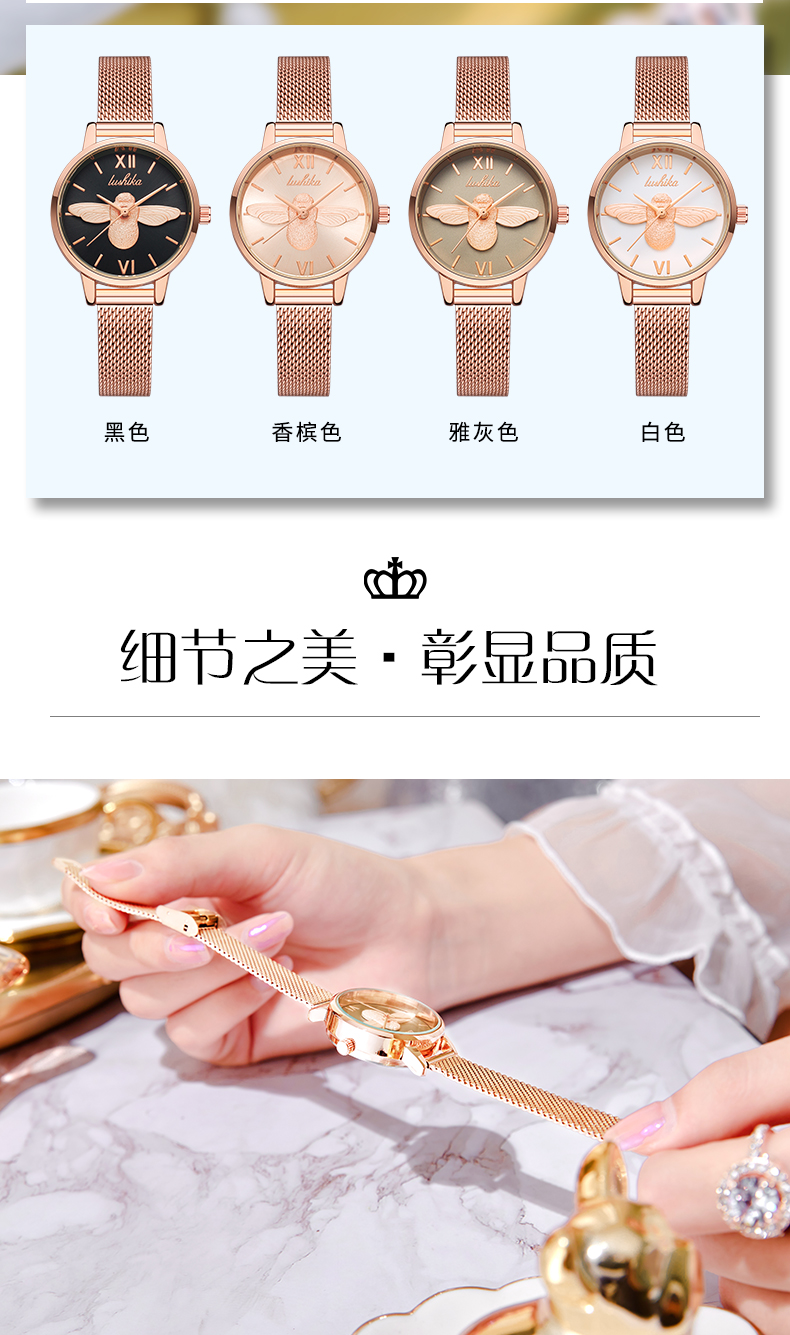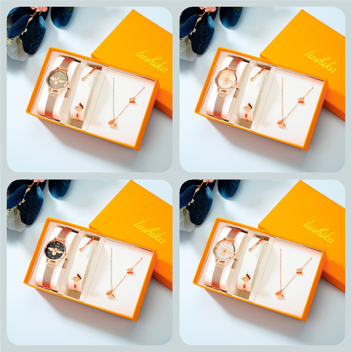 【优雅气质】LUSHIKA灵动小蜜蜂腕表三件套时尚百搭精美高硬度耐磨损通光性好防水