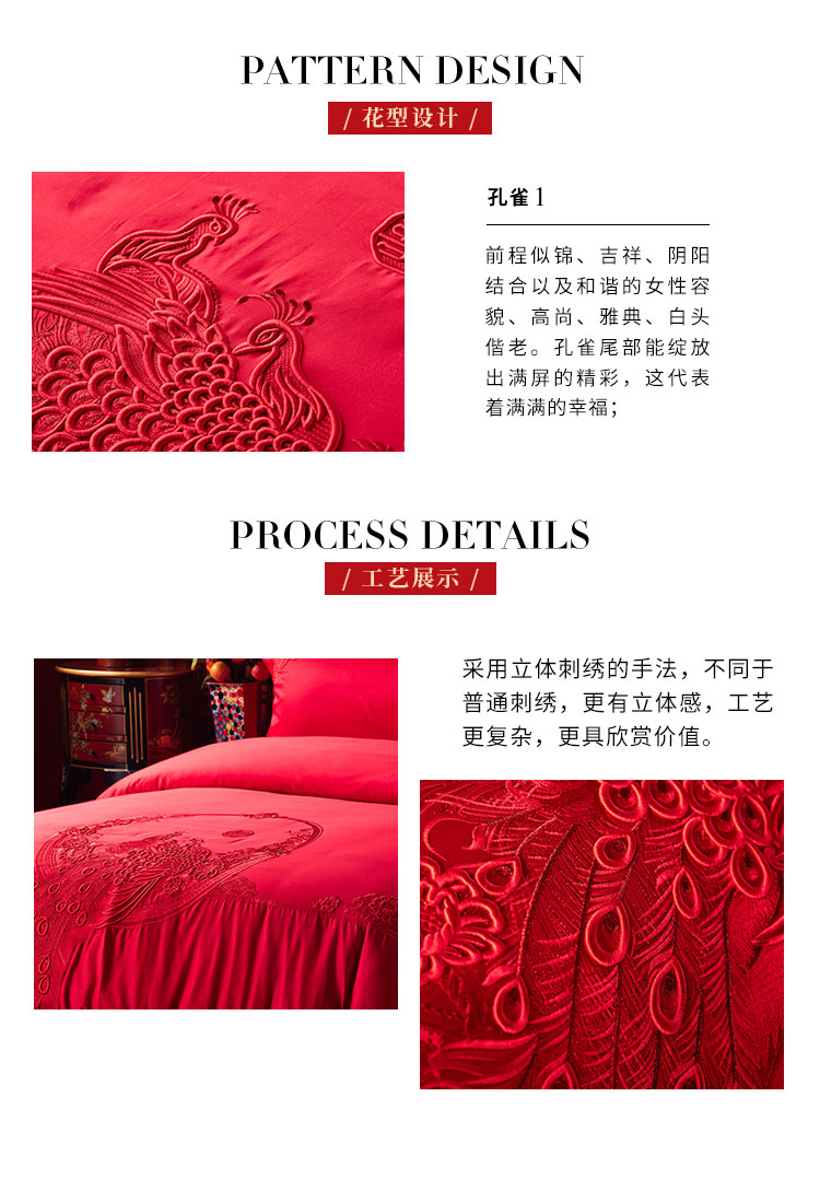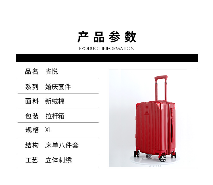 多喜爱 喜玫瑰婚庆新绒棉缎纹床上用品八件套 雀悦 cs