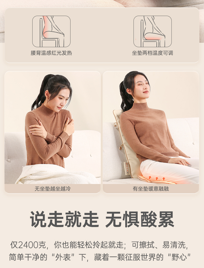 攀高智能腰背按摩垫深层揉捏缓解酸痛办公室家用两用