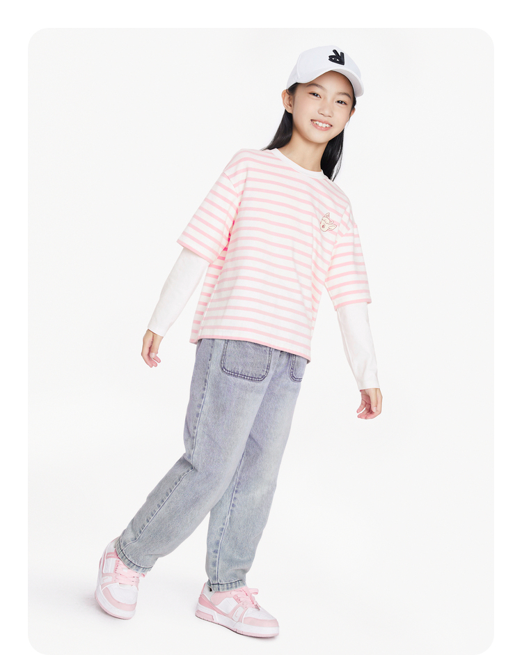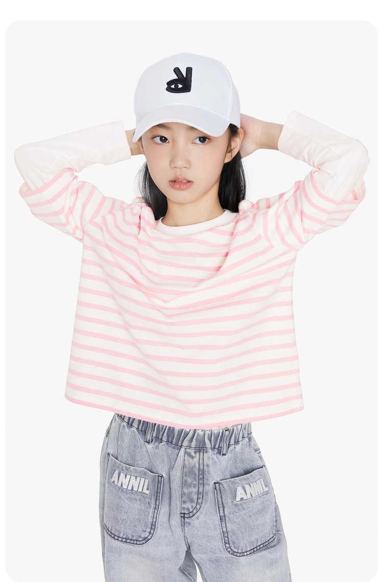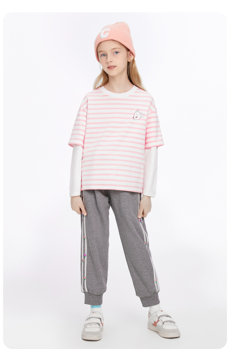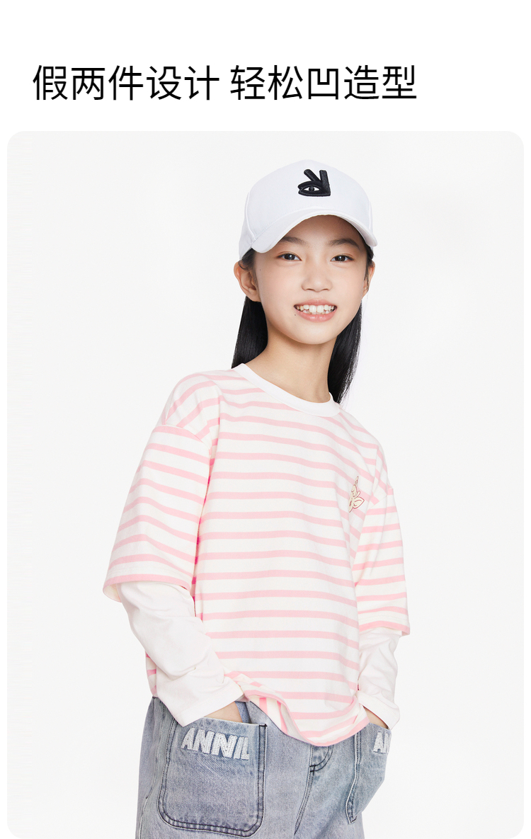 女童圆领长袖针织衫秋季新款安奈儿童装EG531613