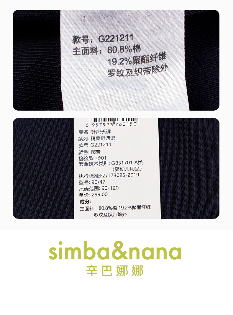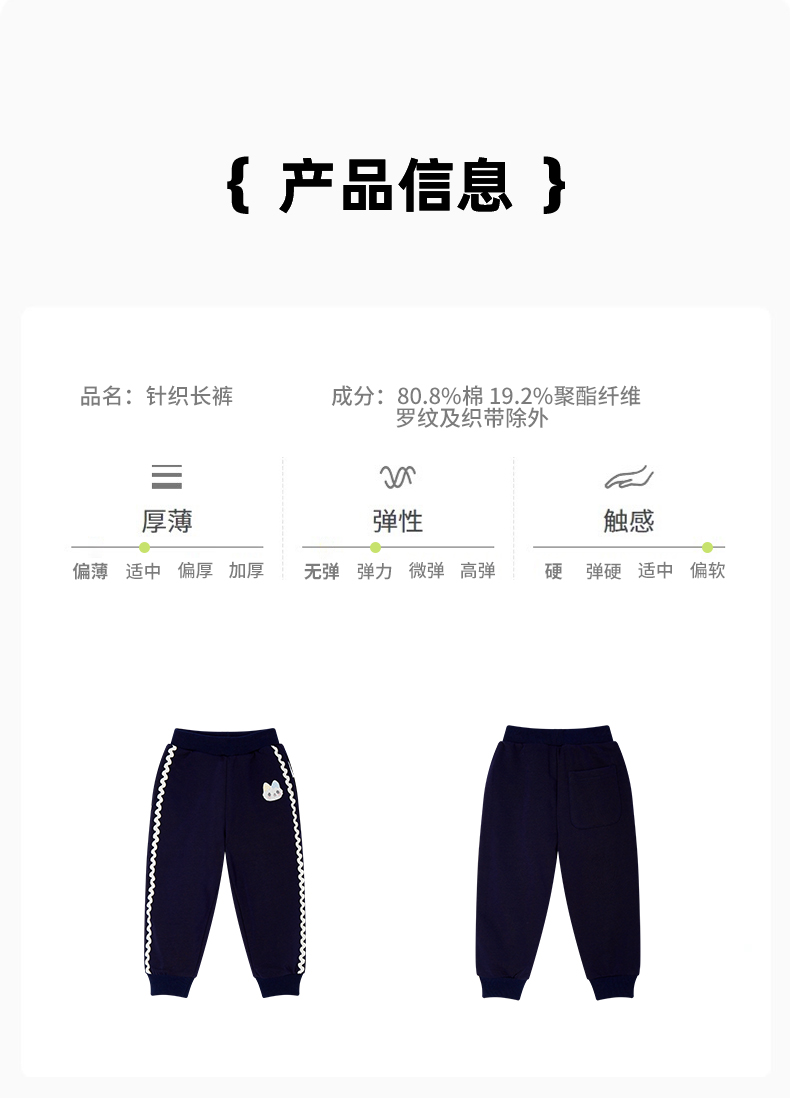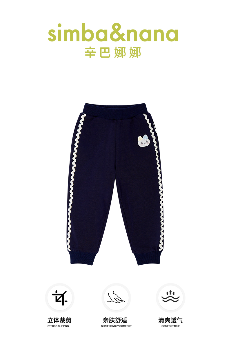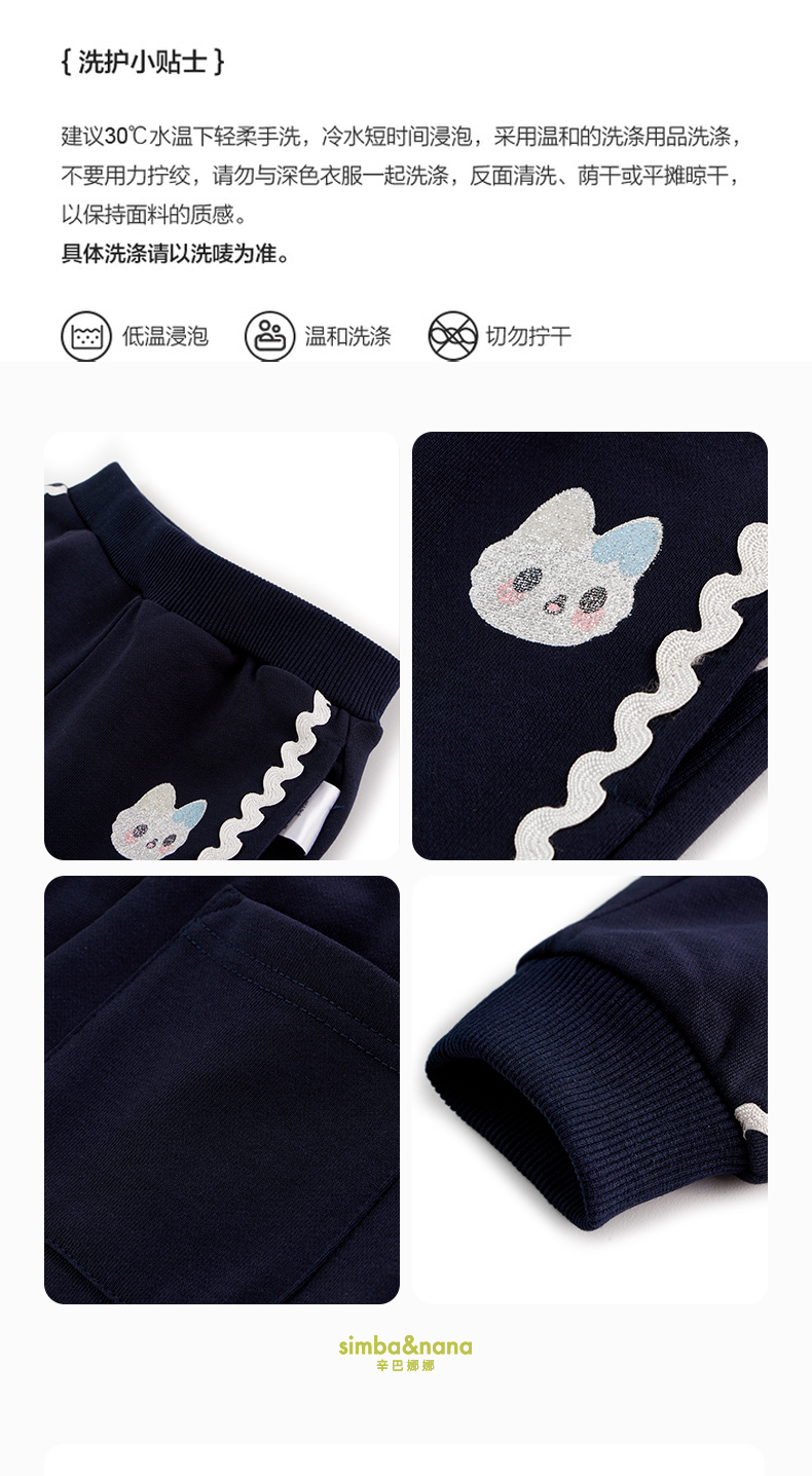 【辛巴娜娜】simbanana女童春款可爱小熊刺绣波浪边纯色卫裤女宝宝小
