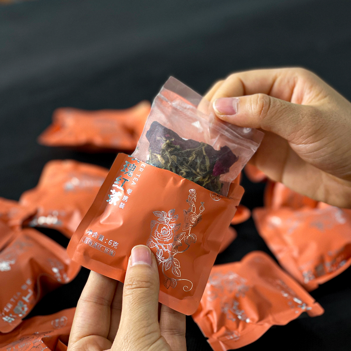 传统玫瑰花茶泡完有残渣,此款《玫瑰花茶》袋泡无叶无渣 。