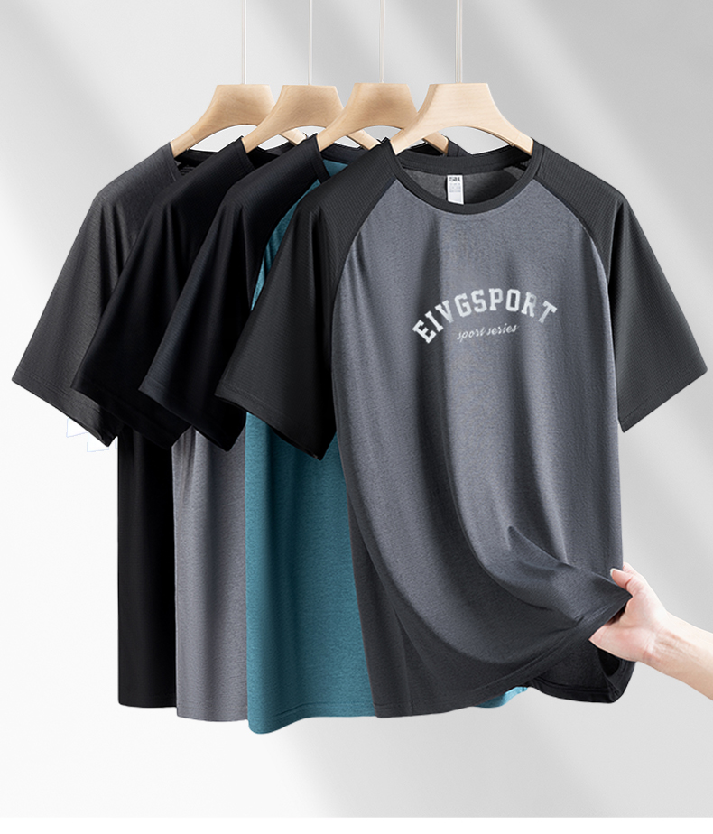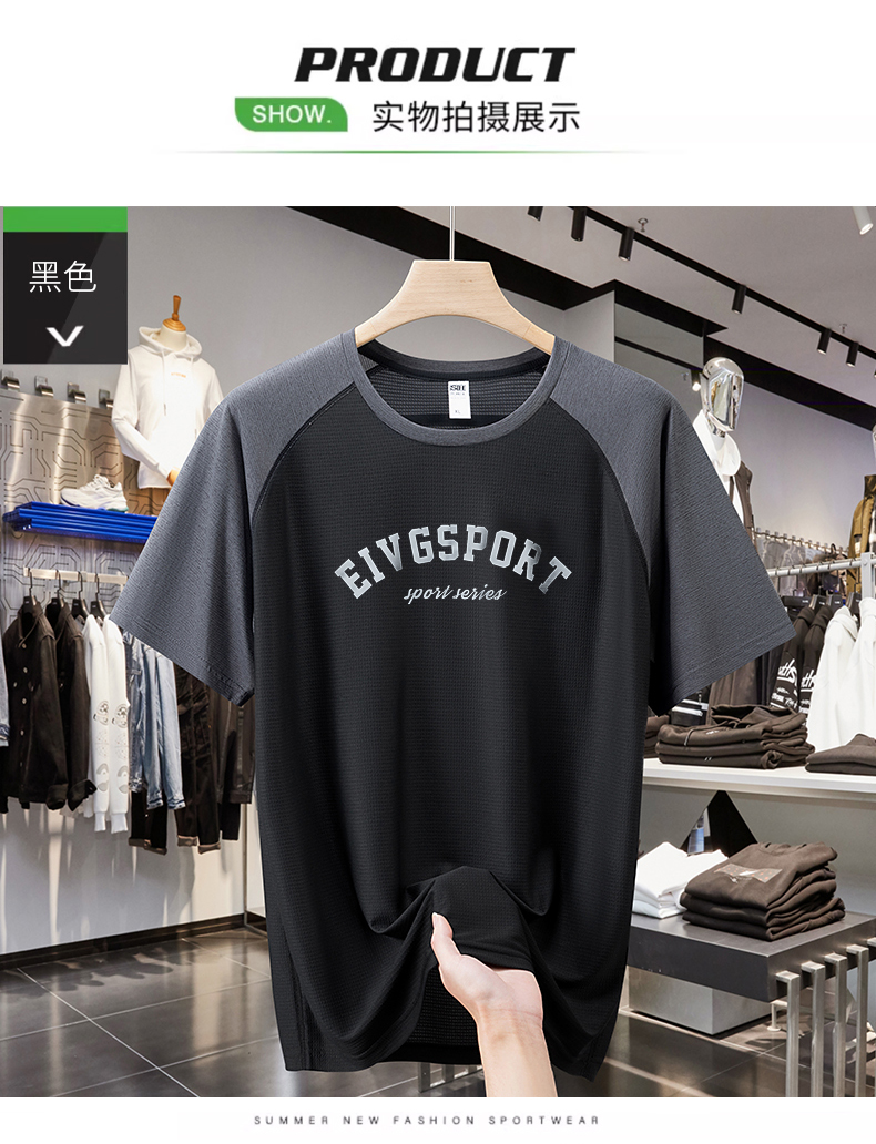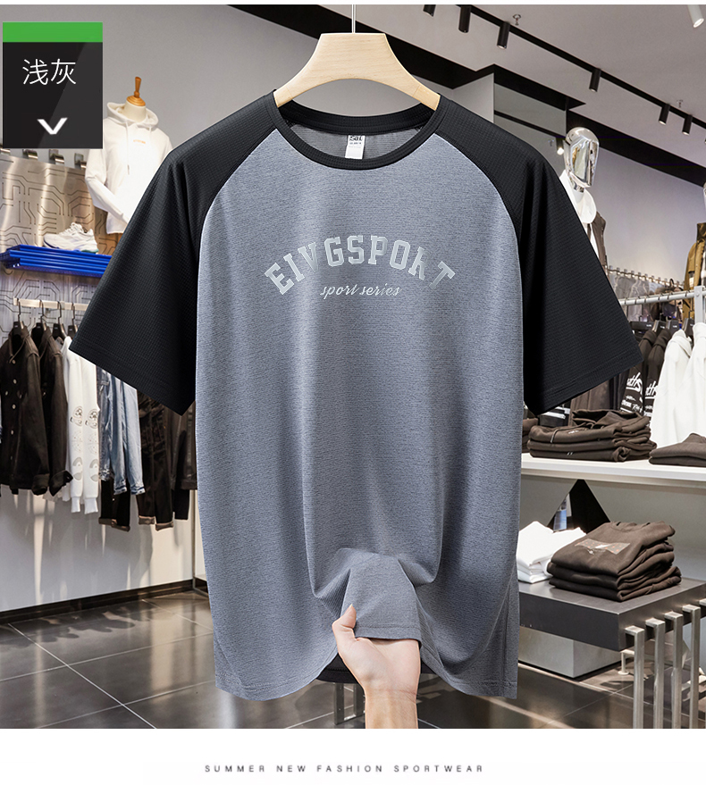 【速干】【DH】大依优型大码拼接短袖T恤加肥加大宽松休闲胖子打底半袖男士上衣潮流