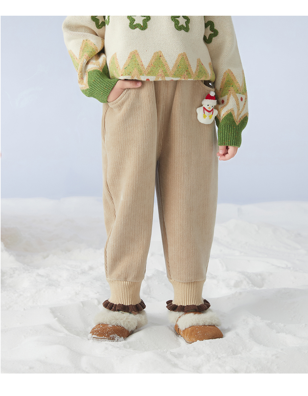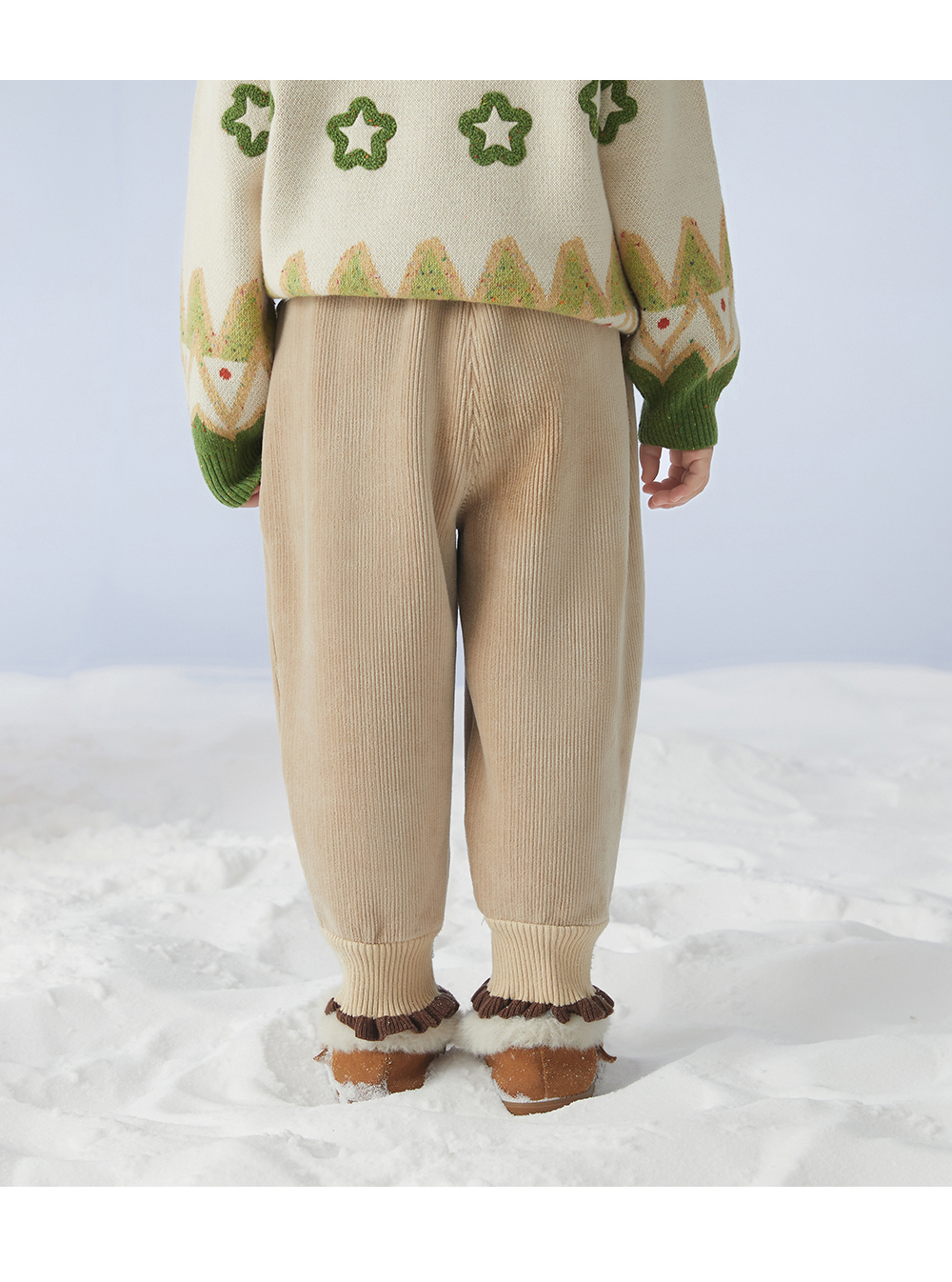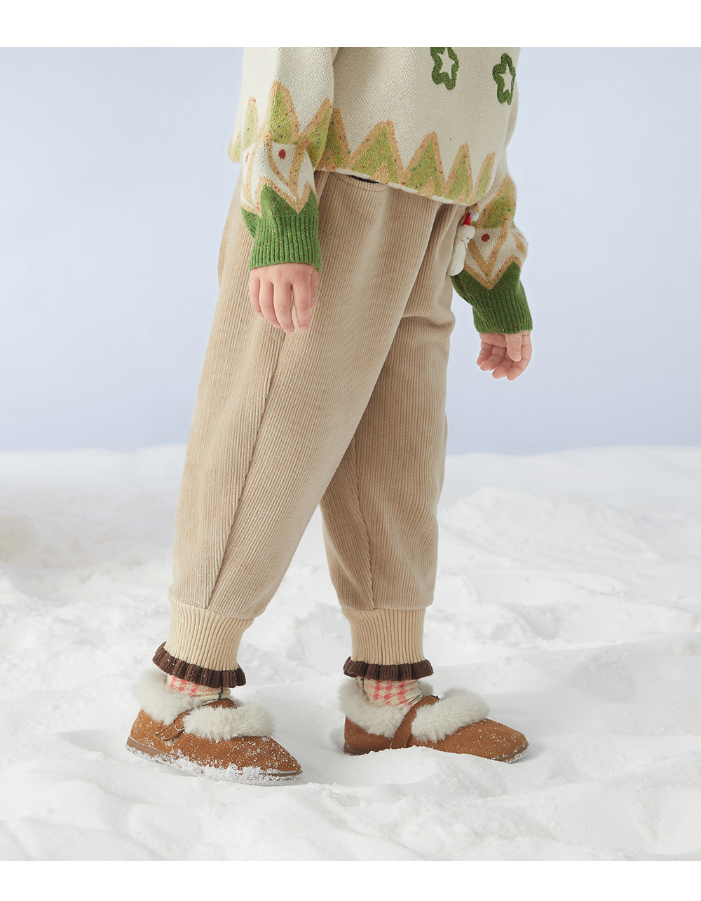 【秒】【MQD】女小童冬季甜美可爱木耳边休闲针织长裤