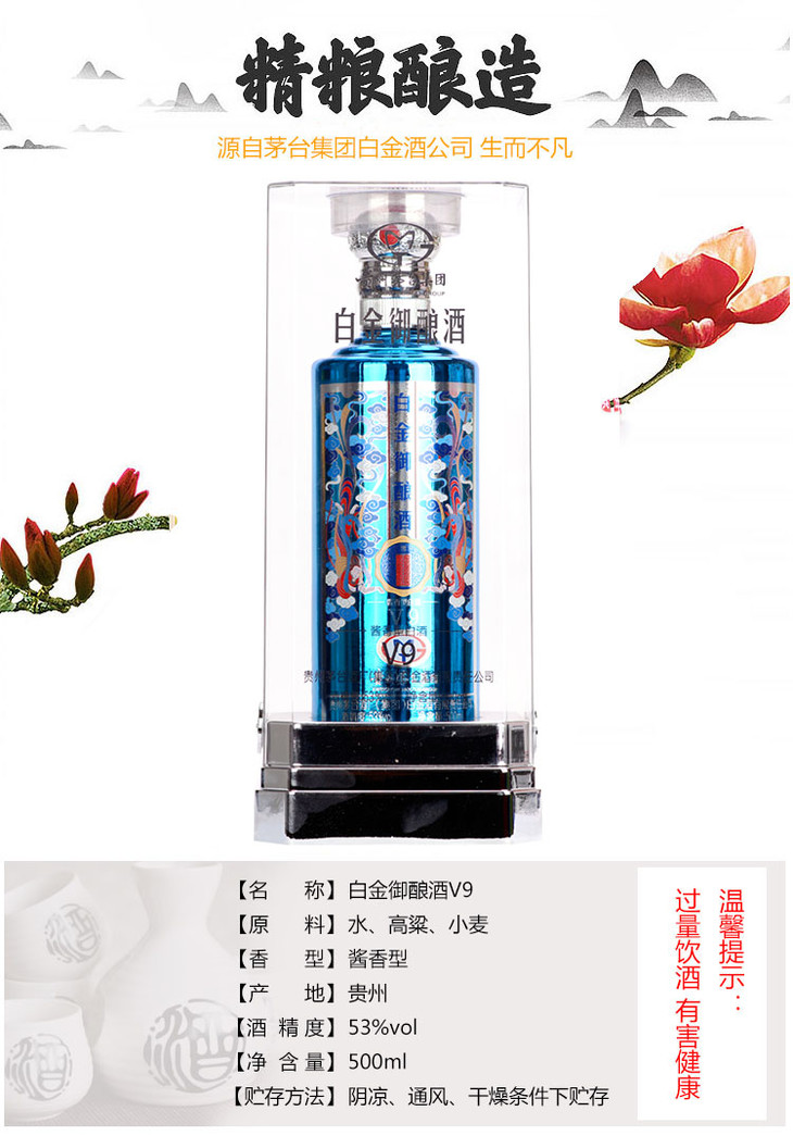 【推荐】茅台集团 53°白金御酿酒V9酱香型白酒(蓝色)500ml*2瓶双支装