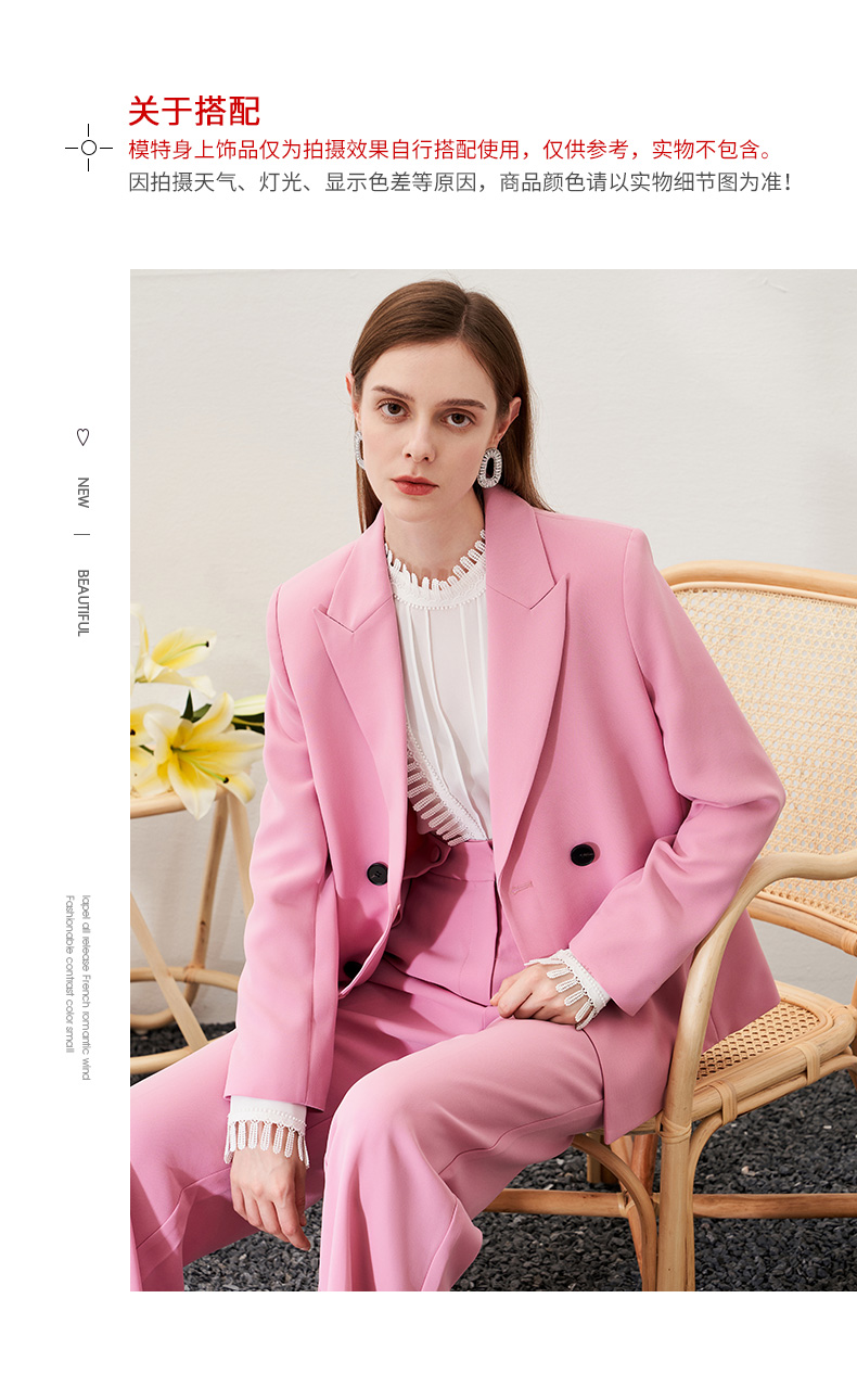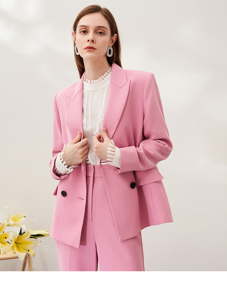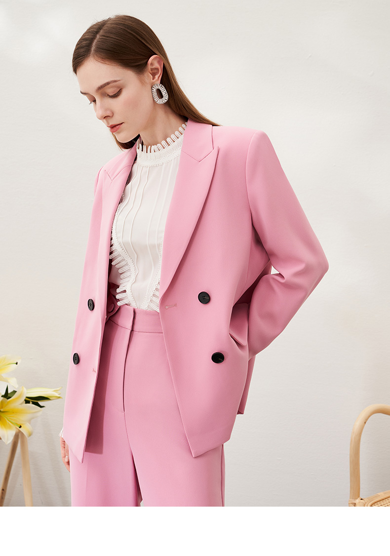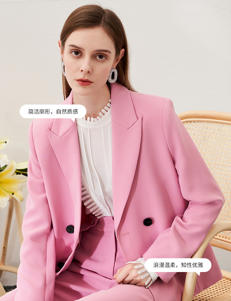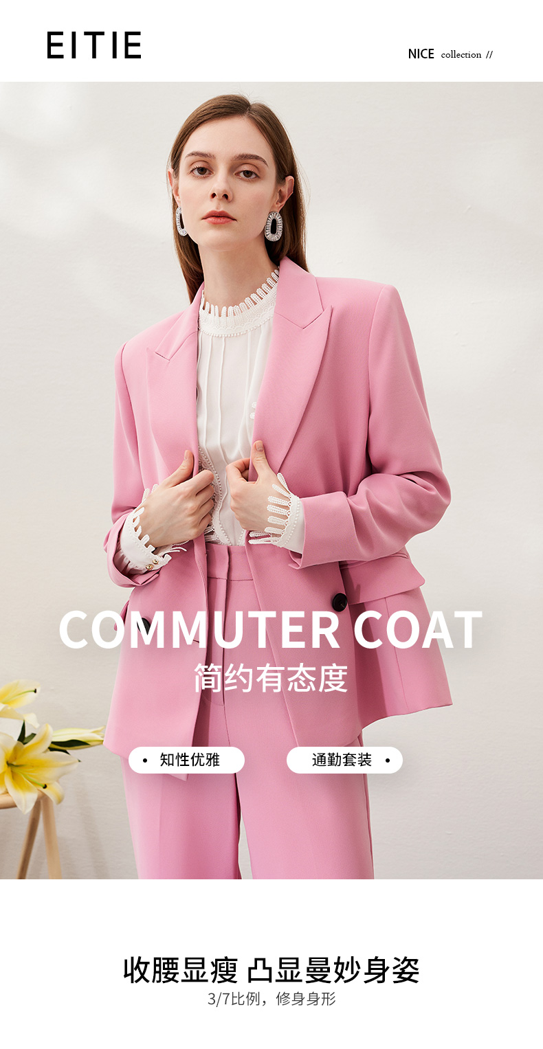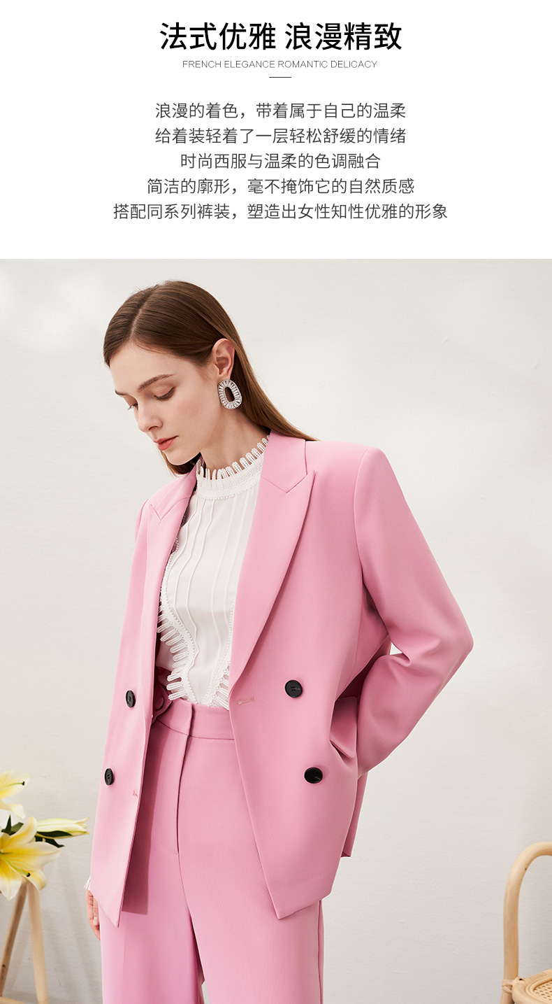 EITIE爱特爱春季新款时尚通勤干练双排扣显瘦西装外套女6903604
