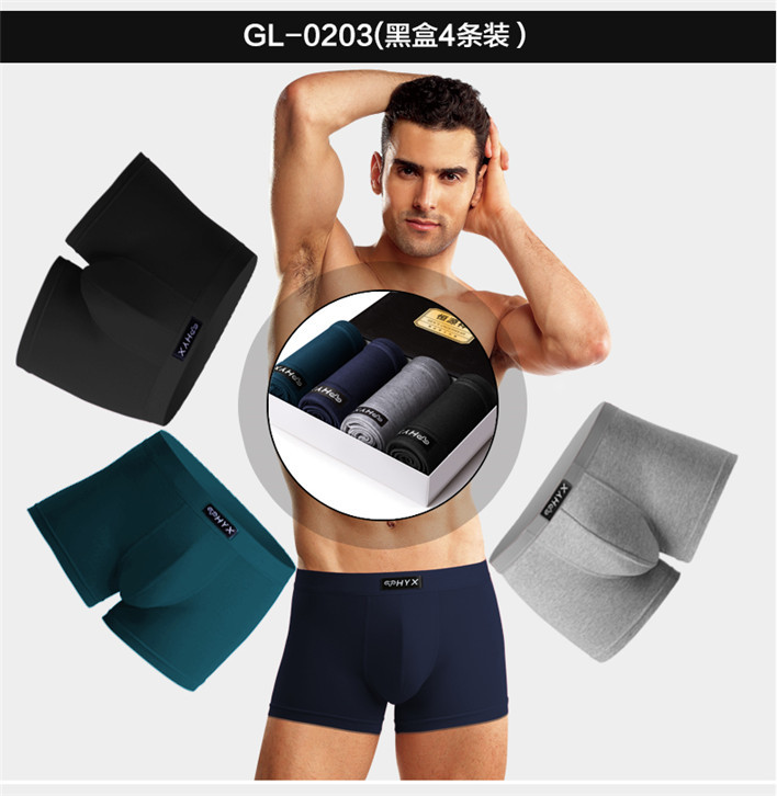 恒源祥男士内裤 男式再生纤维四角中腰平角裤 4条礼盒装 EMD0683