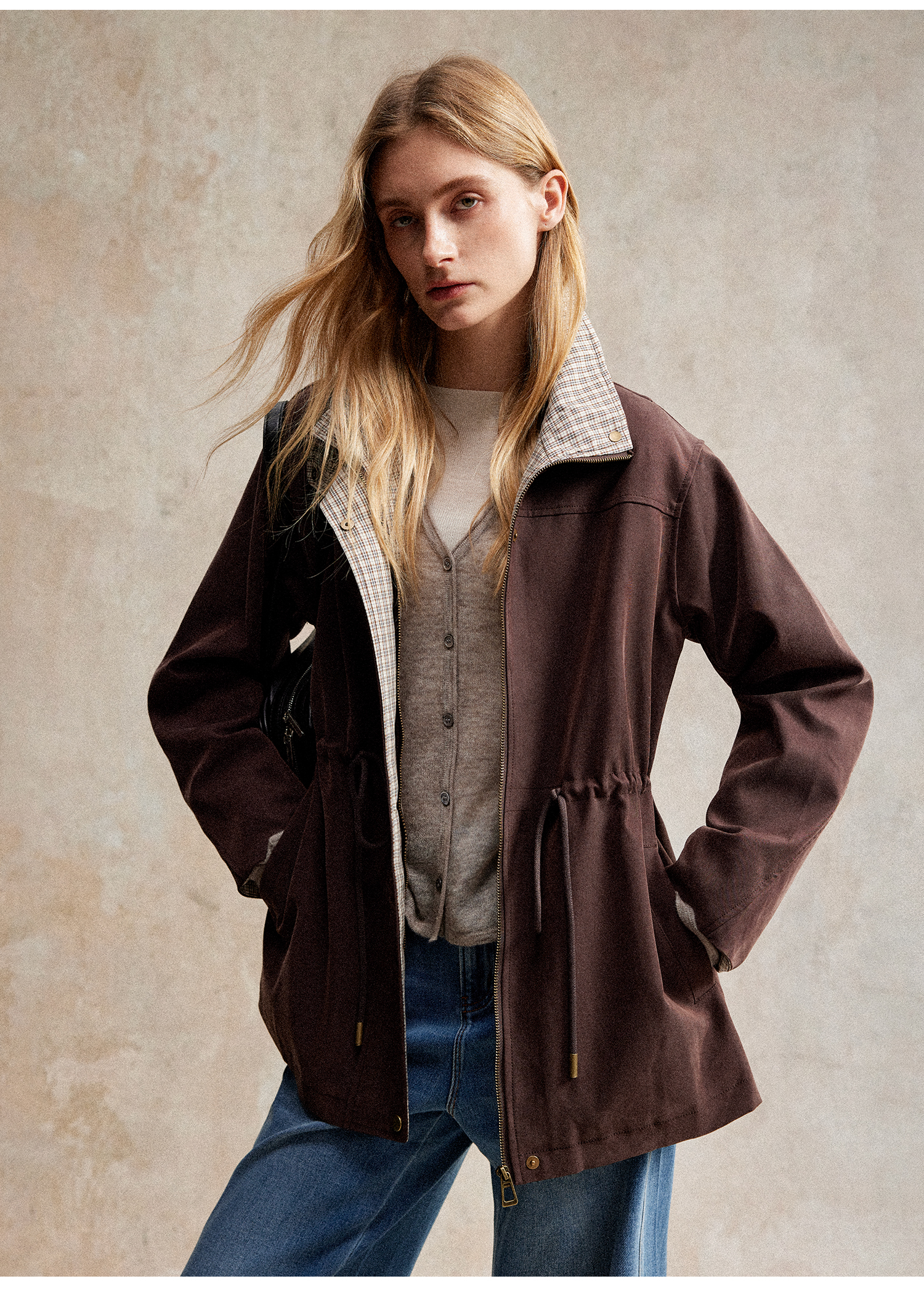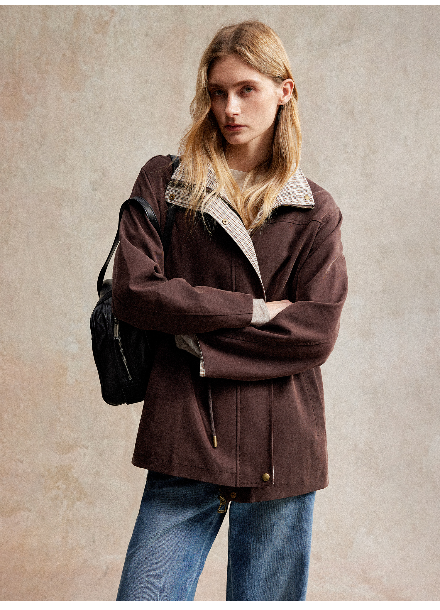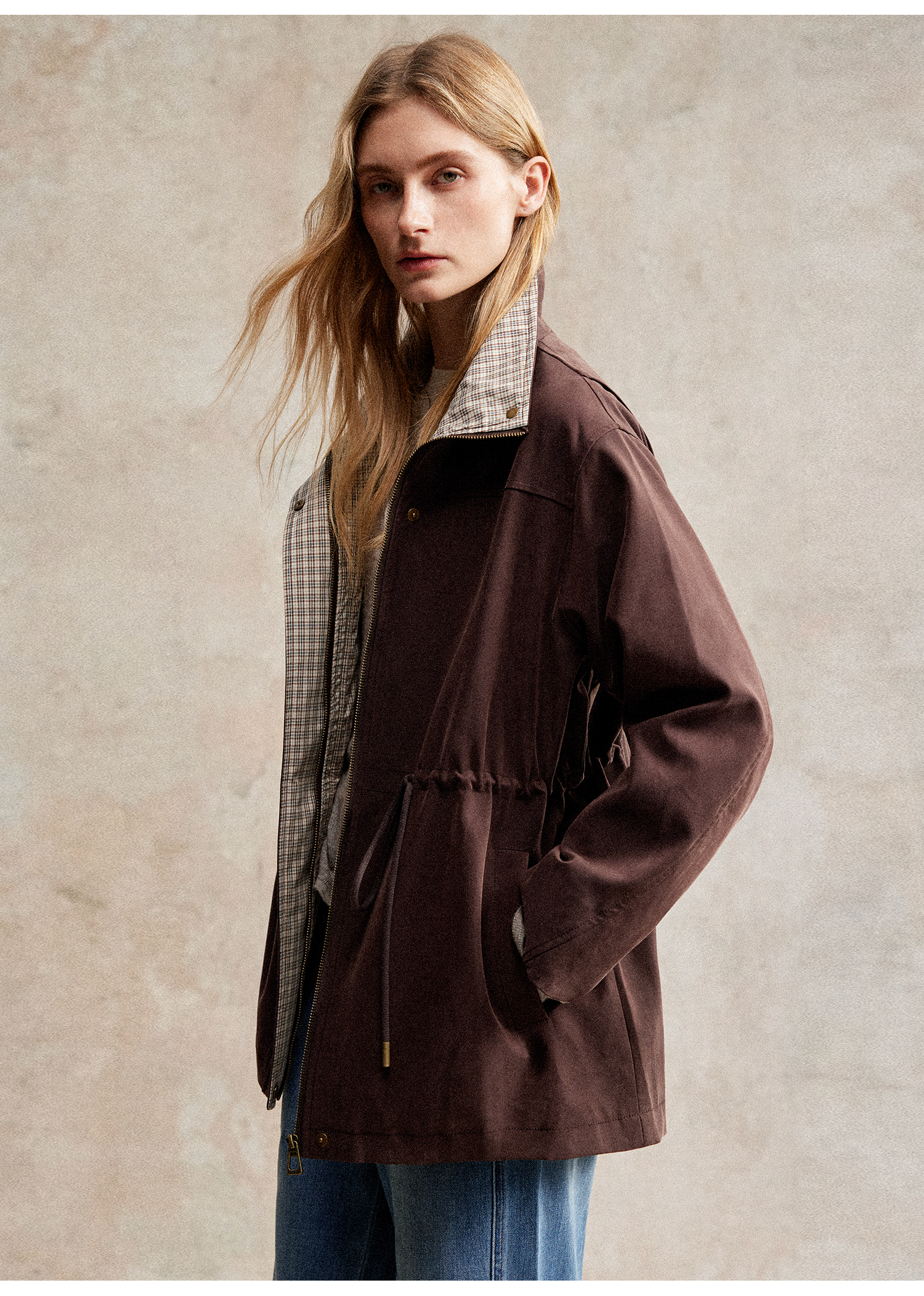 质感巴恩风25猎装夹克拼接格纹风衣外套