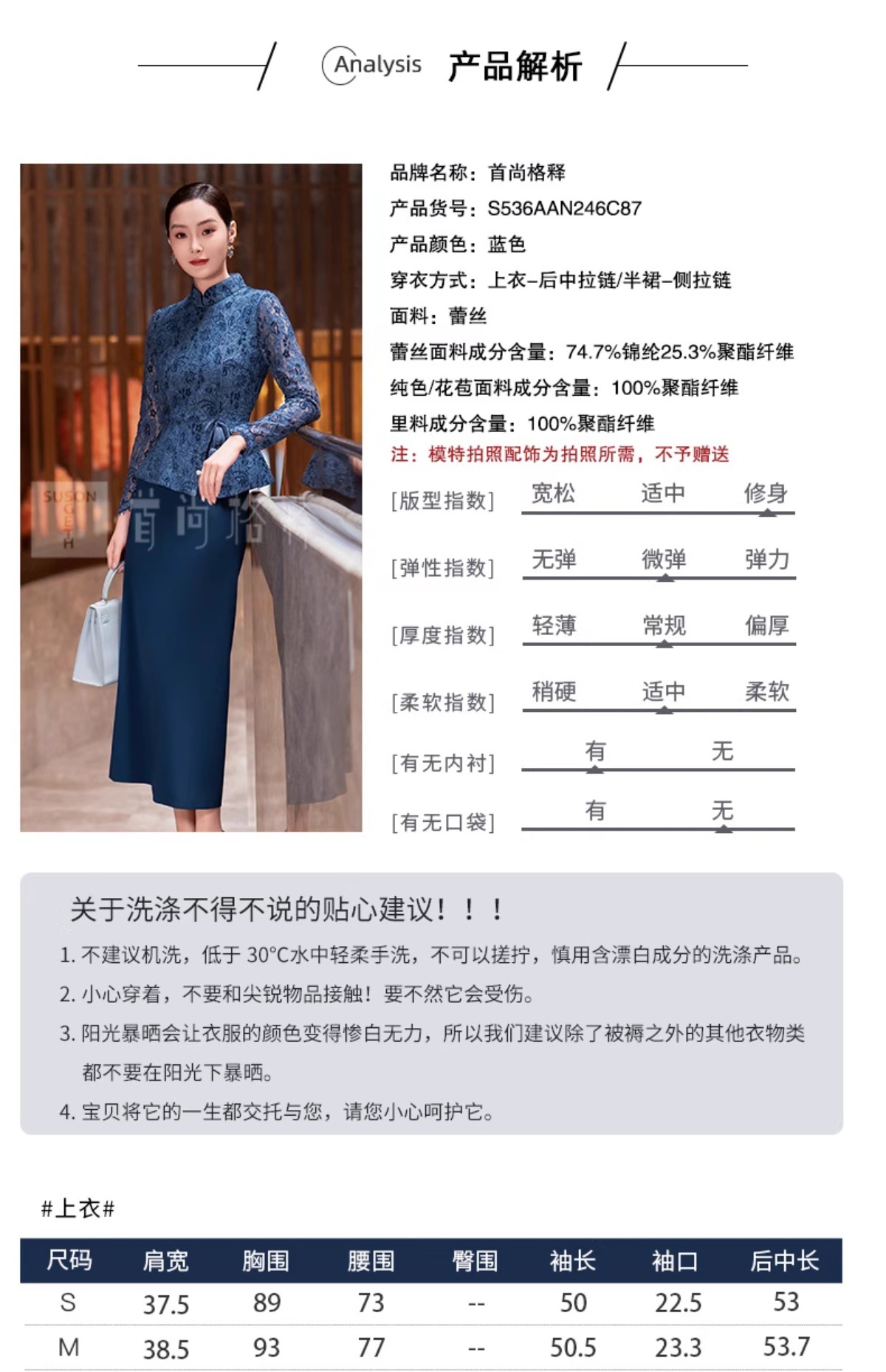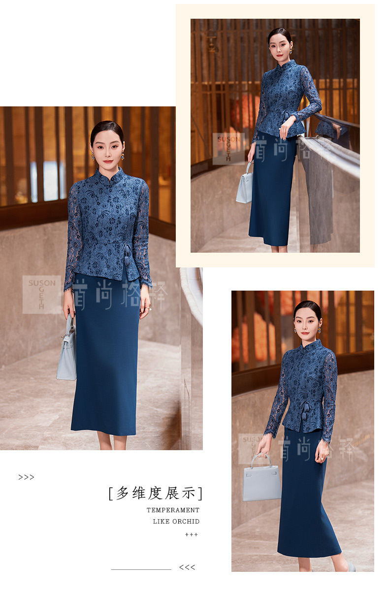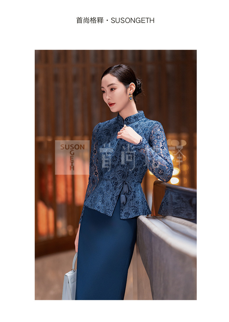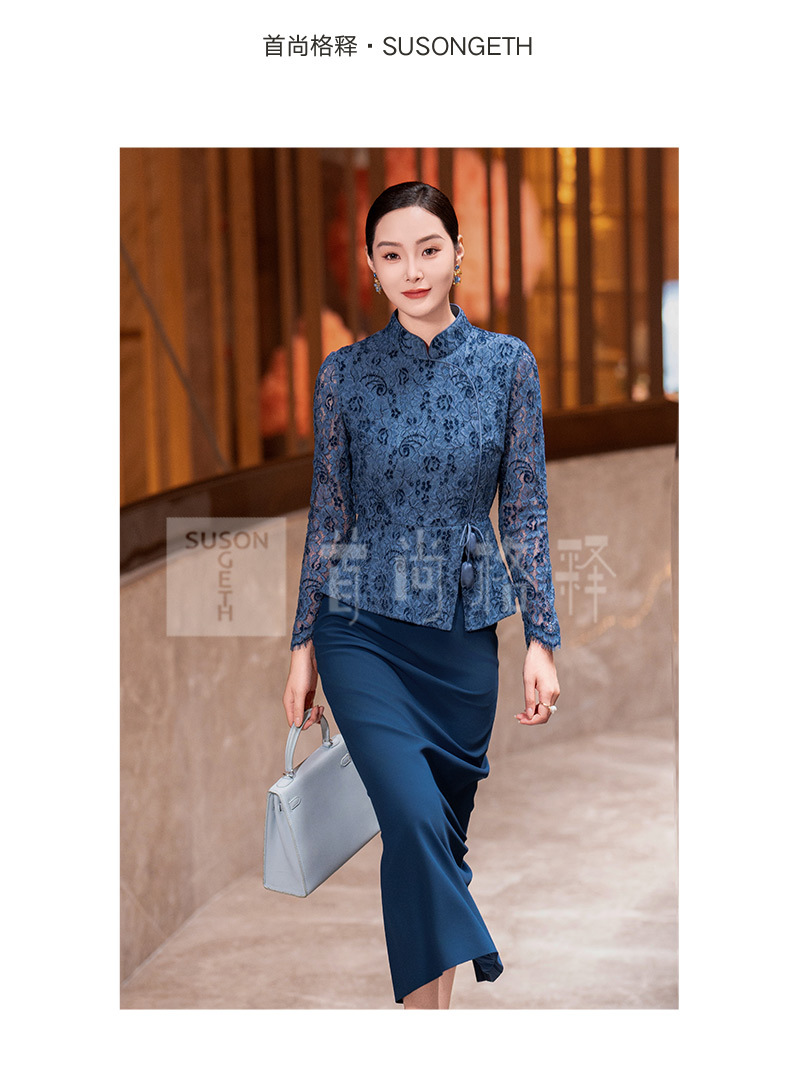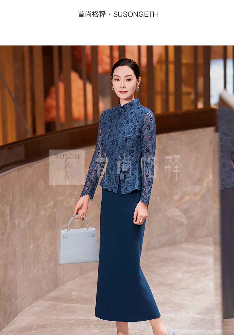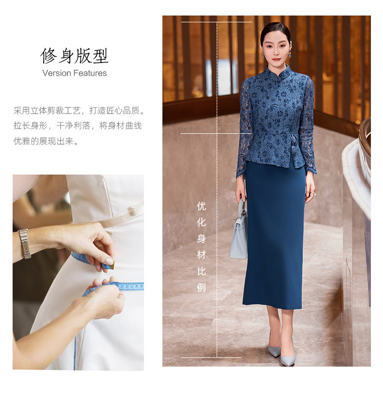 YBY N246新中式套装裙气质蕾丝外套时尚半身裙两件套裙