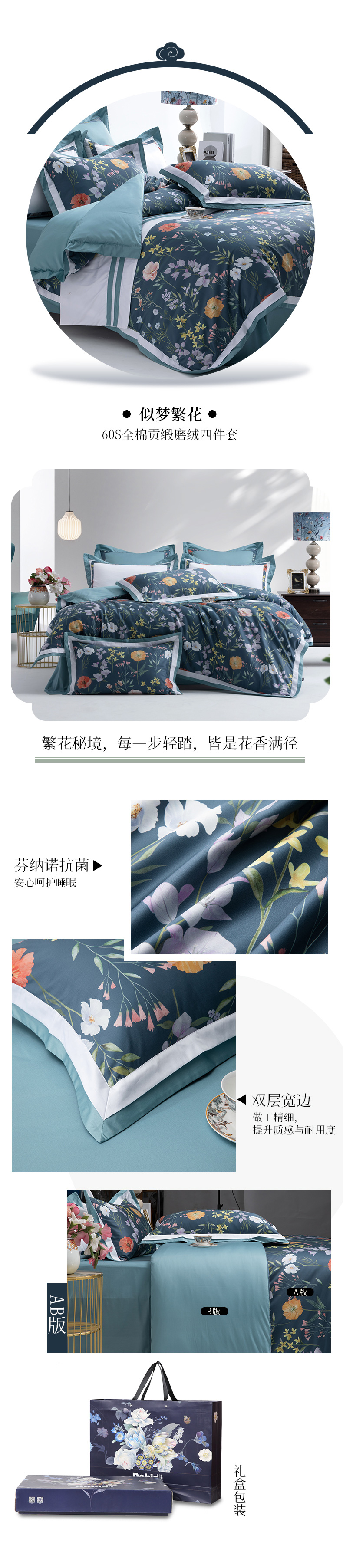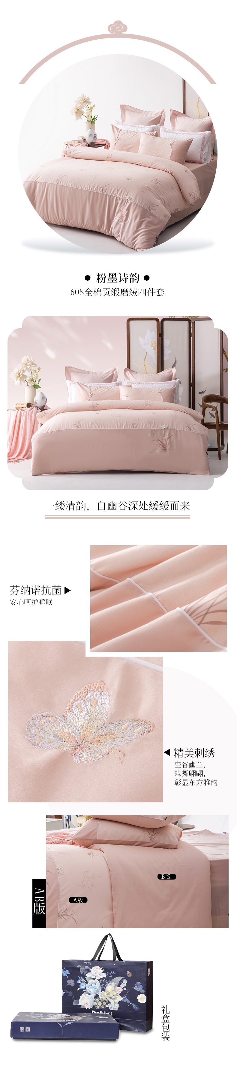 多喜爱 新绒棉磨绒床上用品四件套 粉墨诗韵/金叶知秋/月影芭蕉hl【高支高密】【长绒棉】【细腻柔软】