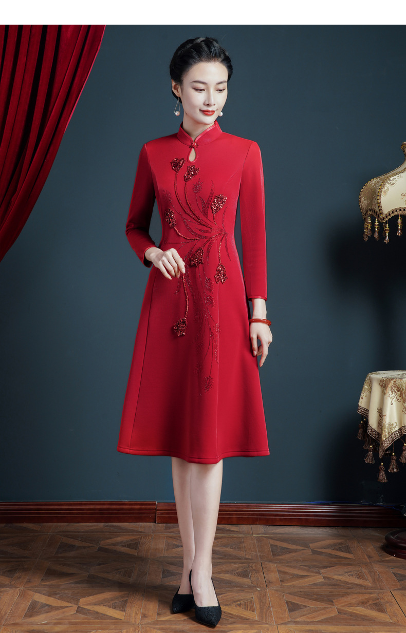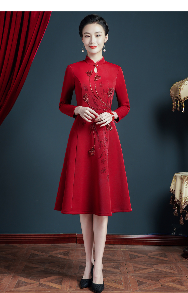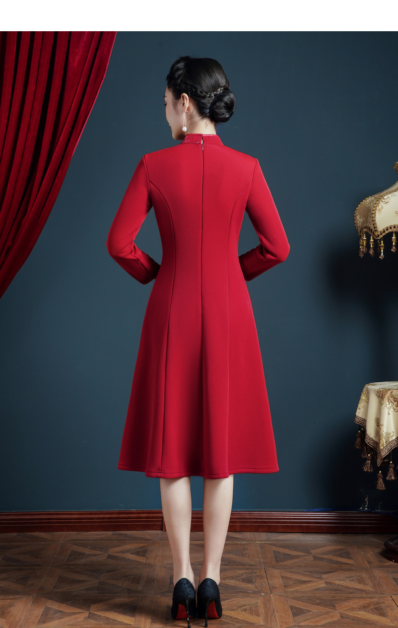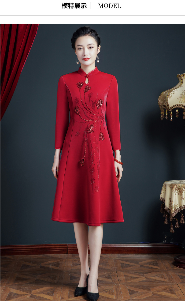 上海旗袍厂JC-62306参加婚礼服秋冬高贵改良旗袍加厚连衣裙