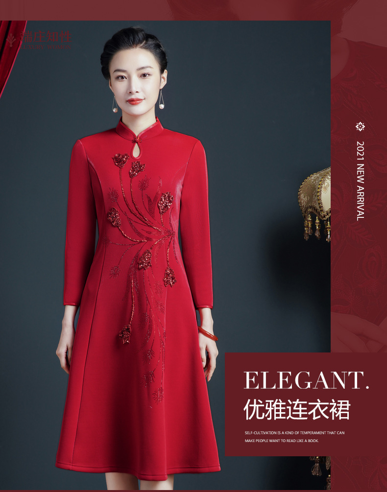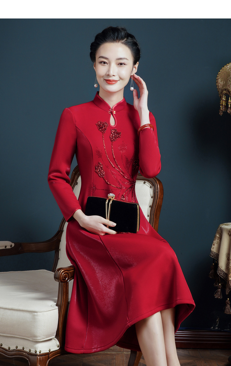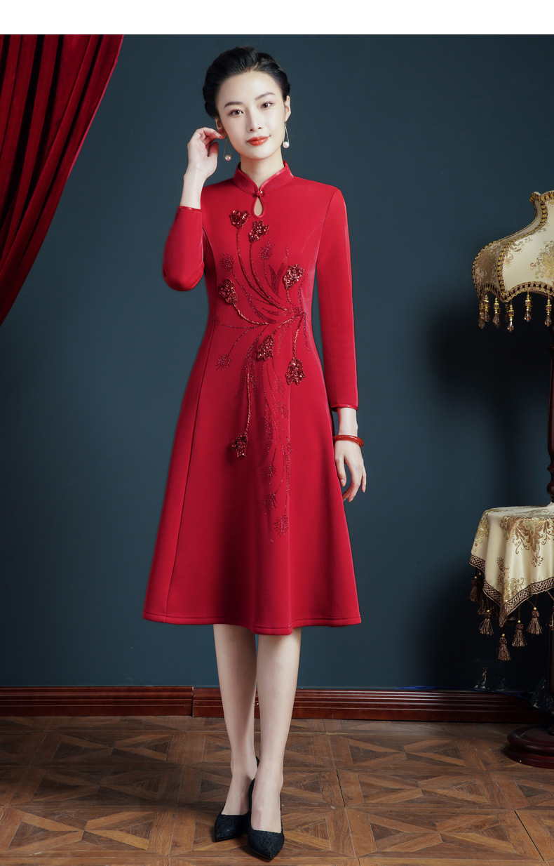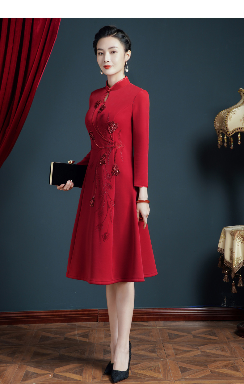 上海旗袍厂JC-62306参加婚礼服秋冬高贵改良旗袍加厚连衣裙
