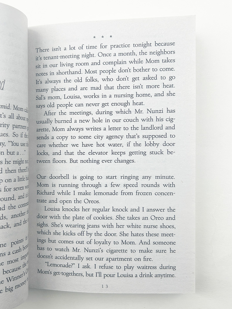 But things start to unravel. Sal gets punched by a kid on the street for what seems like no reason, and he shuts Miranda out of his life. The apartment key that Miranda’s mom keeps hidden for emergencies is stolen. And then a mysterious note arrives, scrawled on a tiny slip of paper. The notes keep coming, and Miranda slowly realizes that whoever is leaving them knows things no one should know. Each message brings her closer to believing that only she can prevent a tragic death. Until the final note makes her think she’s too late.