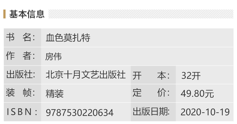 《血色莫扎特》是一部形式新颖,内容丰富的长篇小说,充分体现了房伟“以别致形式书写深切内容”的美学追求,是近年来长篇小说的重要收获!——杨庆祥(中国人民大学文学院副院长、教授、博士生导师)