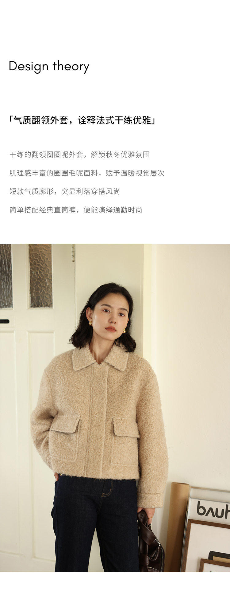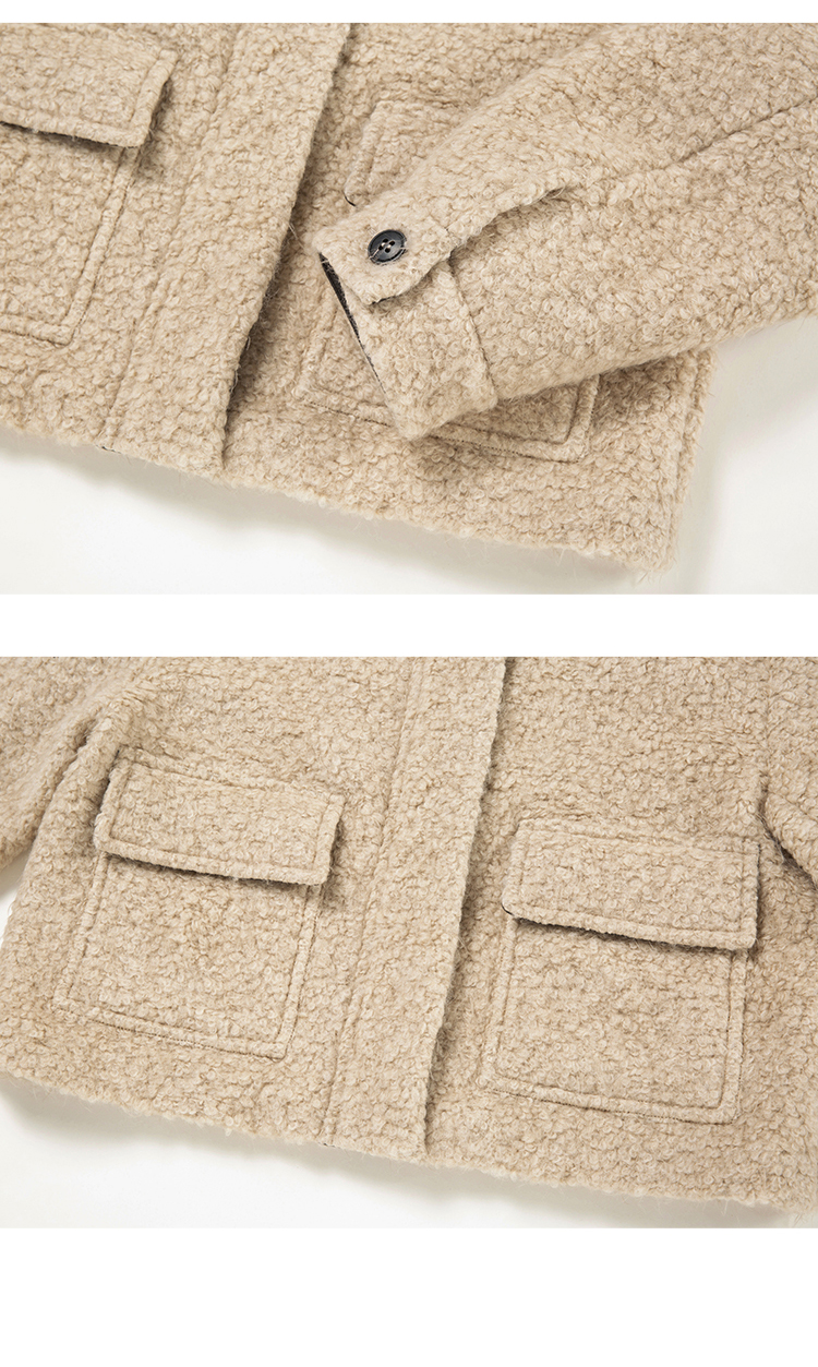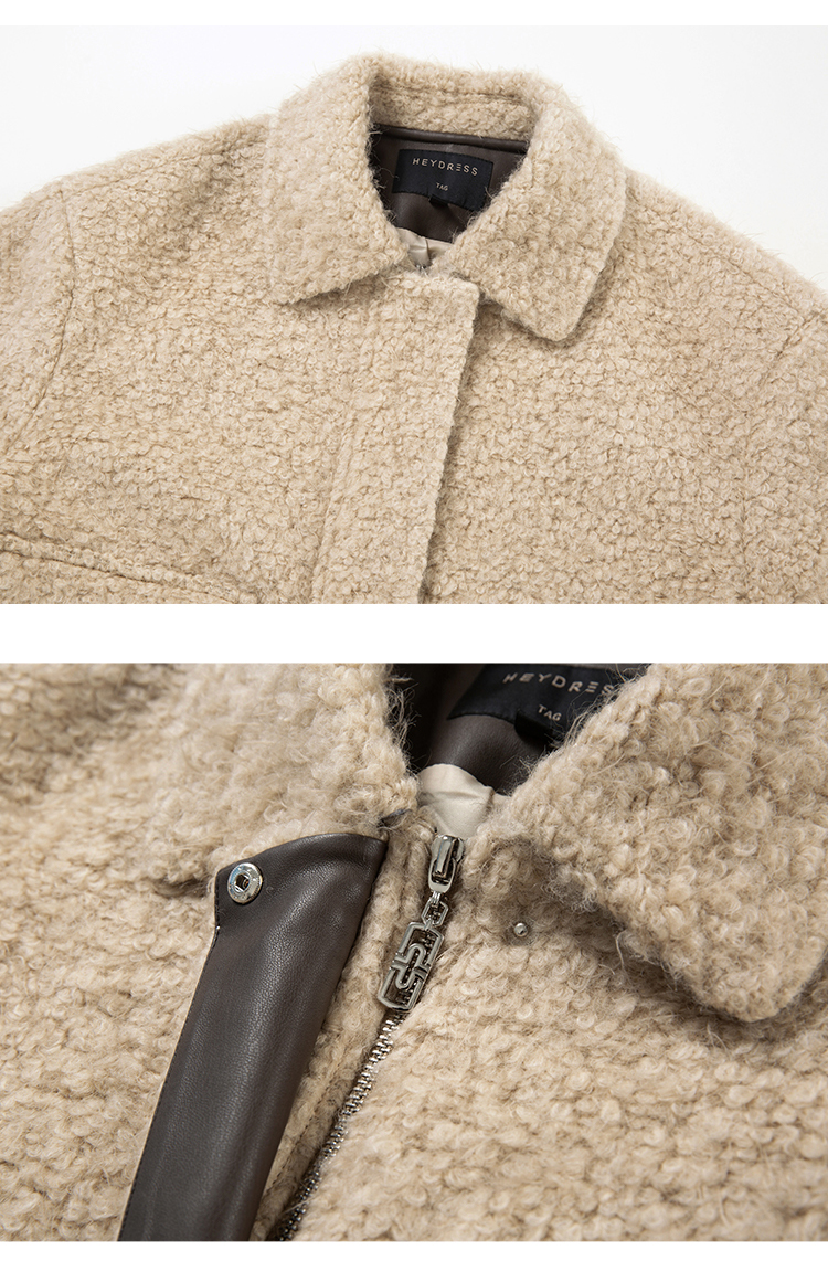 HeyDress圈圈呢毛呢外套女士秋冬法式翻领宽松小香风短款羊毛上衣