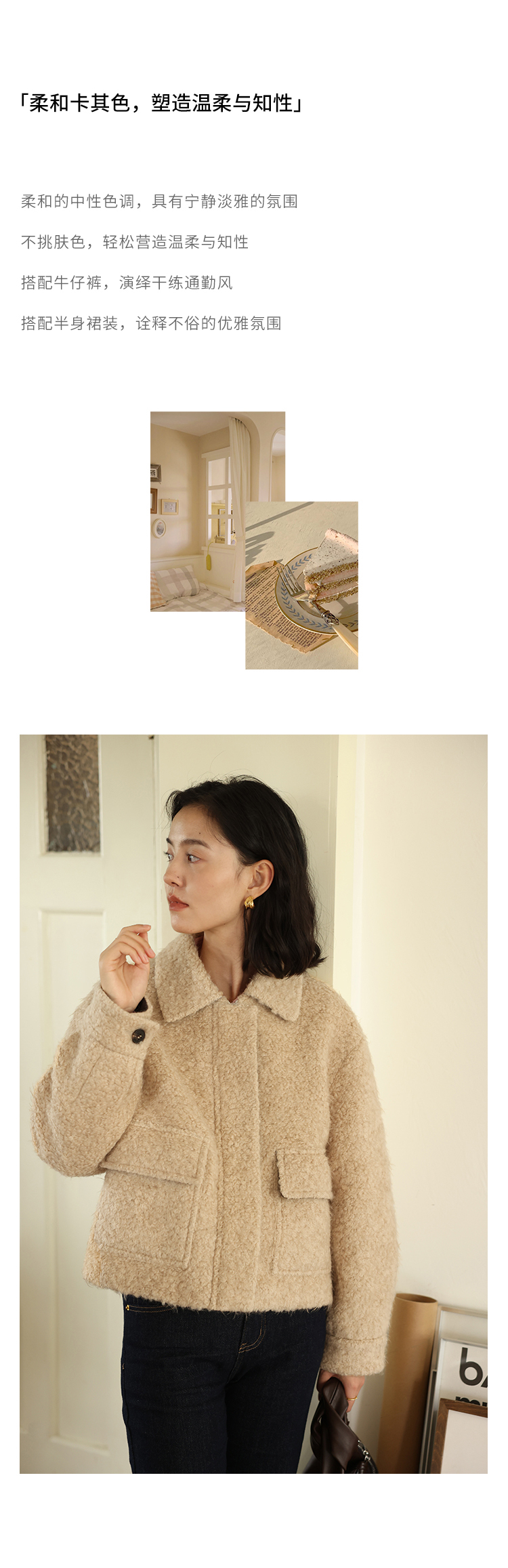 HeyDress巴恩风撞色翻领复古外套