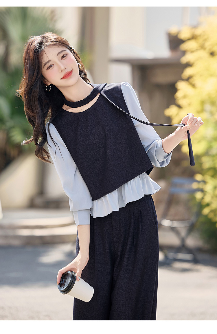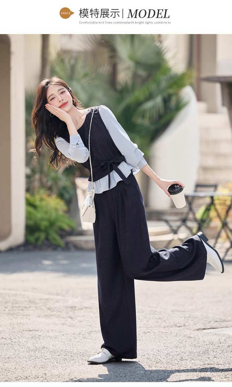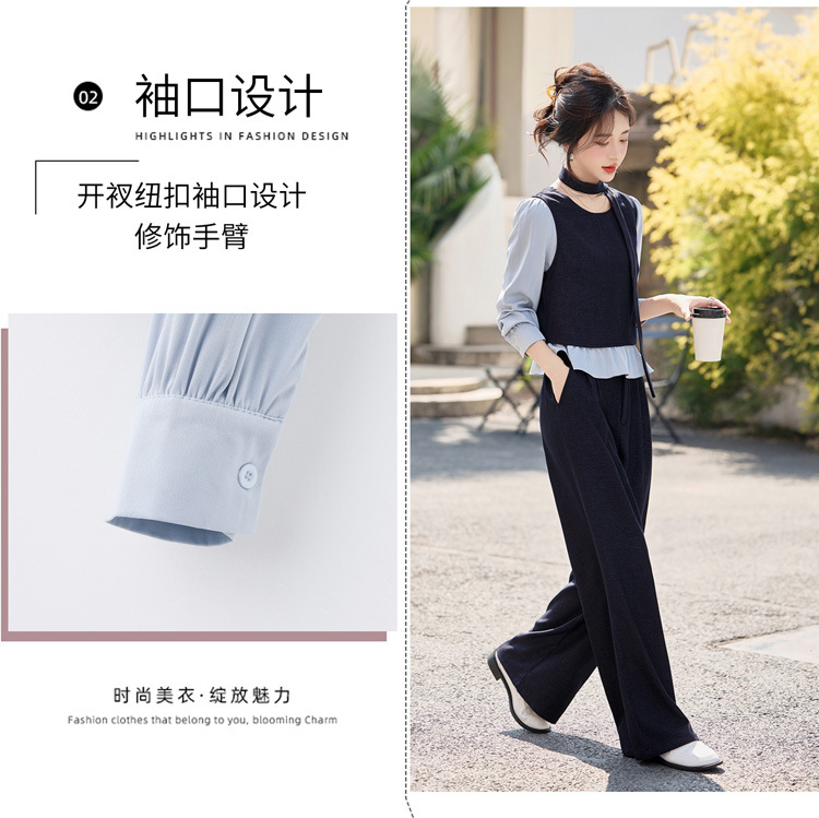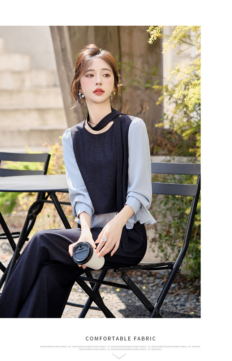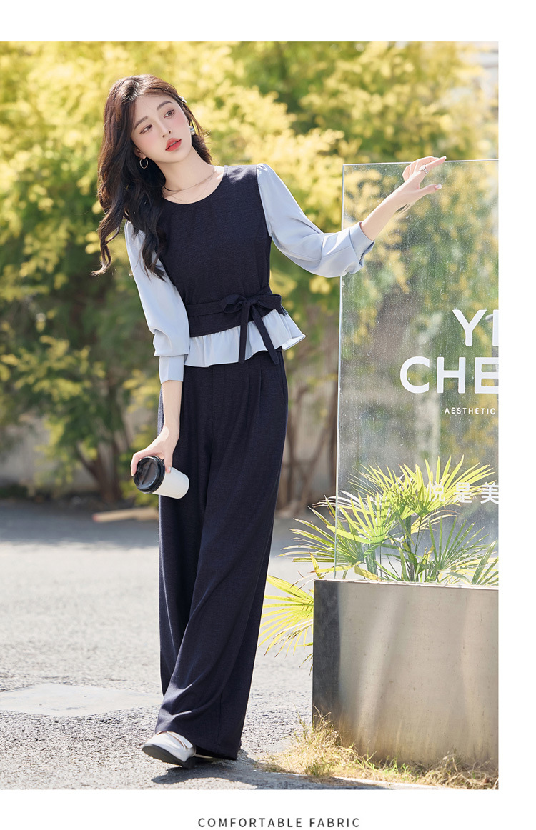 KX8505套装女2025秋季新款女装飘带拼接洋气衬衫阔腿裤两件套 商品图4