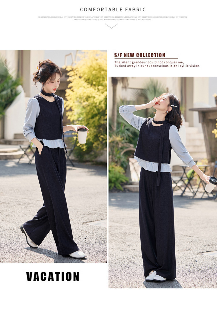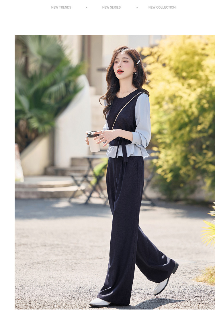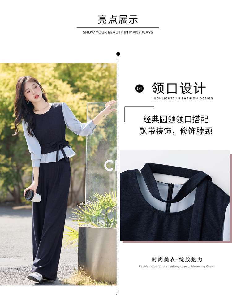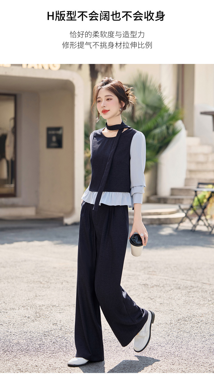 KX8505套装女2025秋季新款女装飘带拼接洋气衬衫阔腿裤两件套 商品图3