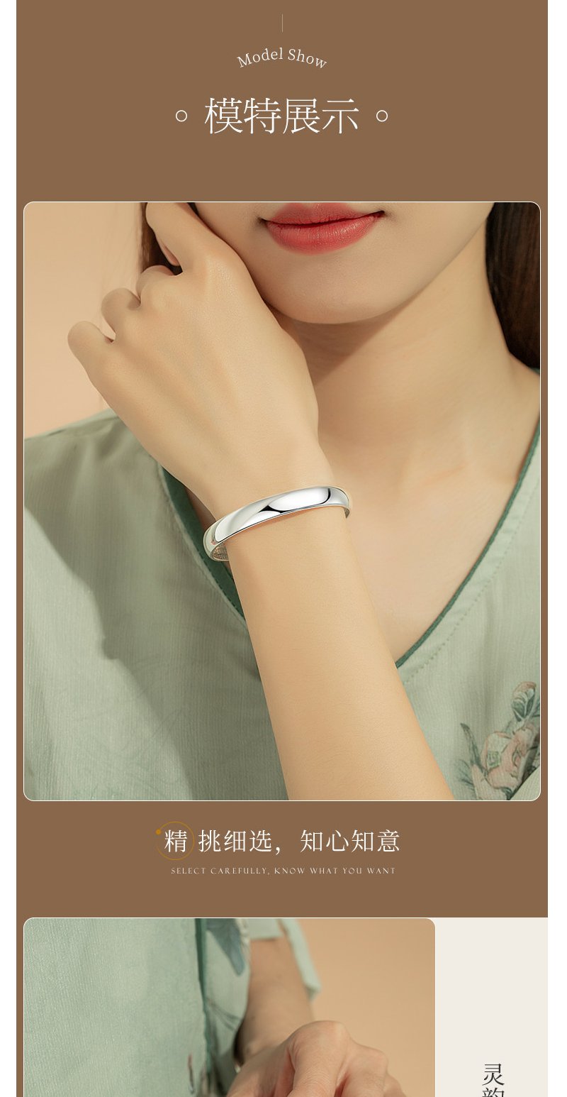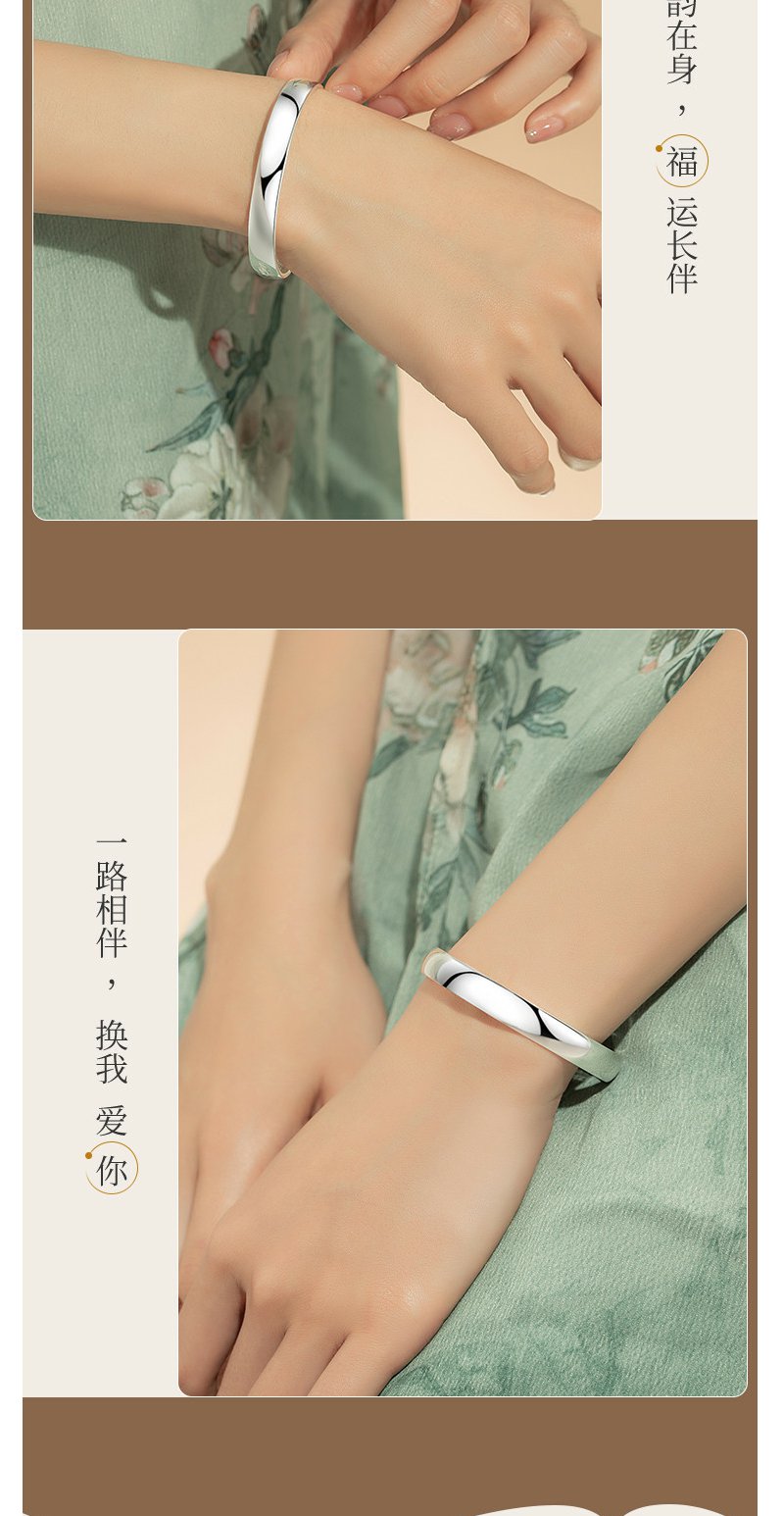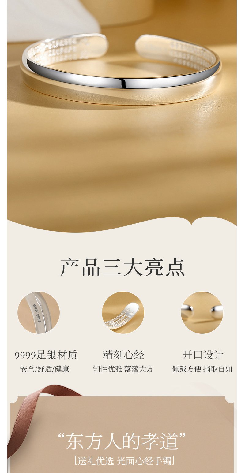 Winy9999足银光面心经手镯送女友闺蜜节日生日礼物