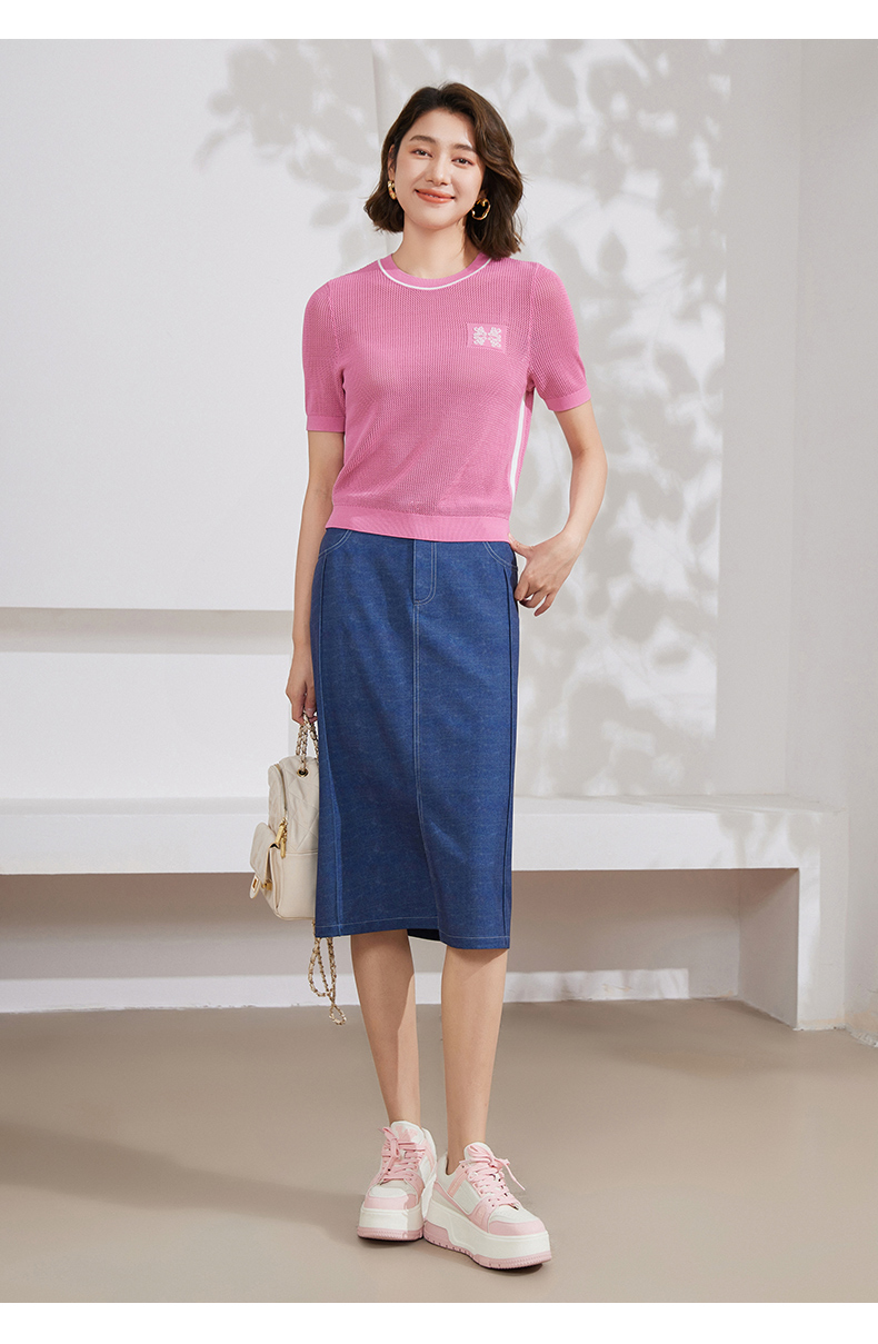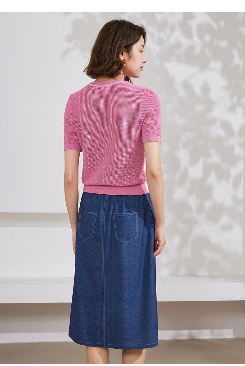 乔万尼冰丝针织衫女夏新款短袖薄款EM2M889