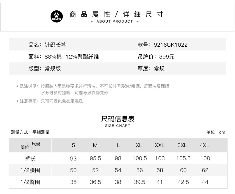 卡尔美 五福临门2023春季新款收口潮流针织长裤运动休闲裤男