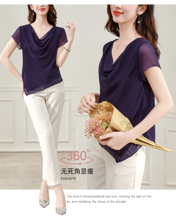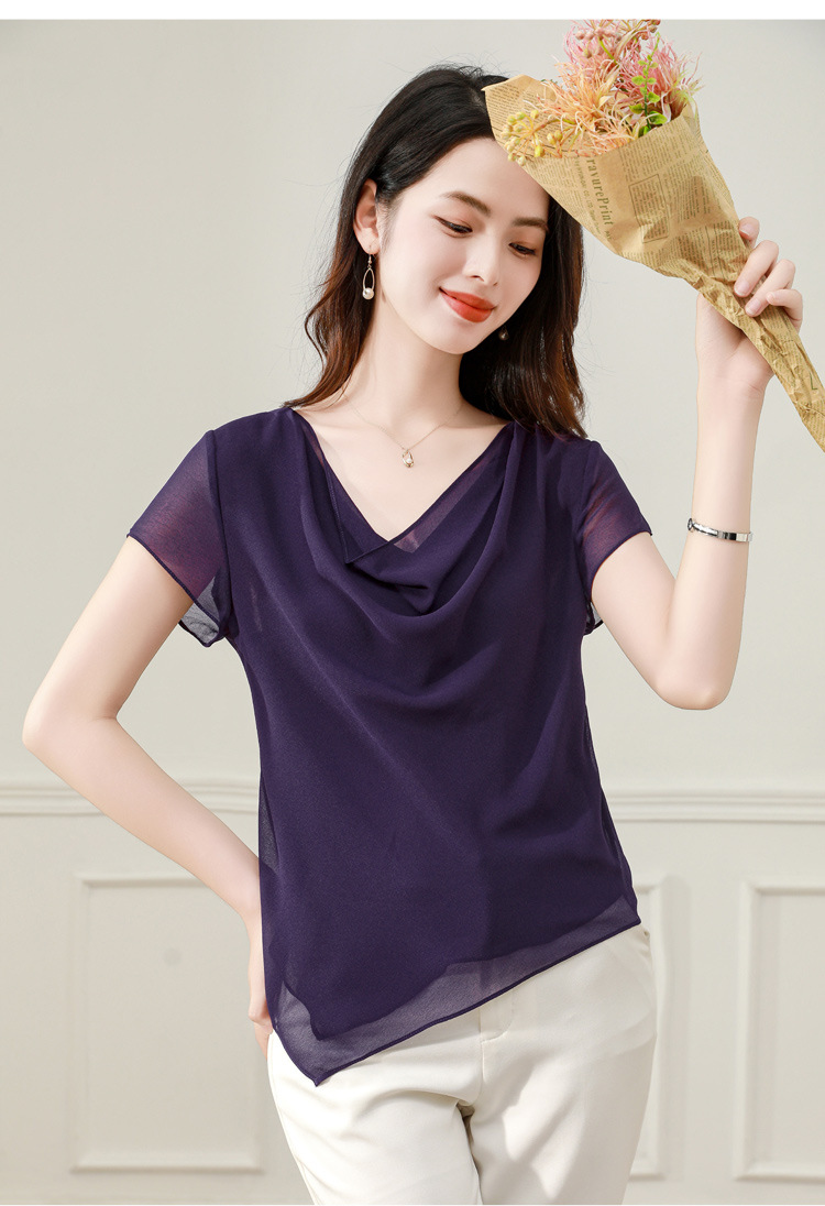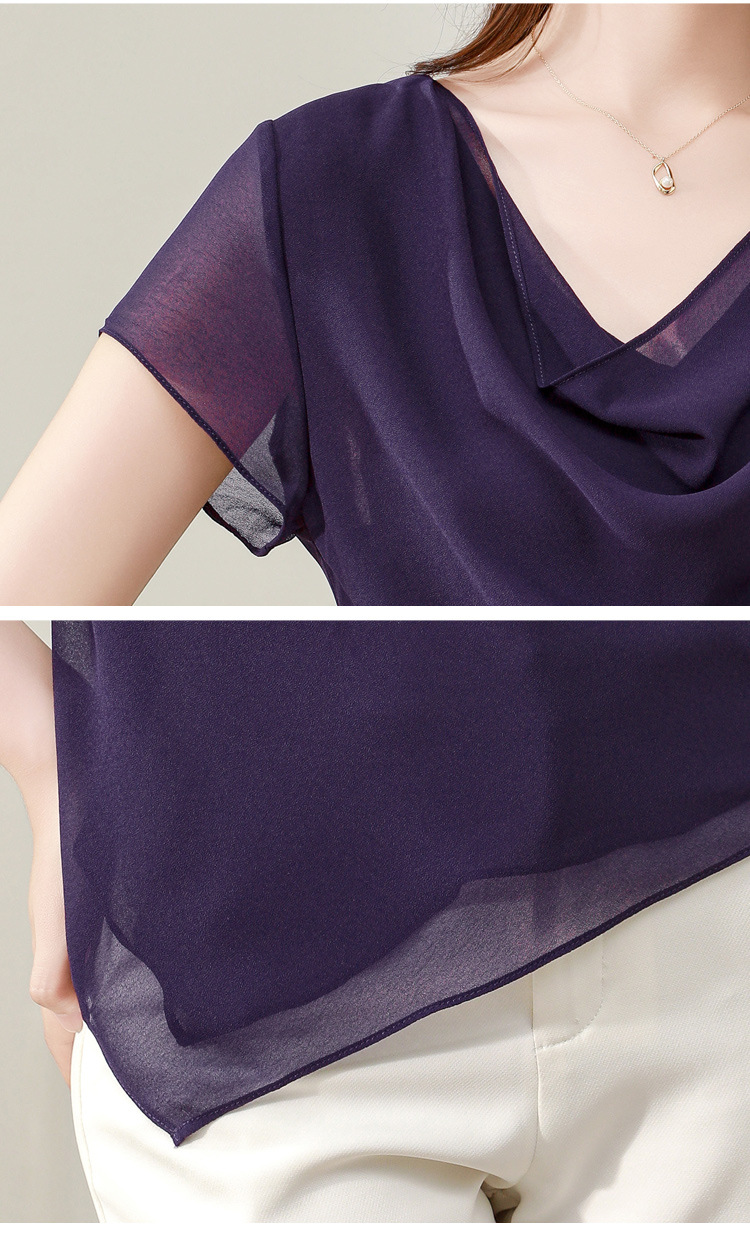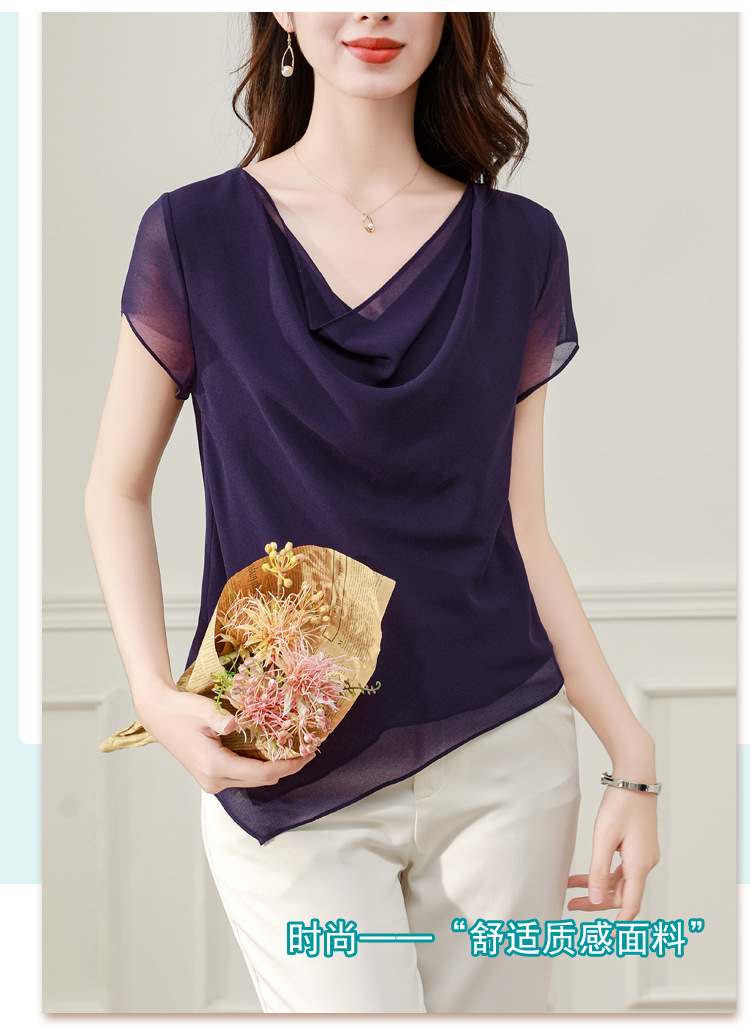 气质不规则紫色百搭显瘦,v领洋气小衫雪纺上衣KQL- B43N1897