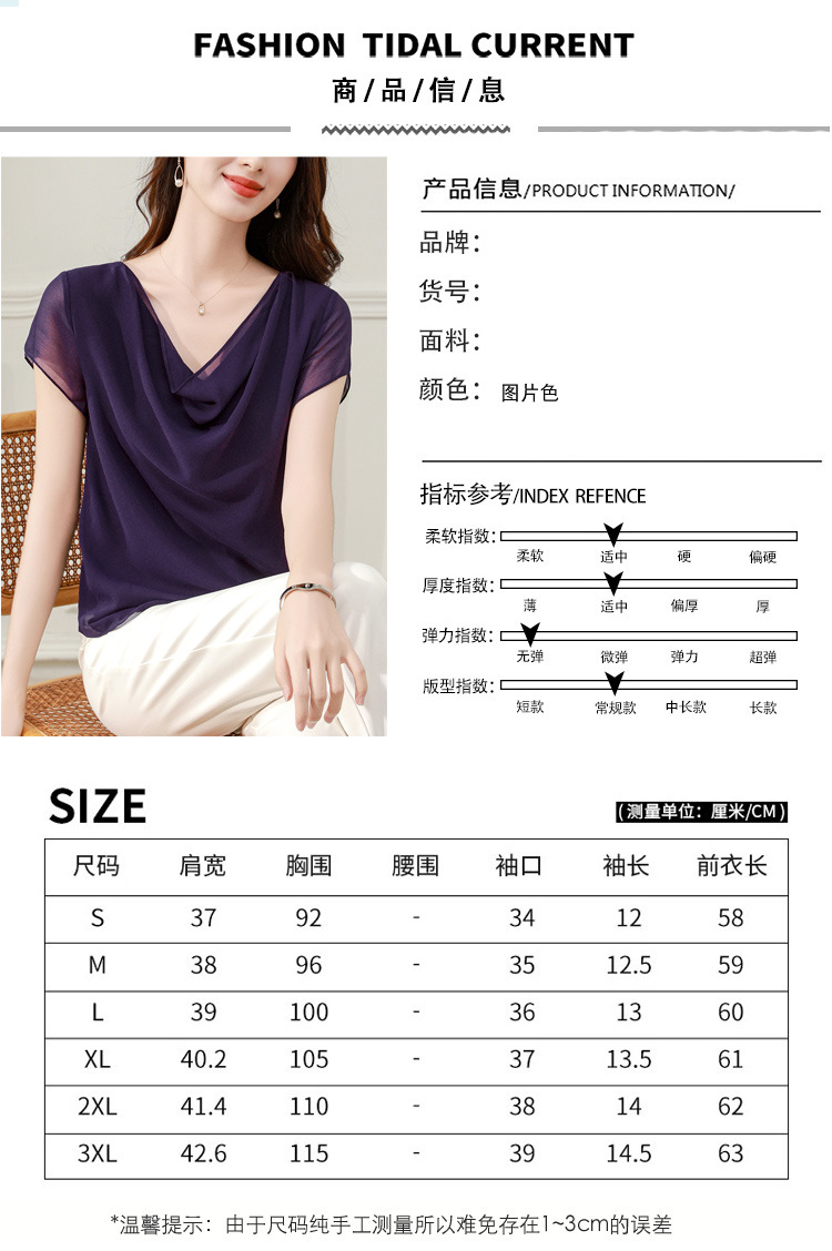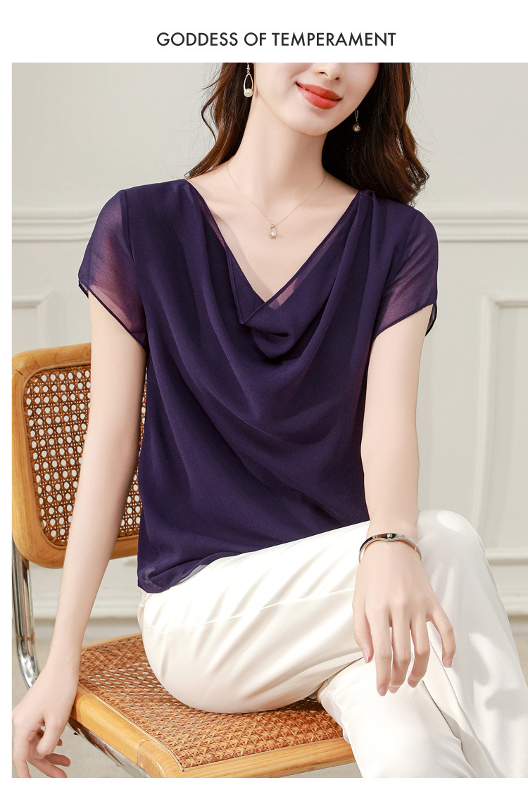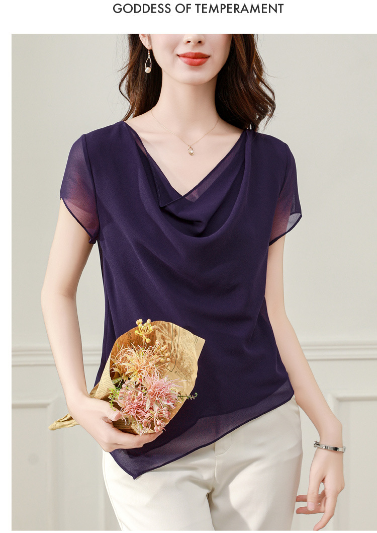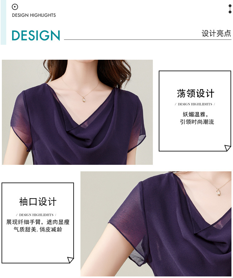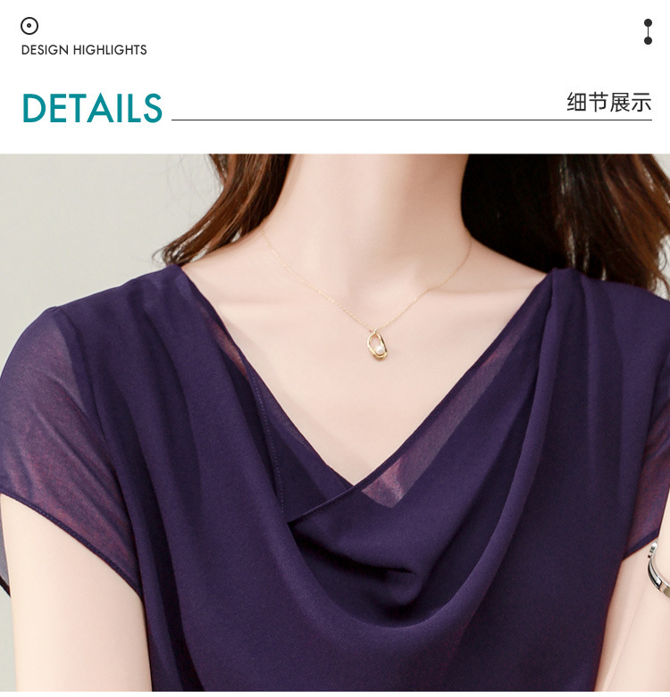 气质不规则紫色百搭显瘦,v领洋气小衫雪纺上衣KQL- B43N1897