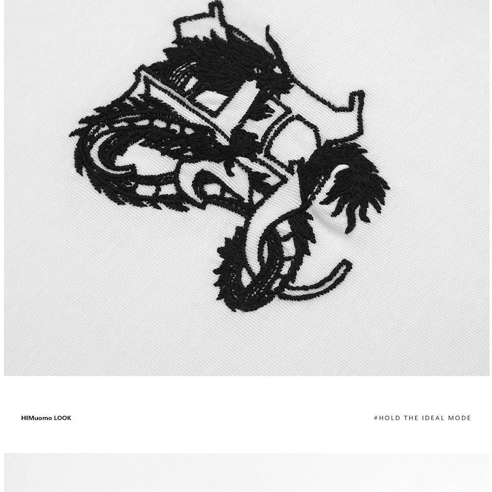 HIM漢崇 休闲撞色龙纹刺绣哥特工艺潮流国风圆领T恤男 2026夏季