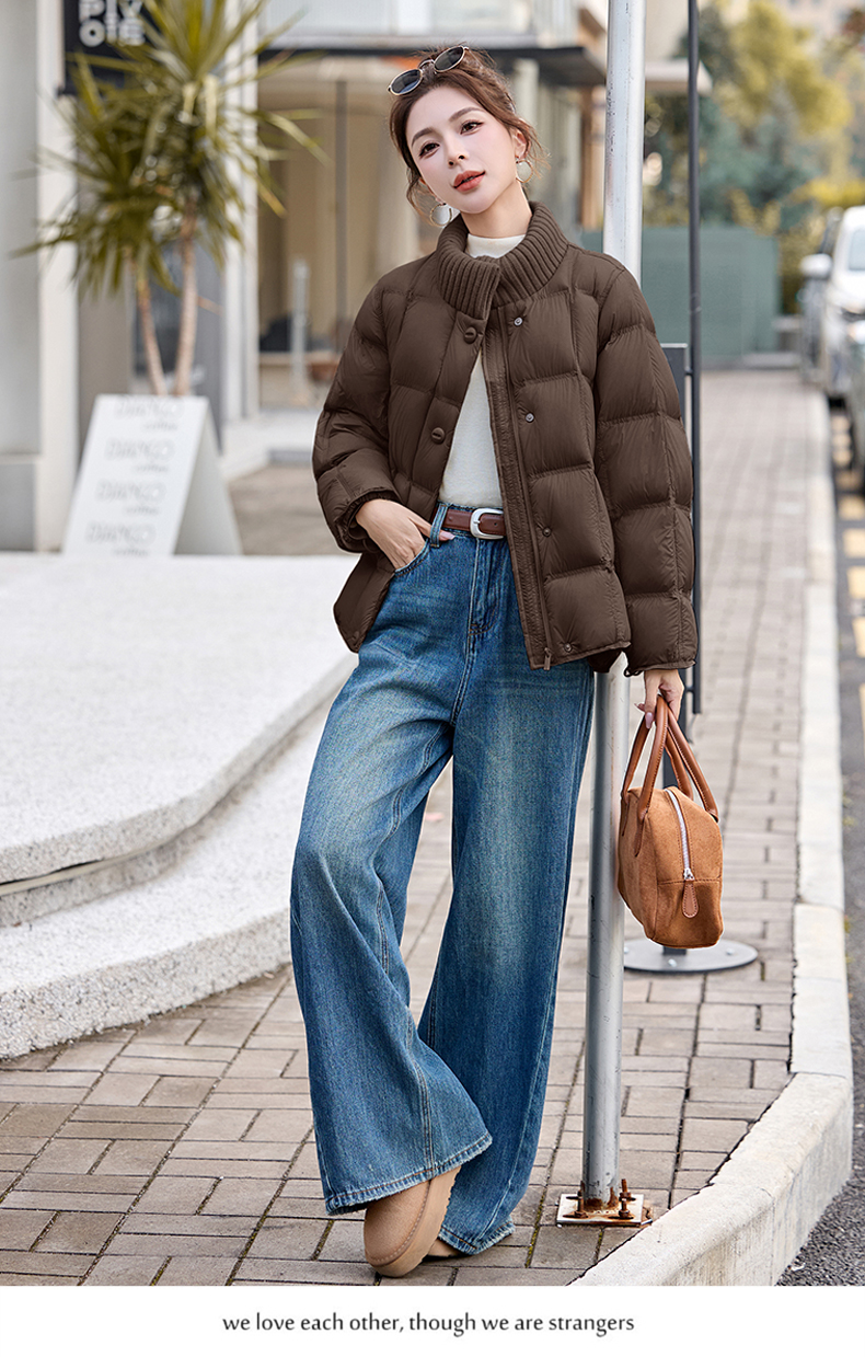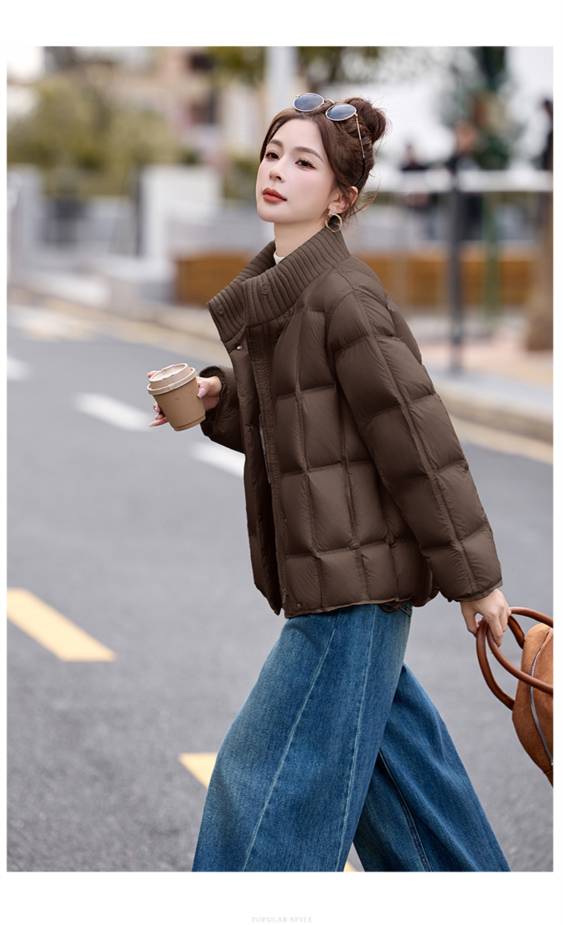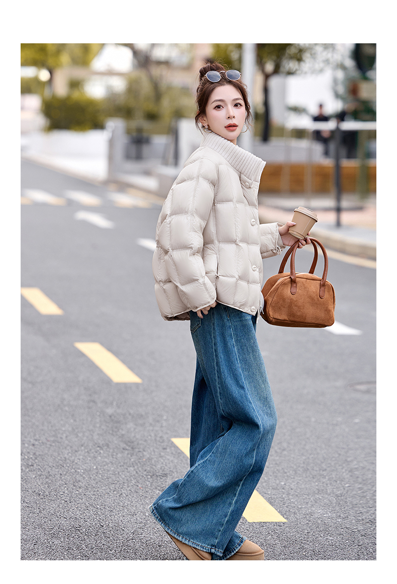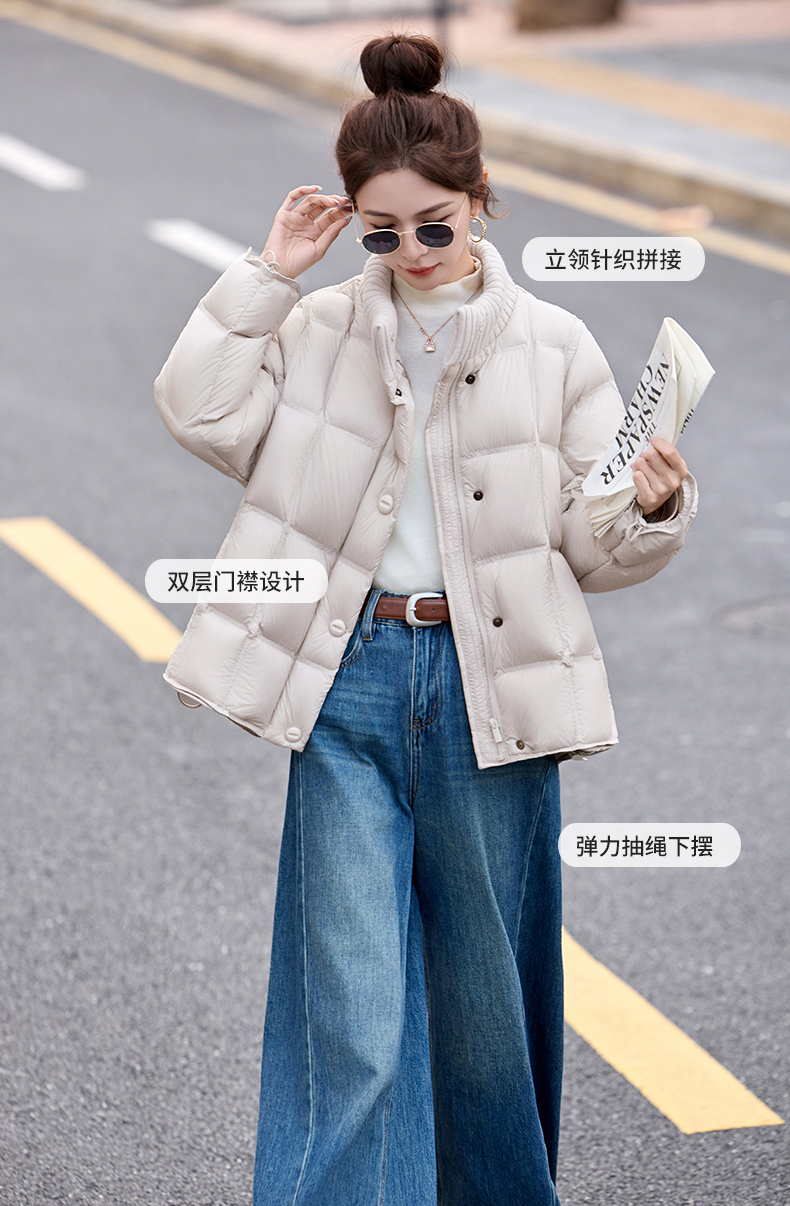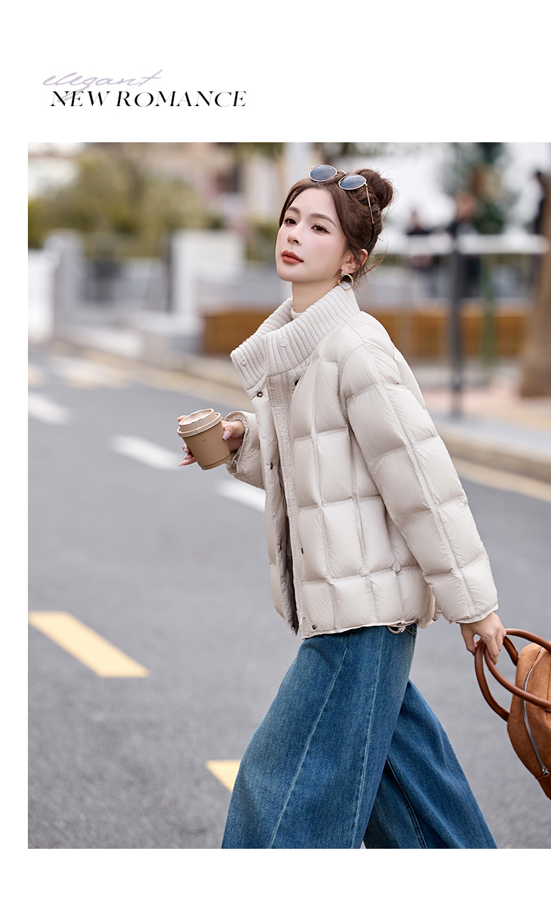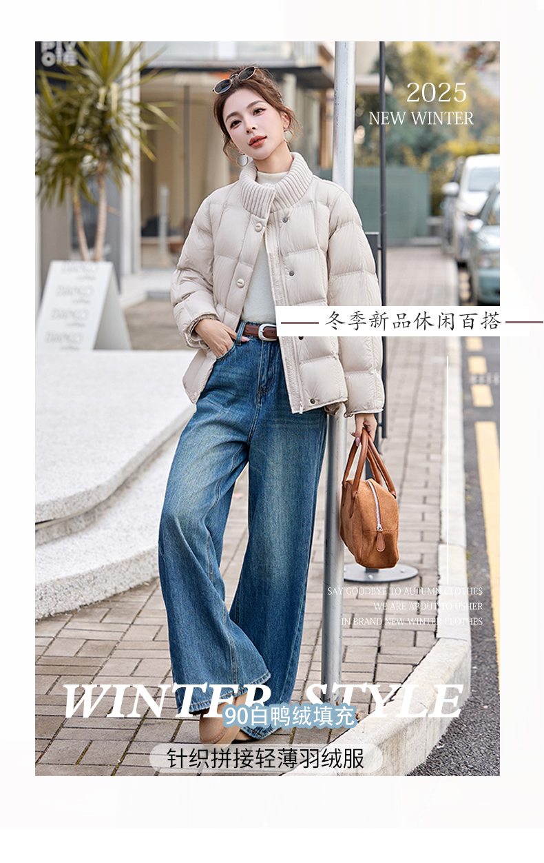 针织拼接轻薄羽绒服,显瘦保暖加厚外套时尚洋气HR-1085