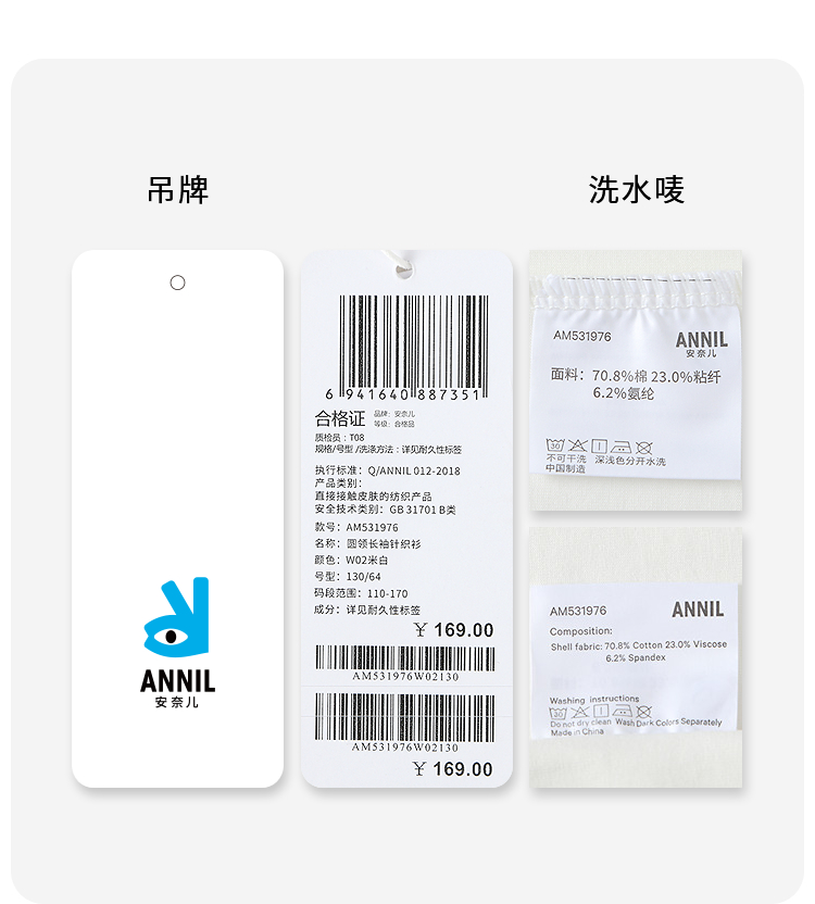 【实体店同款】男女童圆领长袖针织衫秋季新款安奈儿童装AM531976