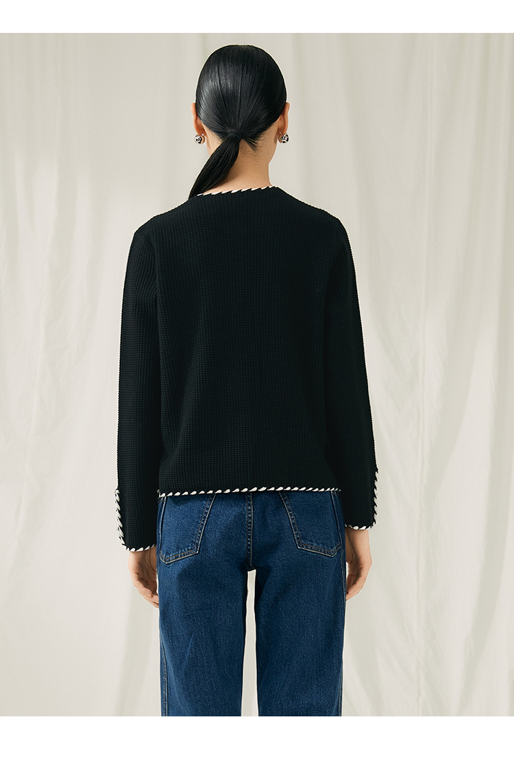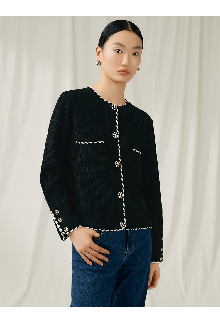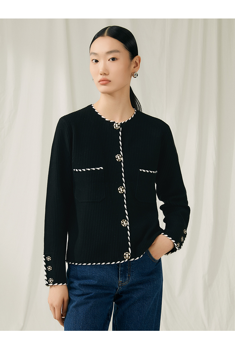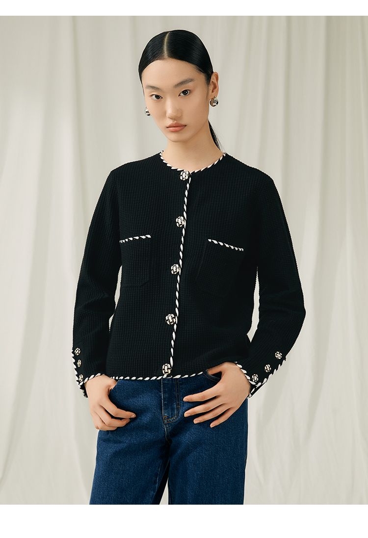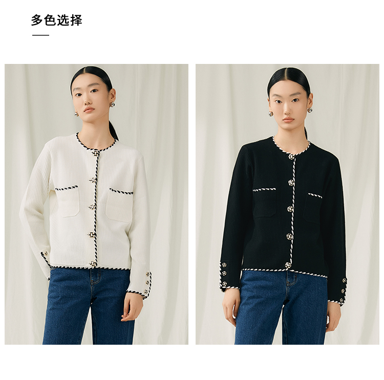 VIMAGE纬漫纪秋季新款撞色时尚通勤气质百搭针织开衫V1801426