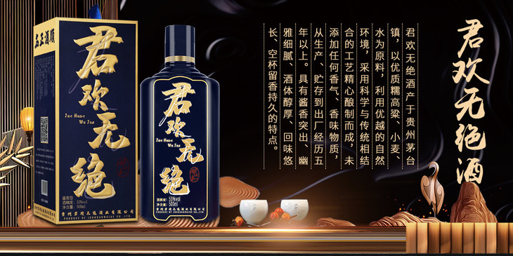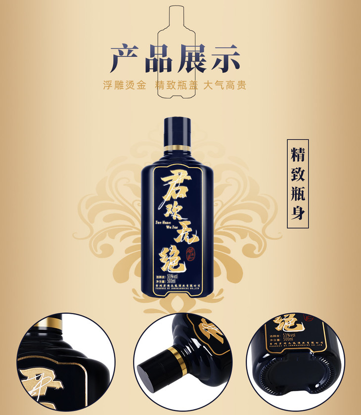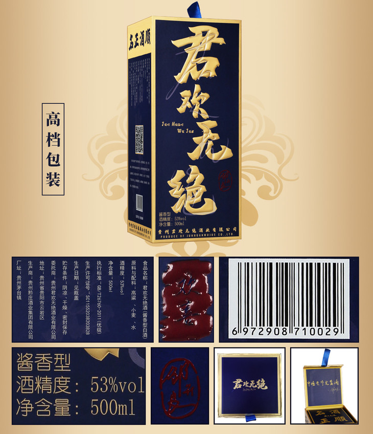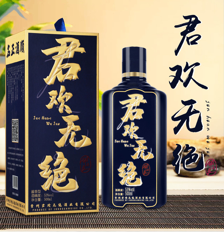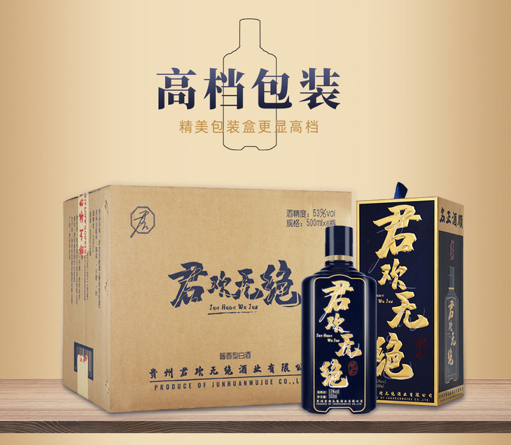 【推荐】贵州君欢无绝 53度 酱香型白酒 礼盒粮食酒水 500ml *6瓶 整箱装