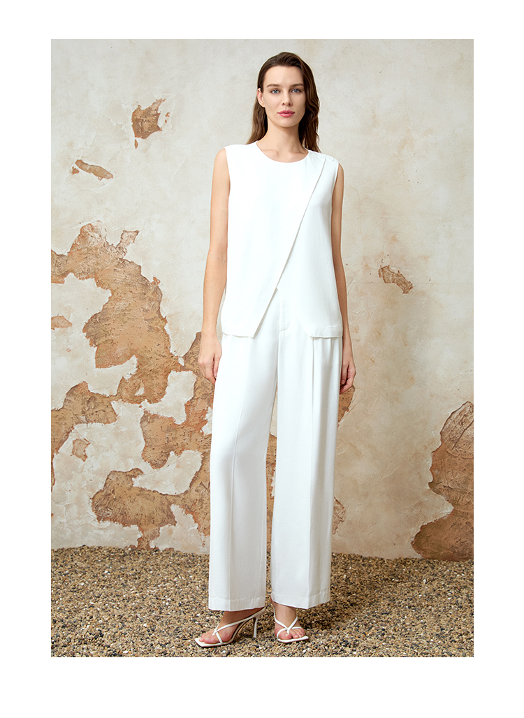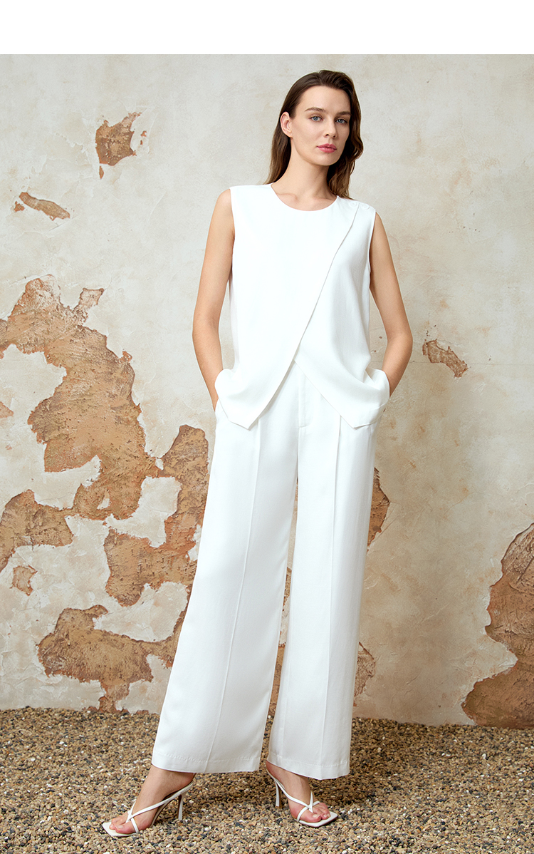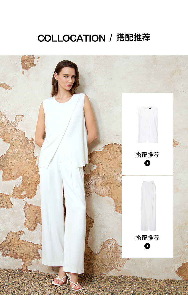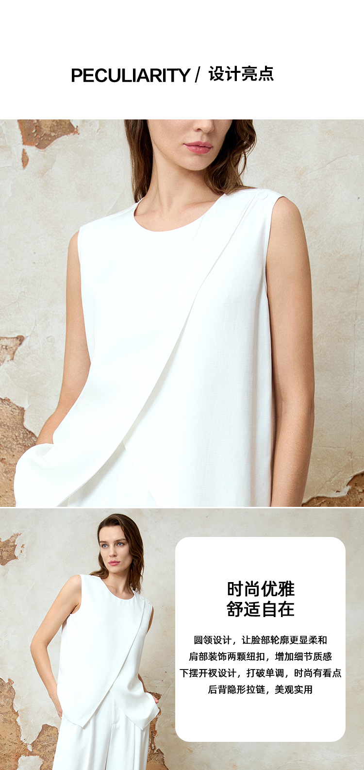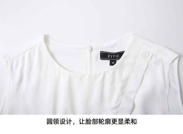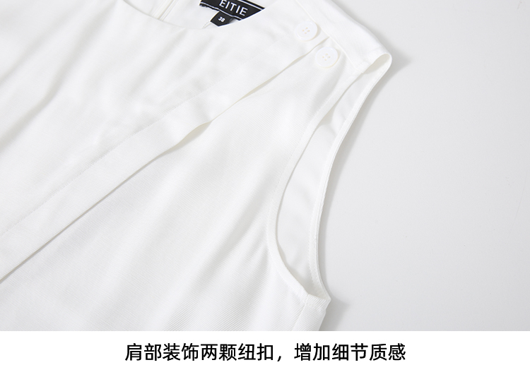 EITIE爱特爱夏季新款简约百搭无袖显瘦白色T恤上衣8213904