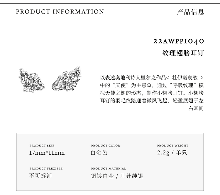 ATELIERSO 22AW翅膀系列 纹理翅膀耳钉
