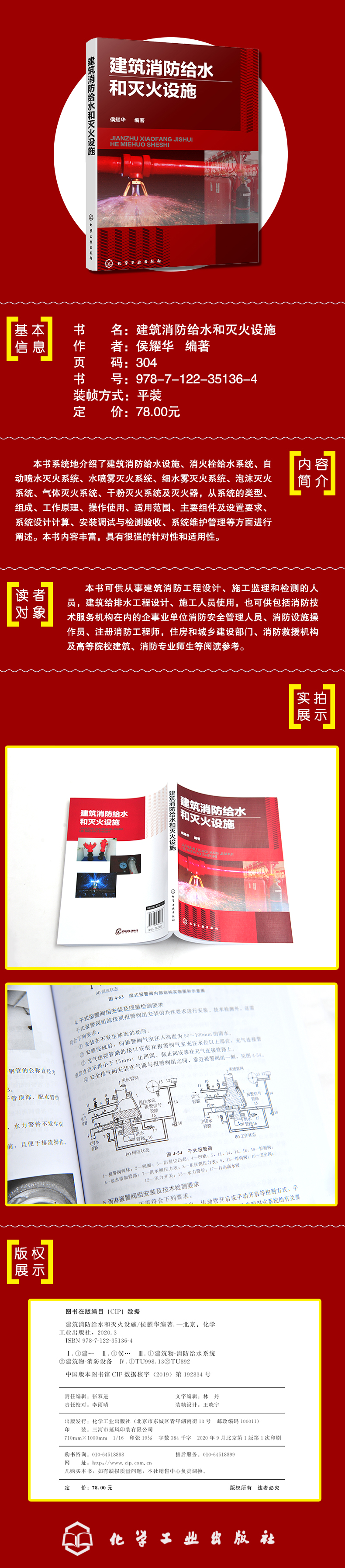 本书系统地介绍了建筑消防给水设施、消火栓给水系统、自动喷水灭火系统、水喷雾灭火系统、细水雾灭火系统、泡沫灭火系统、气体灭火系统、干粉灭火系统及灭火器,从系统的类型、组成、工作原理、操作使用、适用范围、主要组件及设置要求、系统设计计算、安装调试与检测验收、系统维护管理等方面进行阐述。本书内容丰富,具有很强的针对性和适用性。 本书可供从事建筑消防工程设计、施工监理和检测的人员,建筑给排水工程设计、施工人员使用,也可供包括消防技术服务机构在内的企事业单位消防安全管理人员、消防设施操作员、注册消防工程师,住房和城乡建设部门、消防救援机构及高等院校建筑、消防专业师生等阅读参考。