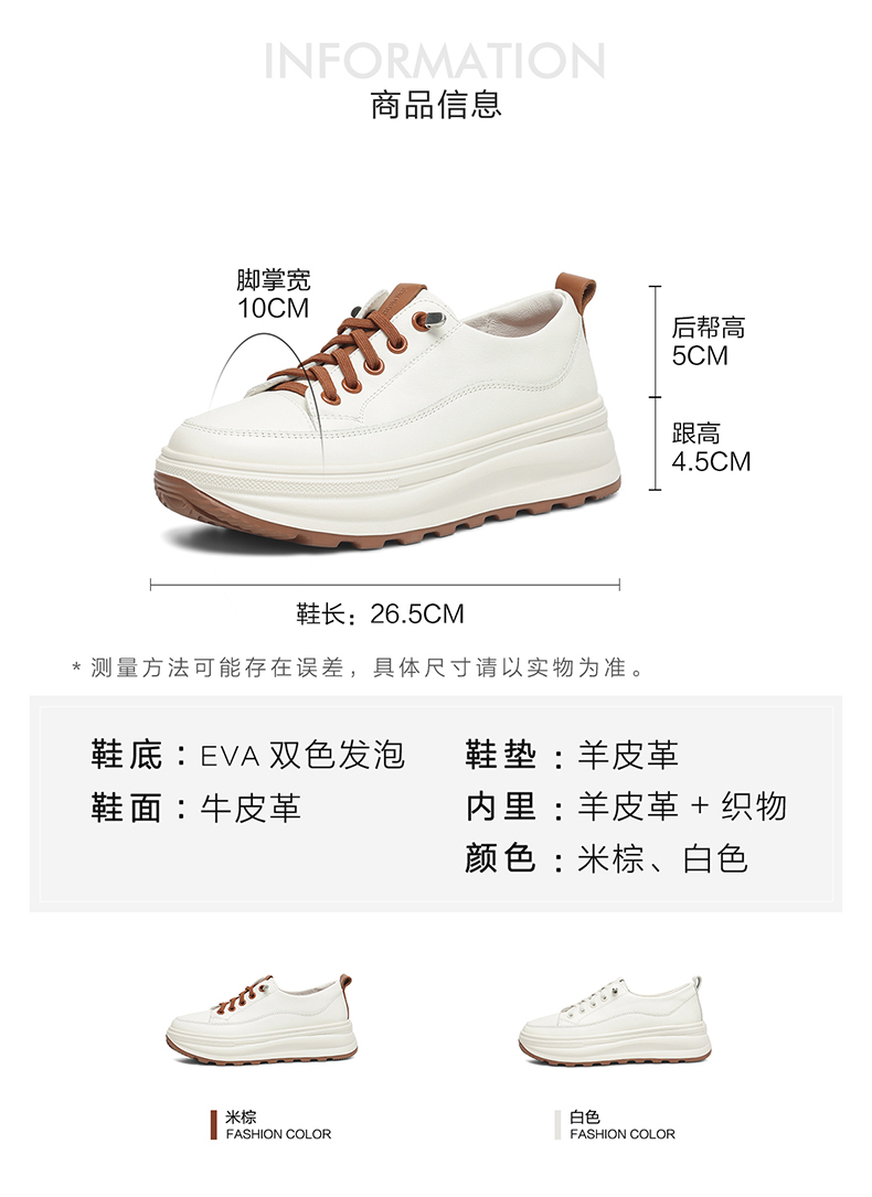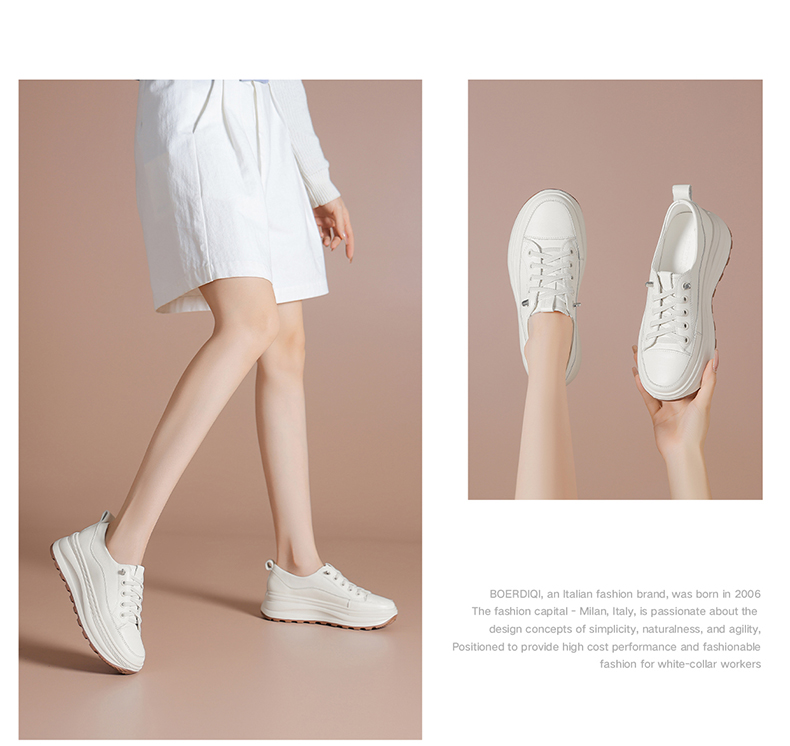 利落简约牛皮鞋面小白鞋,羊皮鞋垫告别闷热潮湿,纵享绵弹柔软,舒适厚底拉长腿型,稳固增高又显瘦,空气感双色发泡大底 785032