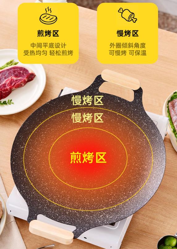 麦饭石烤盘还具有不粘性能,让你在烹饪过程中不用担心食物粘在烤盘上,清洗也更加方便。无论是煎鸡蛋、煎牛排还是烤鱼,都能轻松应对,让你的烹饪过程更加愉快。