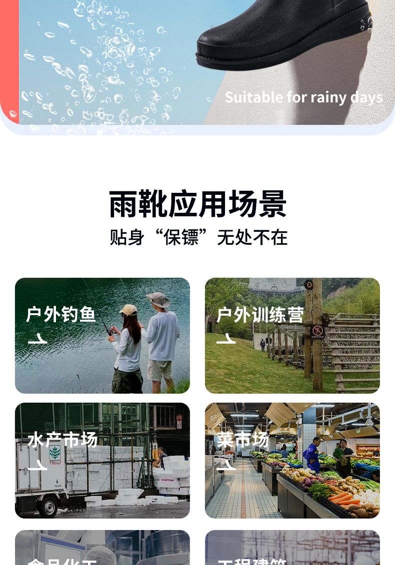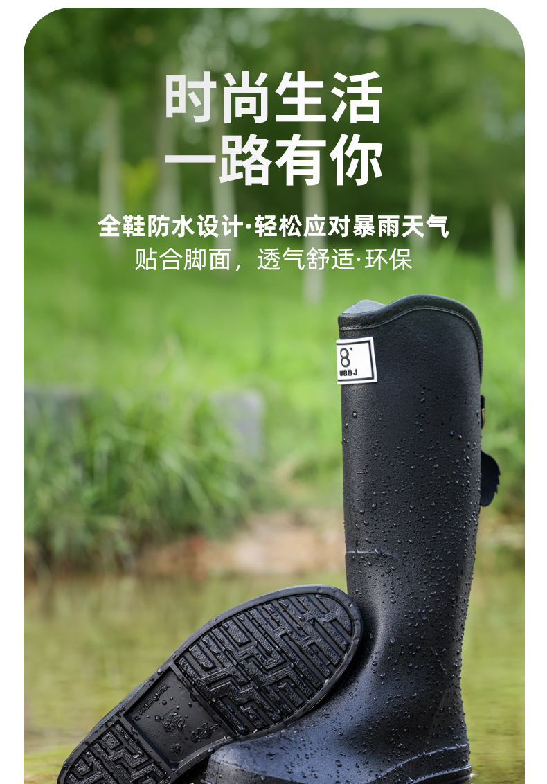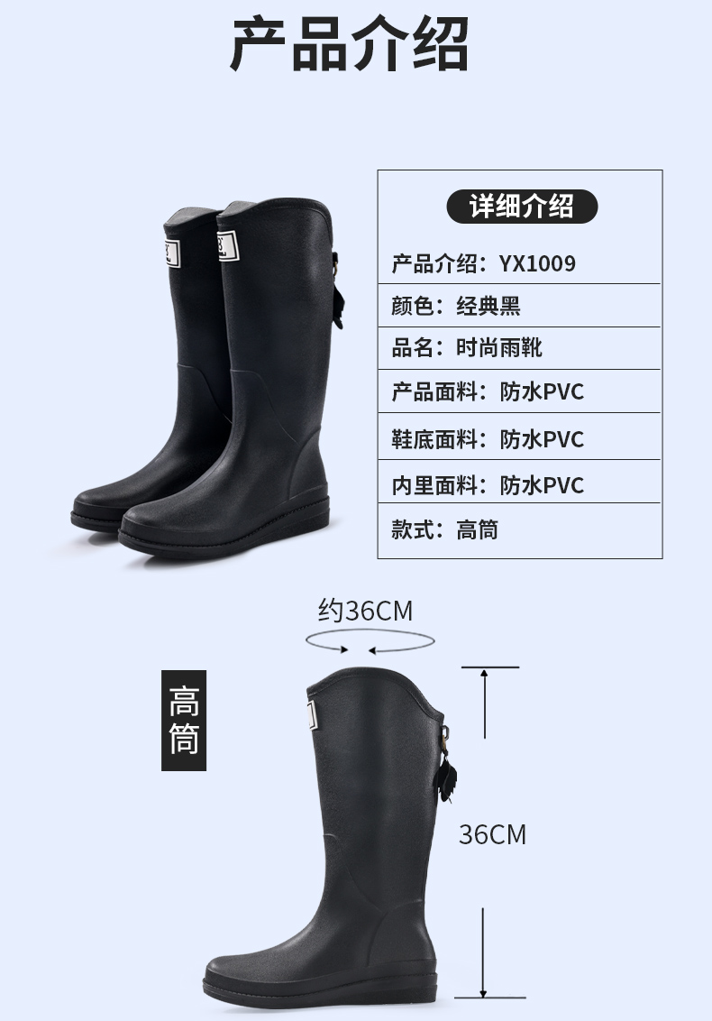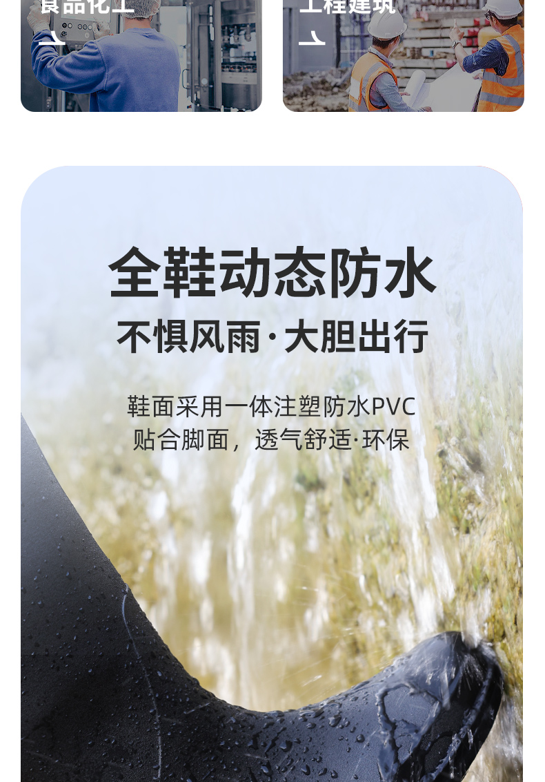 雨靴动态防水靴子PVC材质黑色四季款高帮