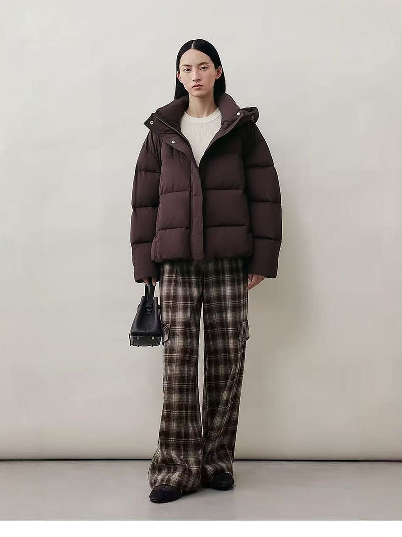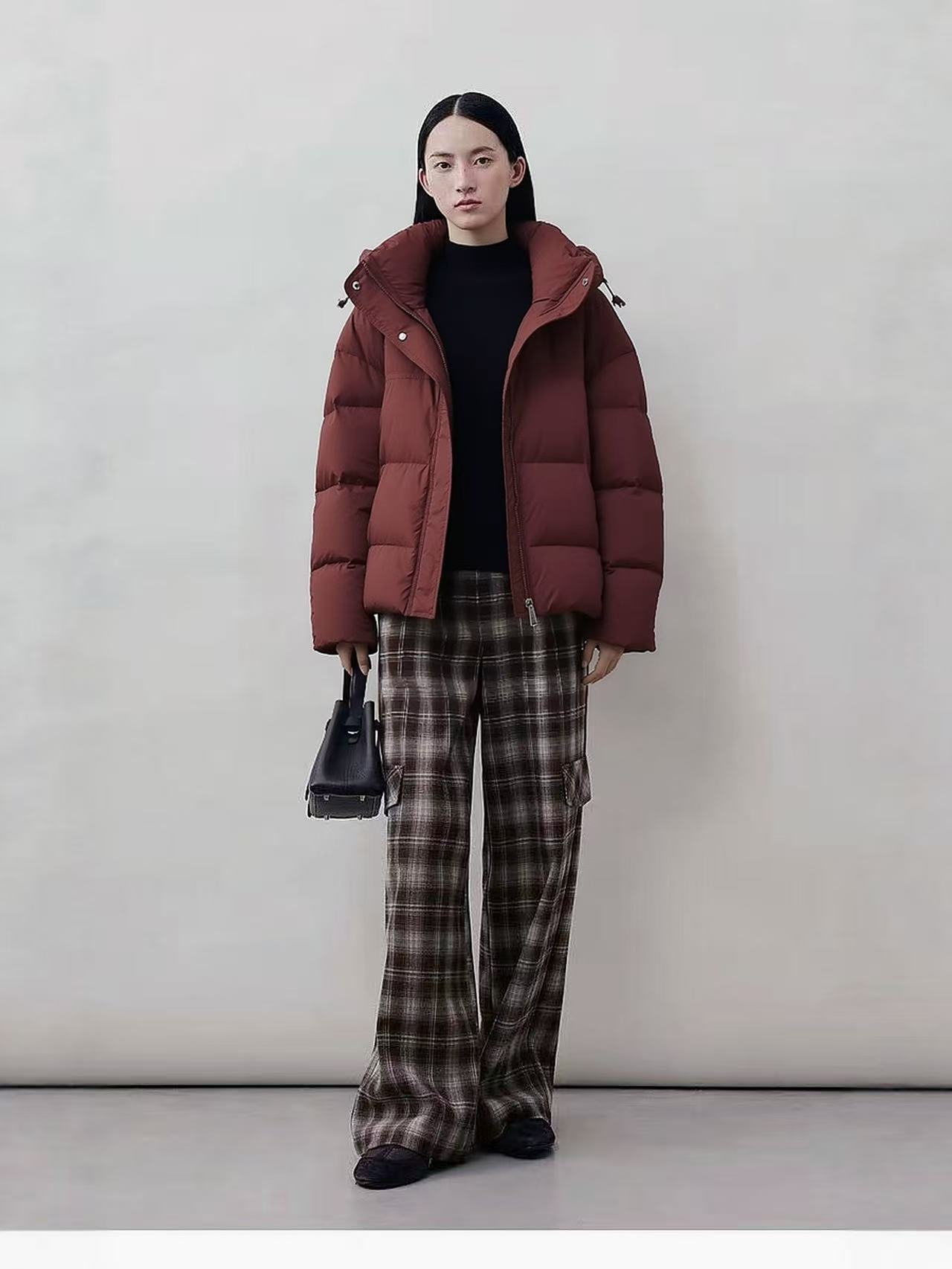 180g羽绒【卡汶品牌】连帽简约50%羽绒短款宽松羽绒服-喜出