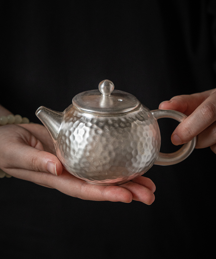 纯净柔和的银壶,能煮出“若绢水“,泡茶能去浊扬清,柔如丝绢。