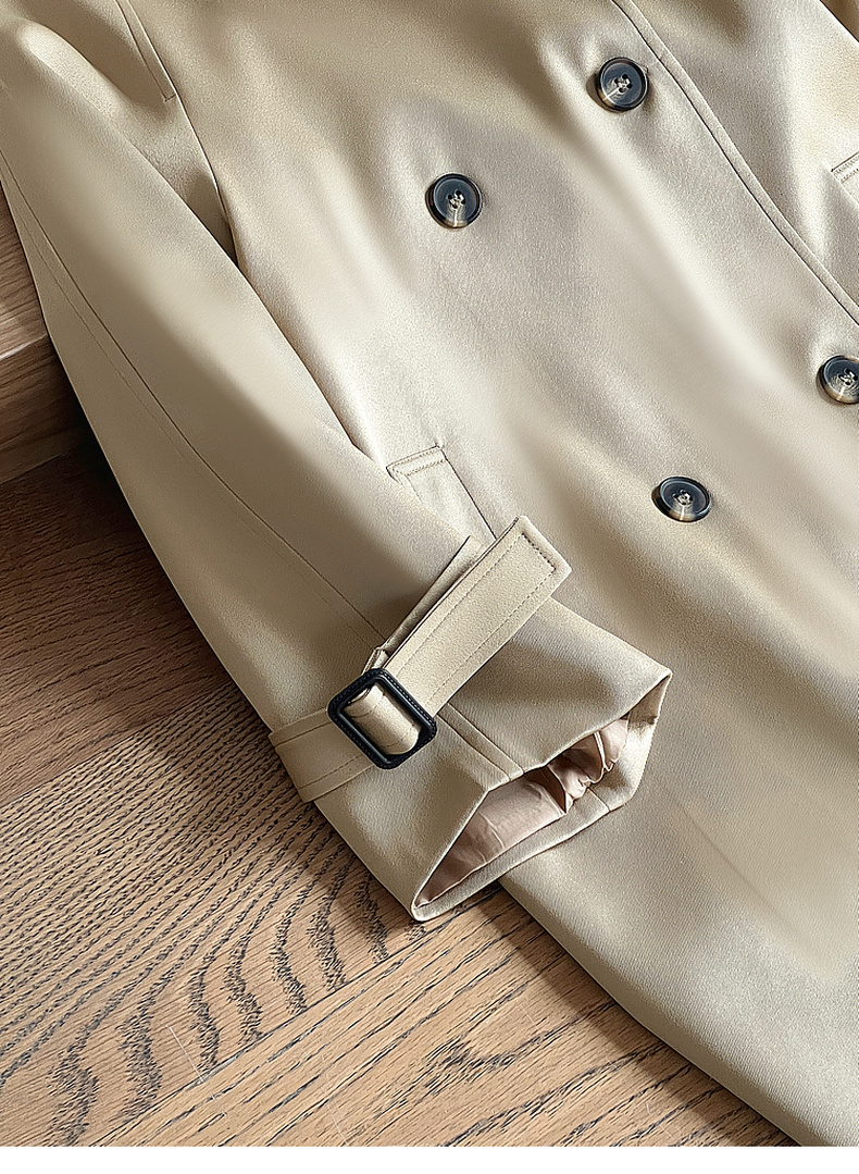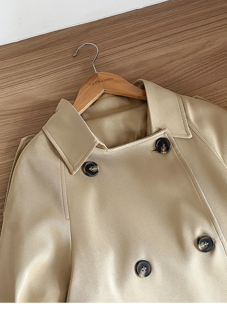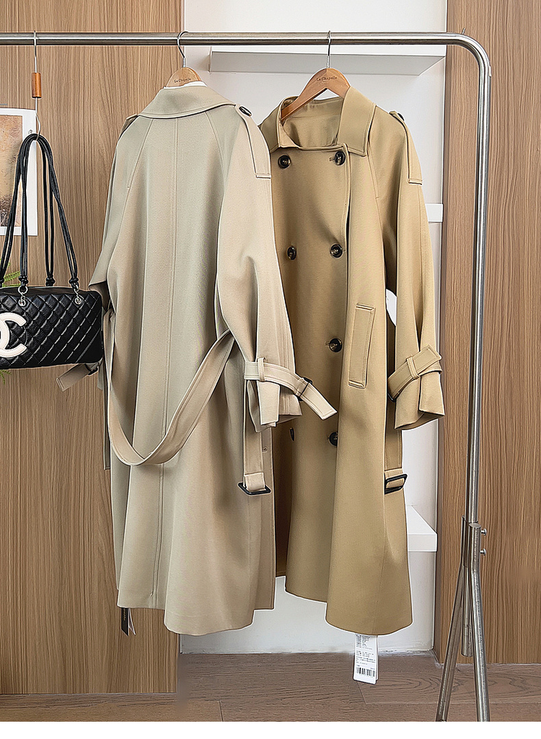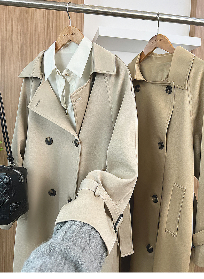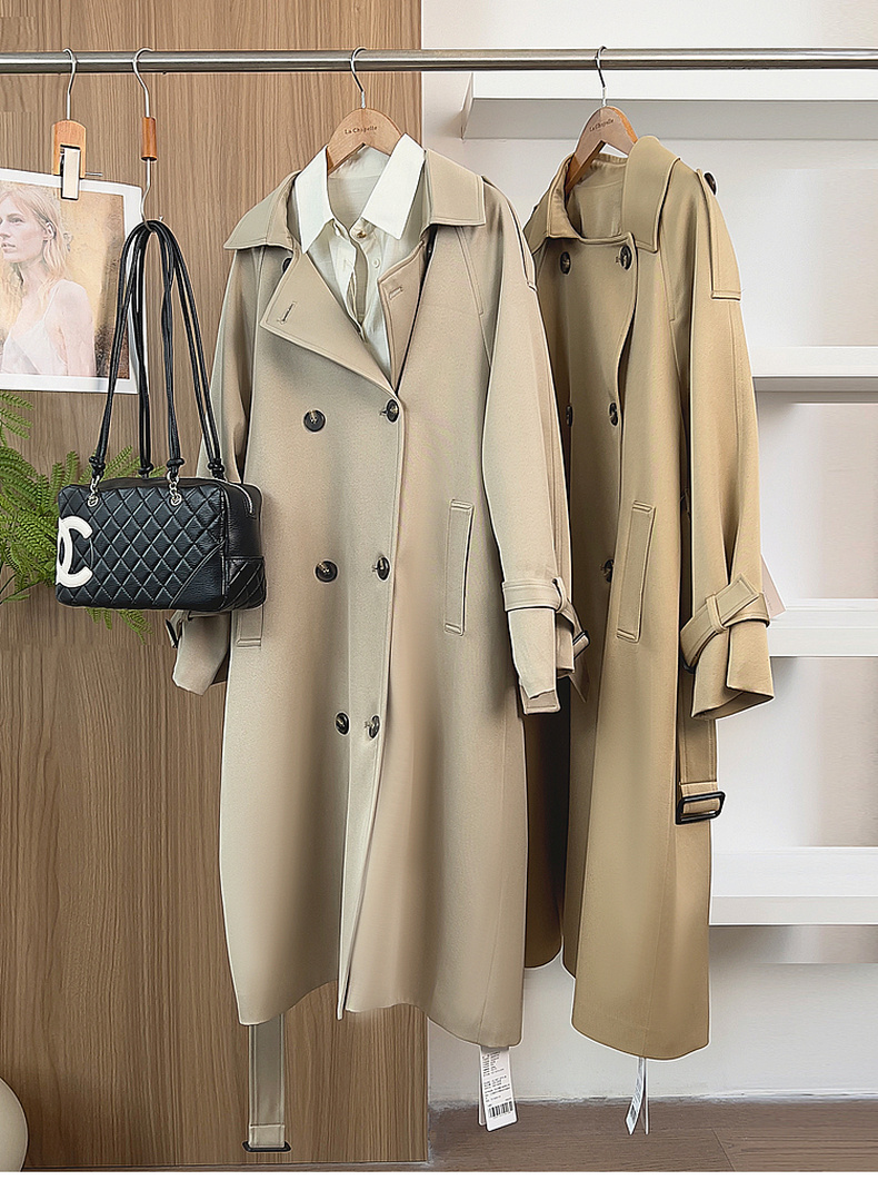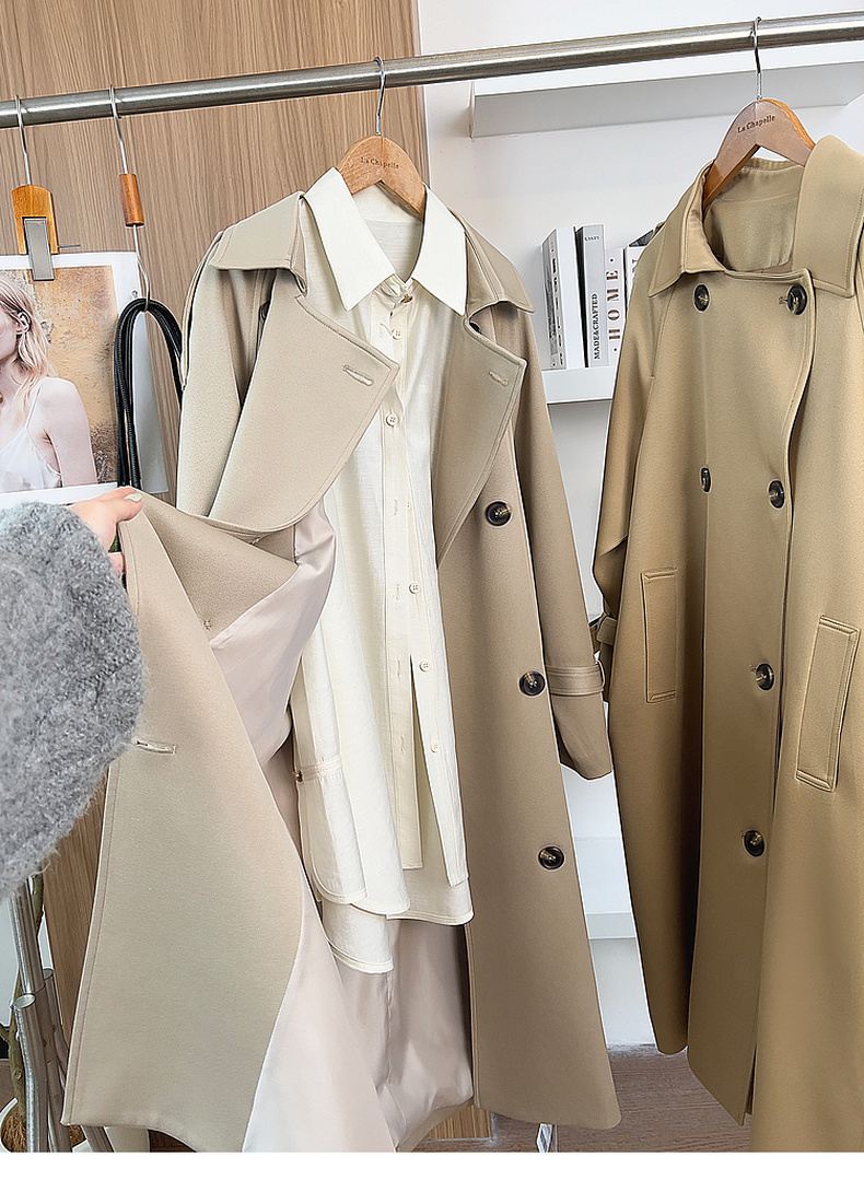 专柜实拍【极简大气!】拉夏贝尔/La Chapelle宽松廓形气质翻领双排扣轻奢高级感中长款过膝腰带风衣