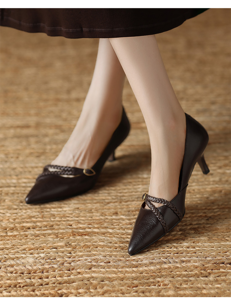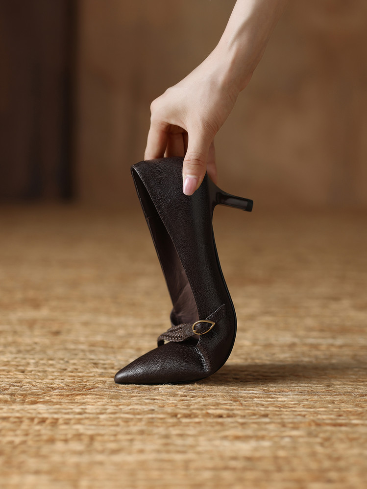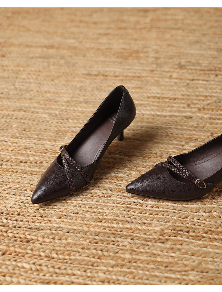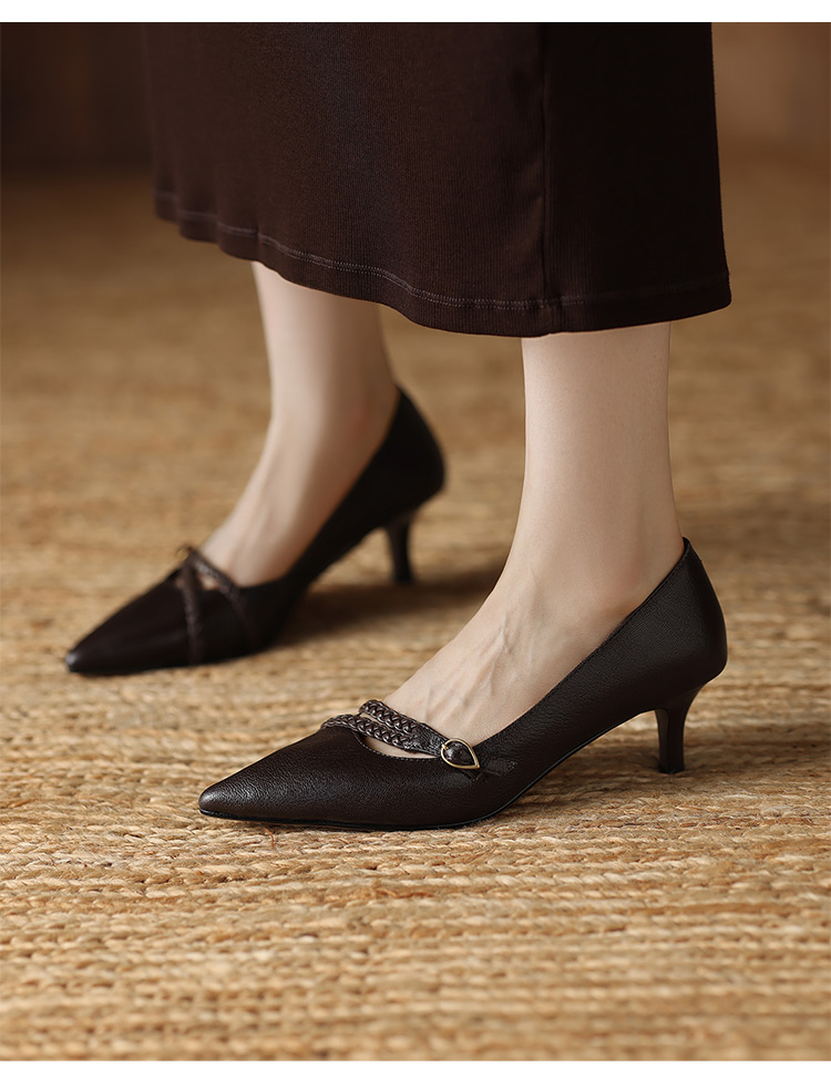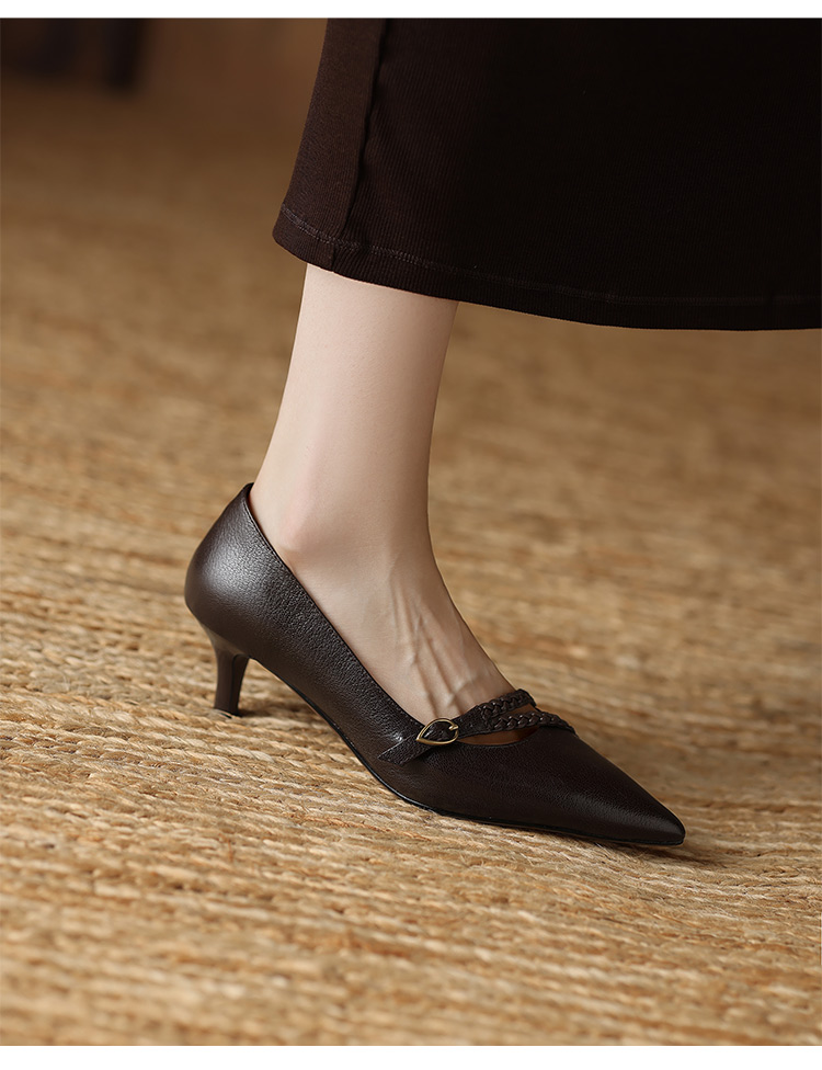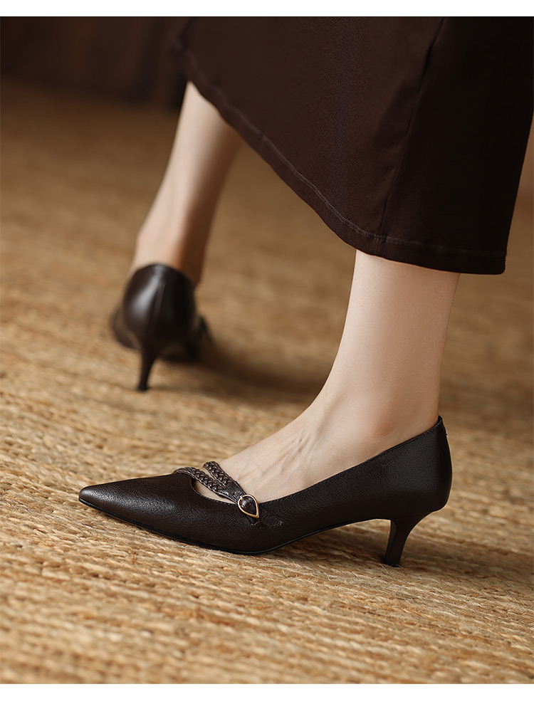 【货号】Jz-1923【帮面材质】头层羊皮【内里】头层猪皮【鞋垫】头层羊皮【鞋底】牛筋底【跟高】5厘米【颜色】黑色 棕色【尺码】34-39