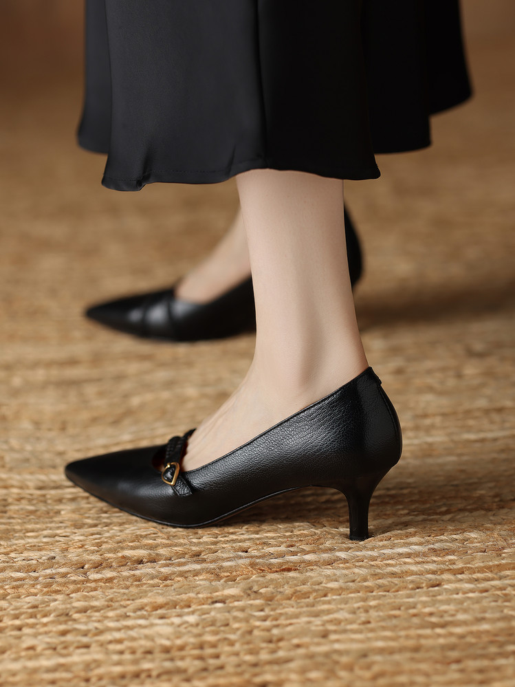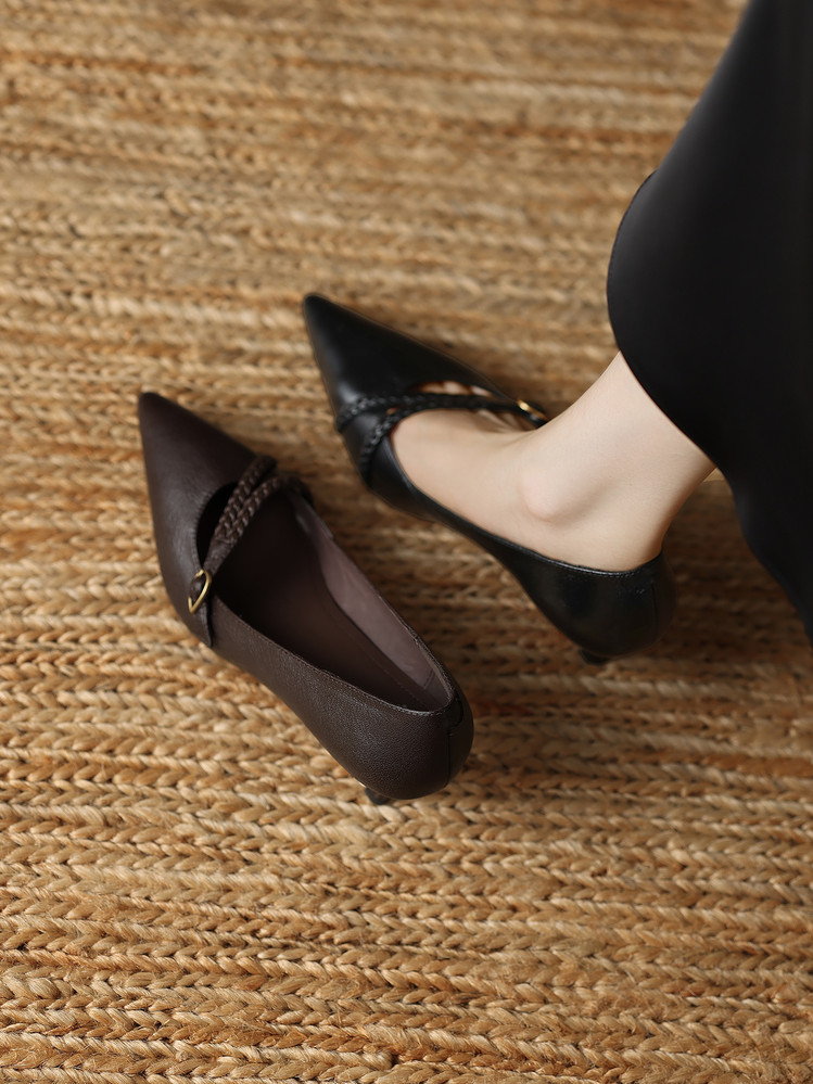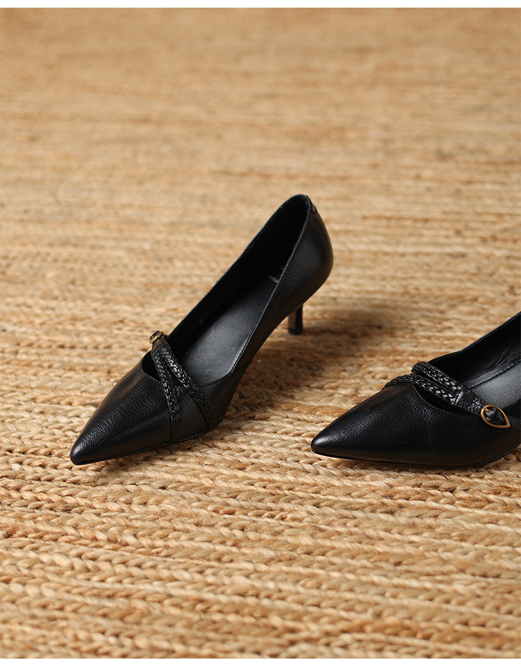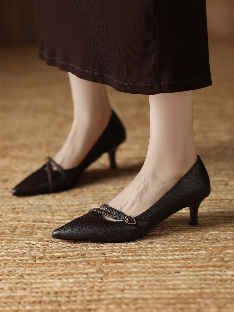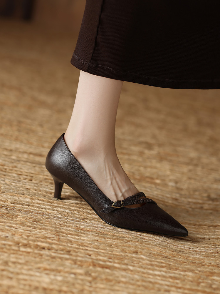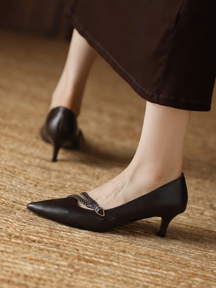 【货号】Jz-1923【帮面材质】头层羊皮【内里】头层猪皮【鞋垫】头层羊皮【鞋底】牛筋底【跟高】5厘米【颜色】黑色 棕色【尺码】34-39