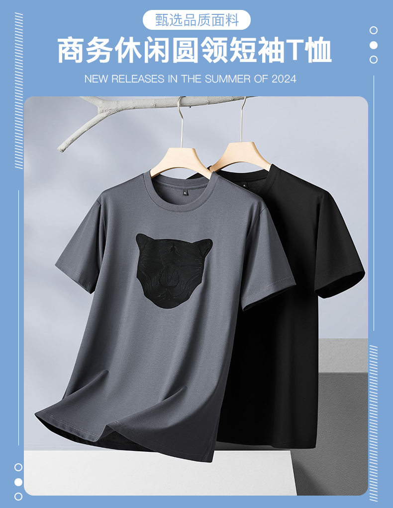 【丝光棉】【新款DPF】大依优型大码短袖T恤圆领加肥加大男装大号大码上衣男士休闲半袖夏季