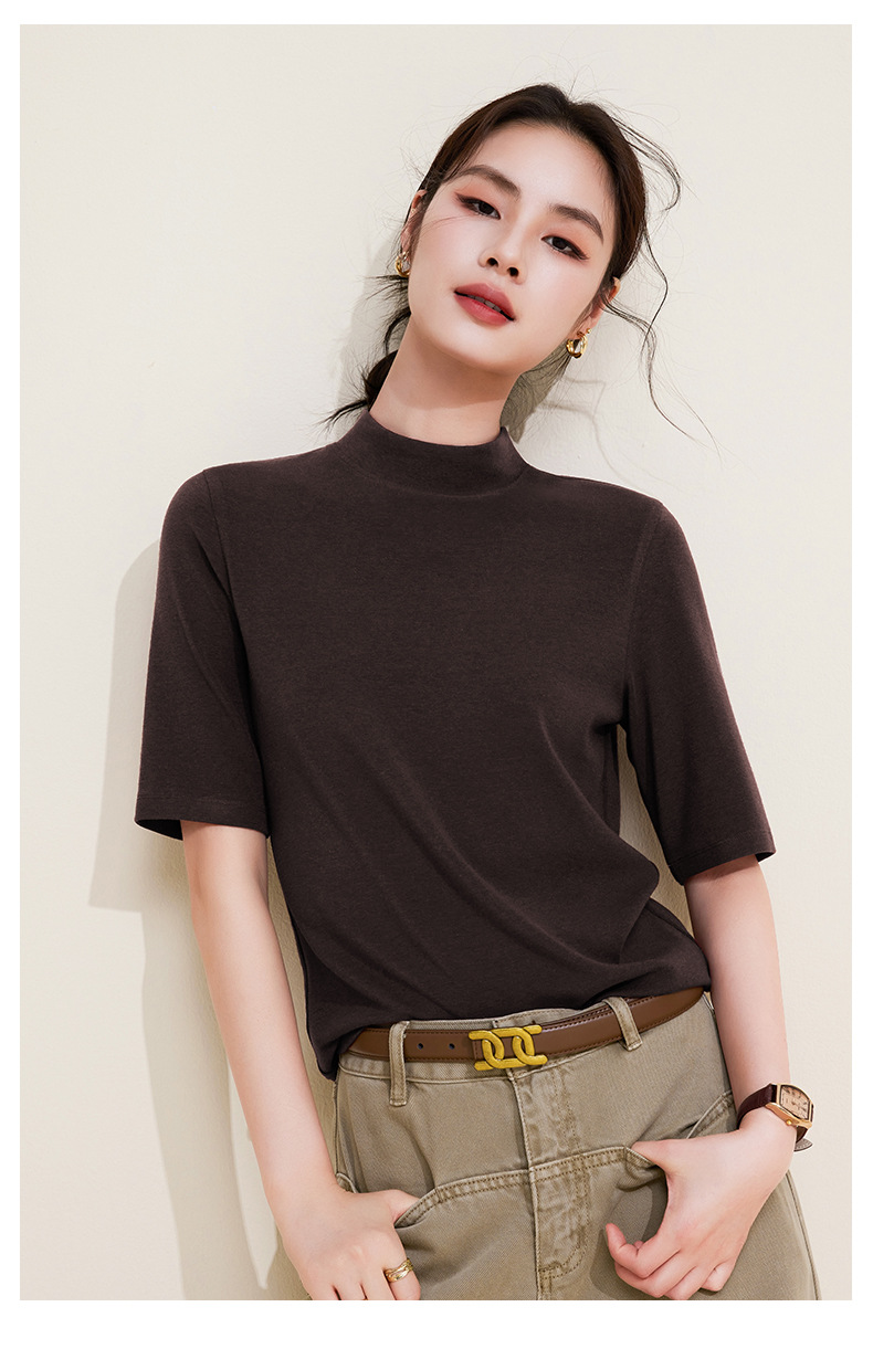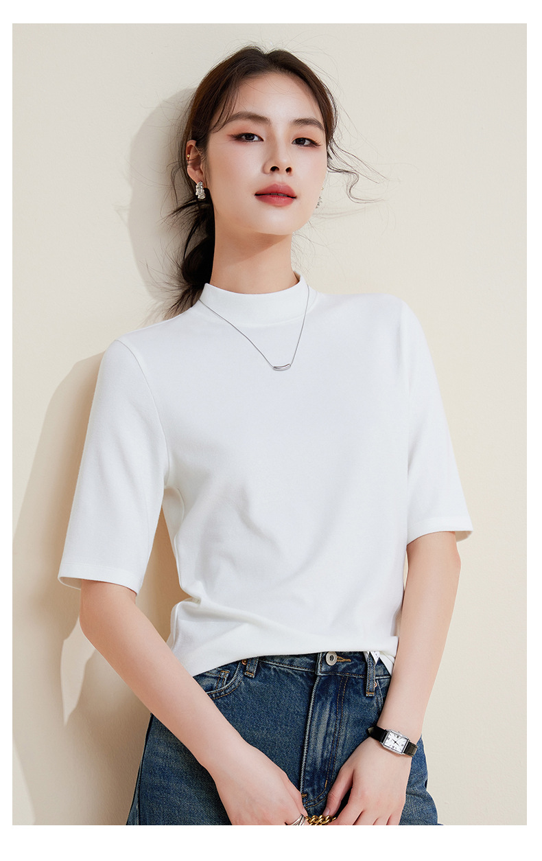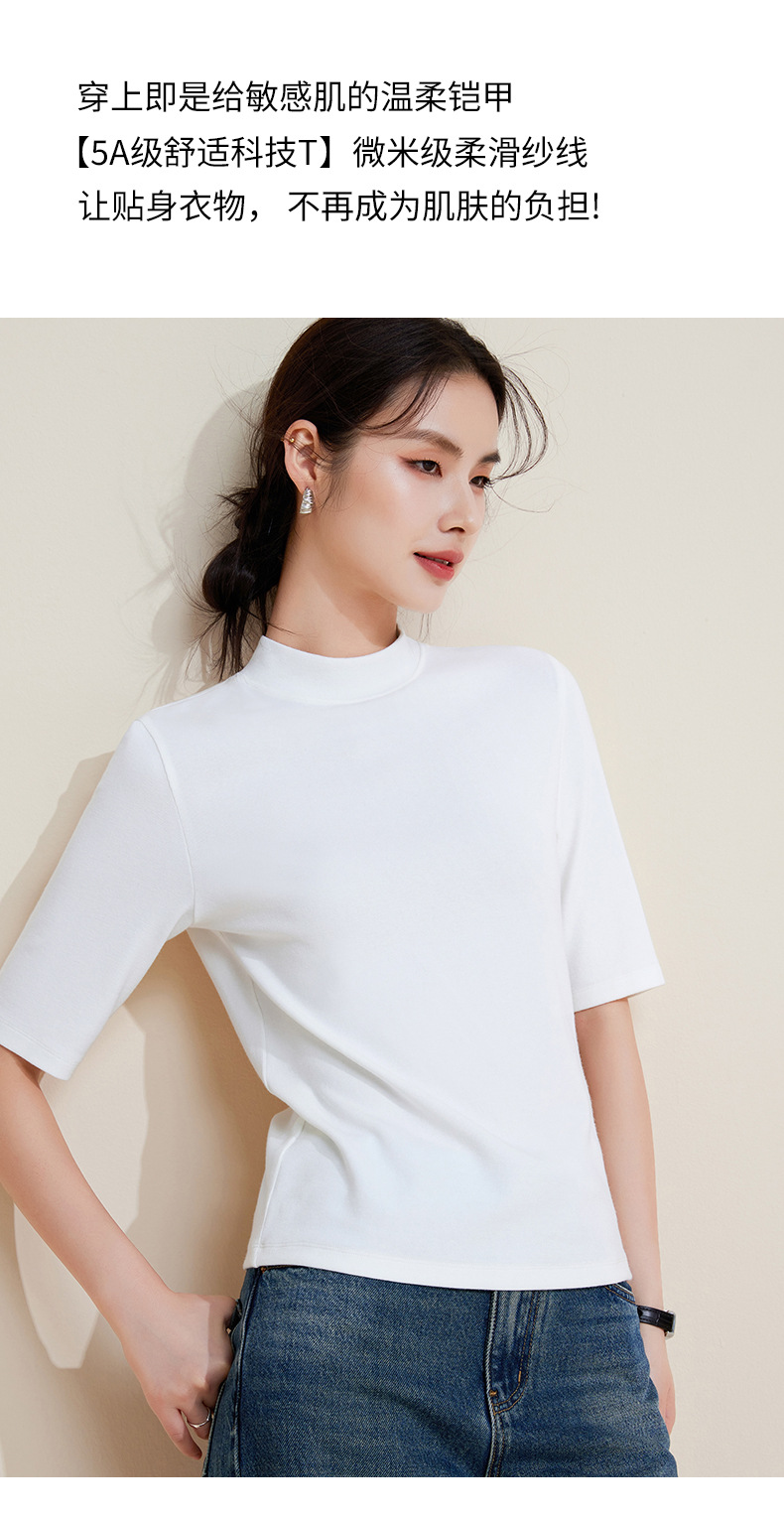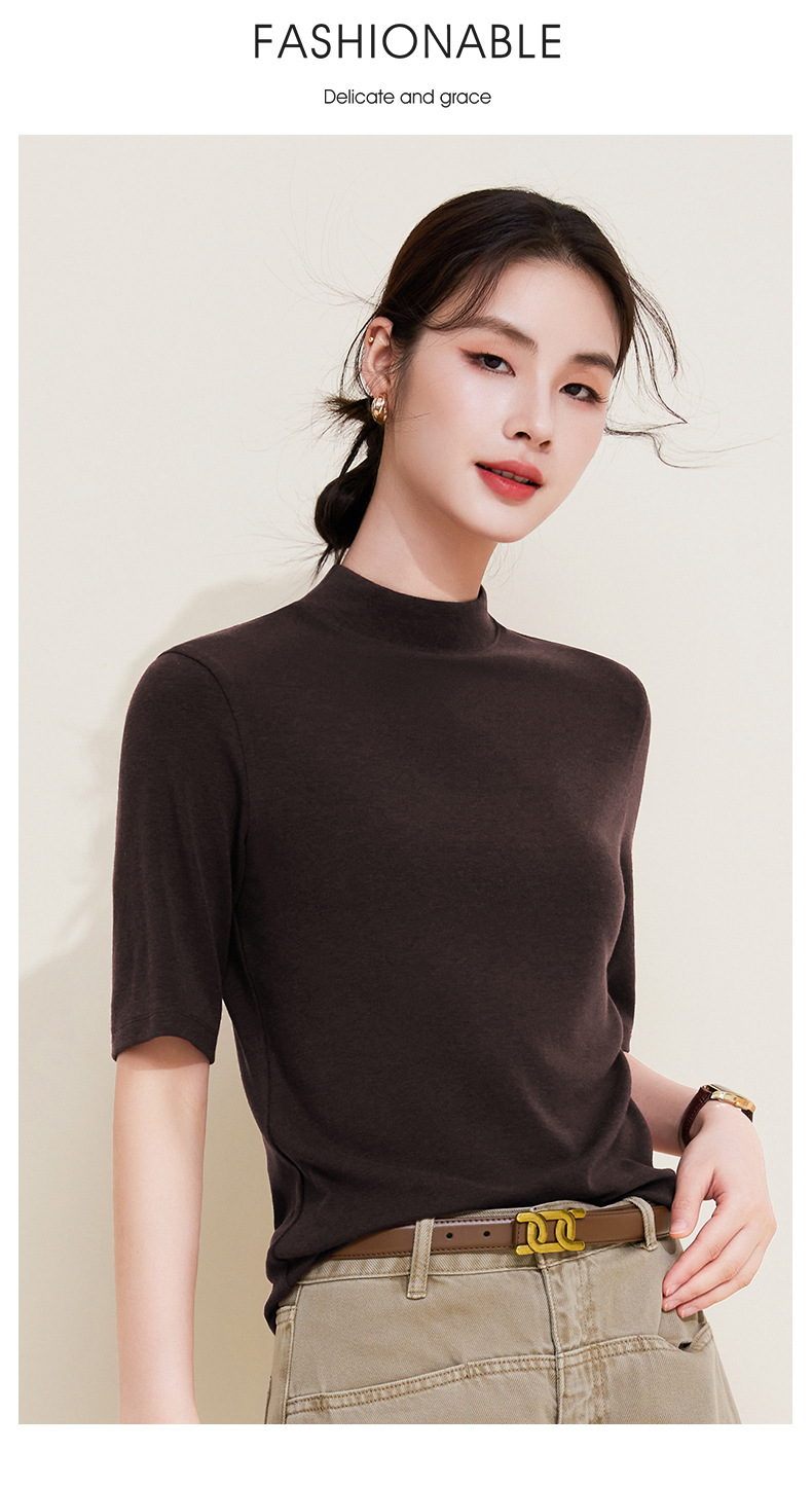 丁摩 半高领五分中袖女内搭春秋新款法式修身打底衫软糯中领上衣女5ZF-M933 商品图4
